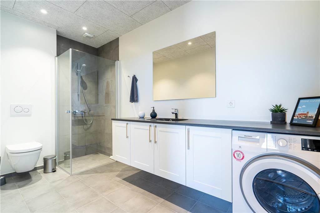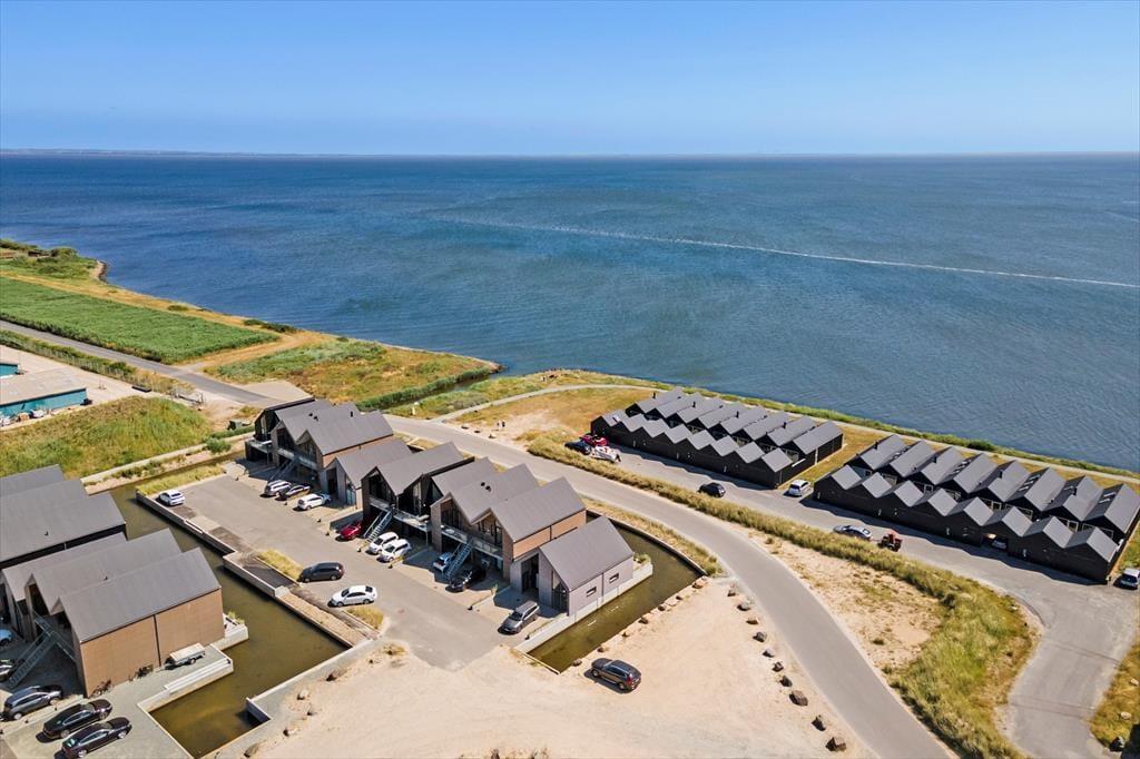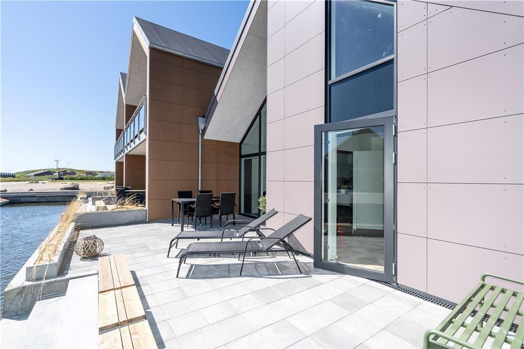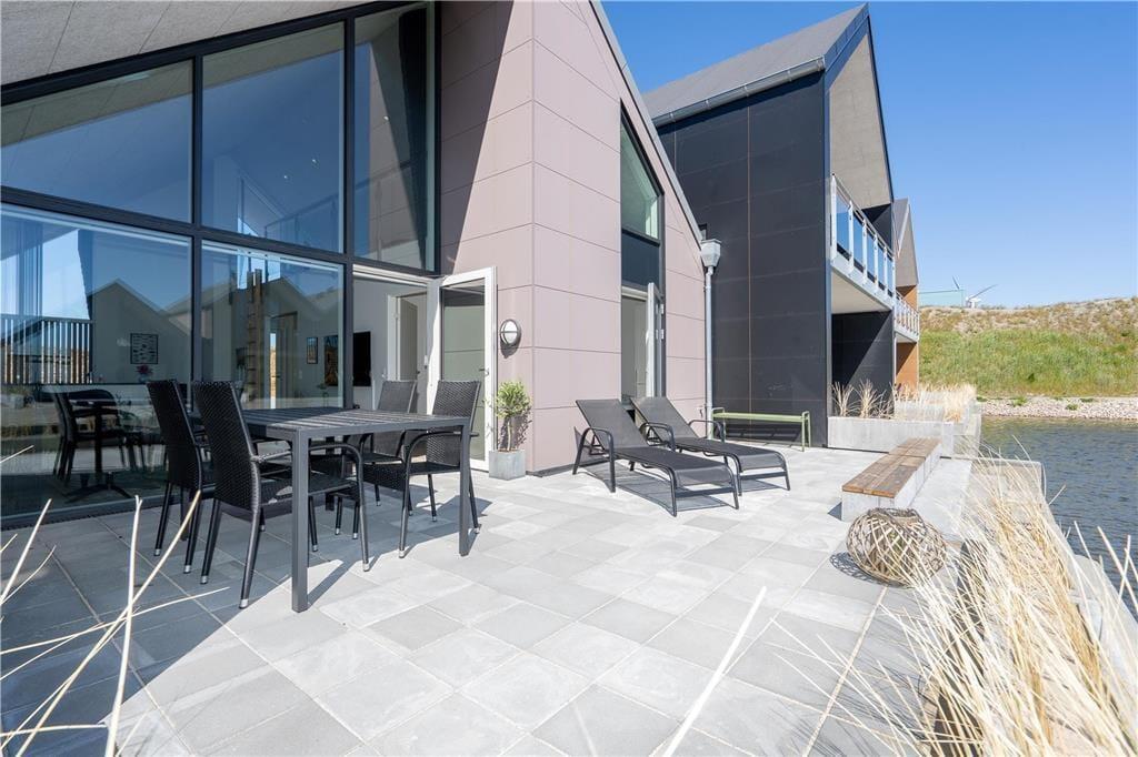 Vom Wohnzimmer aus haben Sie direkten Zugang zu einer teilweise überdachten Terrasse, die schön zum Kanal hin gelegen ist, der Langsand Langs Vand umschließt. Die Terrasse ist mit Gartenmöbeln, Liegestühlen und einem Grill ausgerüstet und überdies nach Süden ausgerichtet, sodass Sie den größten Teil des Tages die Sonne genießen können. Das Auto können Sie an der Nordseite des Hauses an der Eingangstür parken - was praktisch ist, wenn Sie mit viel Feriengepäck ankommen.