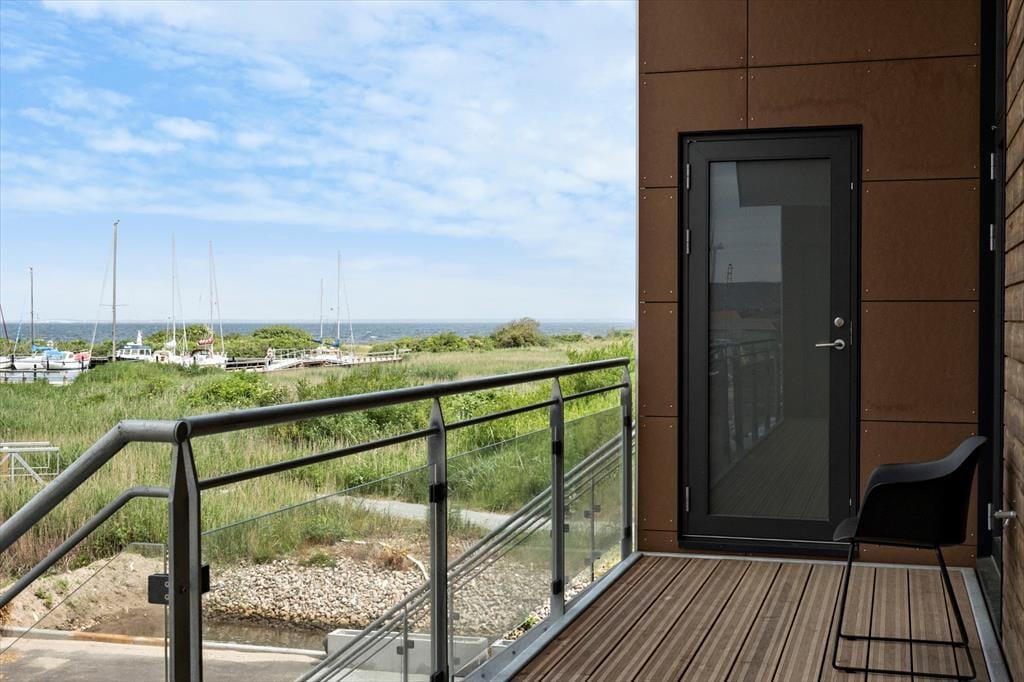 Ein großer, überdachter Balkon verläuft vor der Südseite der Wohnung. Auf diesem stehen Liegestühle, Loungemöbel, ein Gartentisch und ein Grill für Sie bereit - kurzum alles, was Sie für herrliche Sommertage benötigen. Von Ihrem Balkon blicken Sie auf das Kanalsystem, das das Feriengebiet Langsand Langs Vand umgibt. Die Aussicht auf den Kanal und die nähere Umgebung ist auch auf dem zweiten Balkon reizvoll, insbesondere am Abend, wenn der Sonnenuntergang den Himmel in hellrote und orangefarbene Töne taucht. Am Fuße der Außentreppe steht Ihnen ein Parkplatz zur Verfügung.
