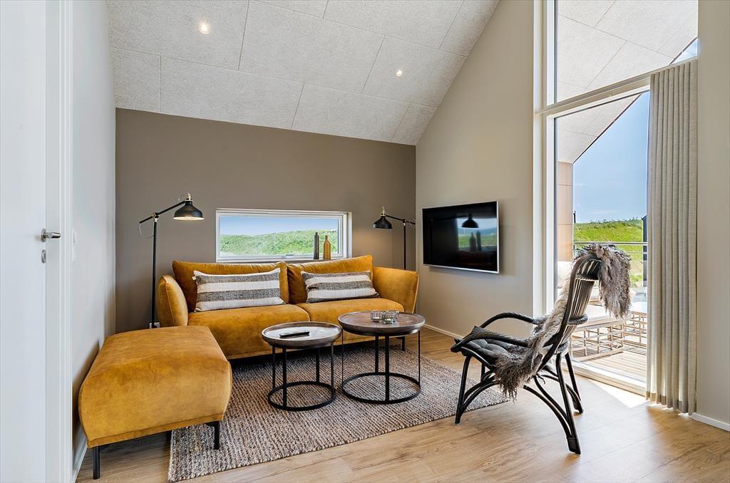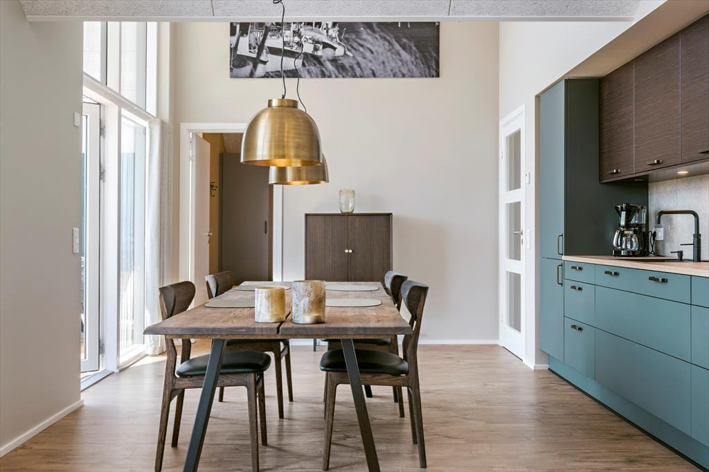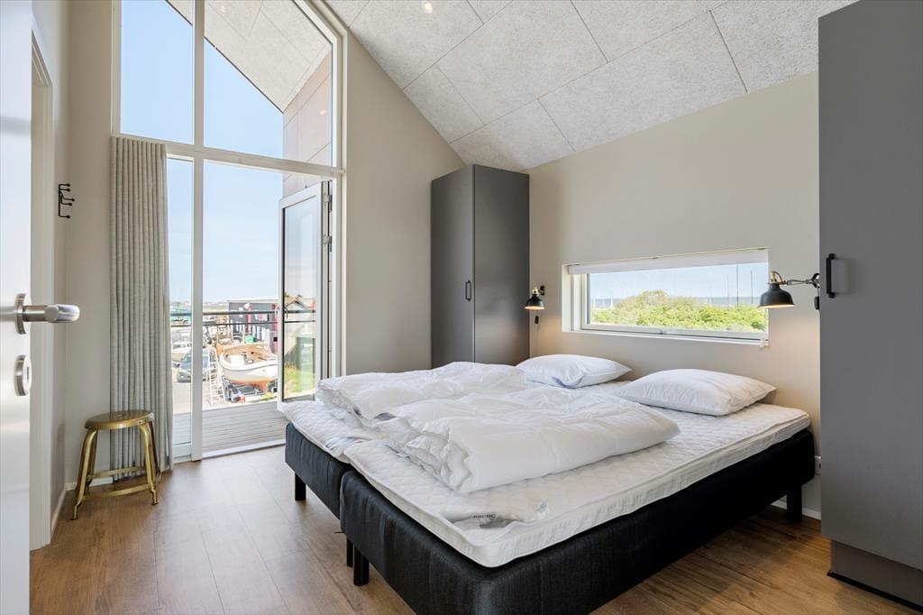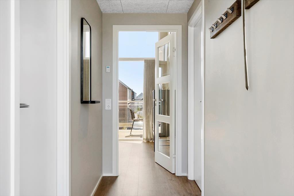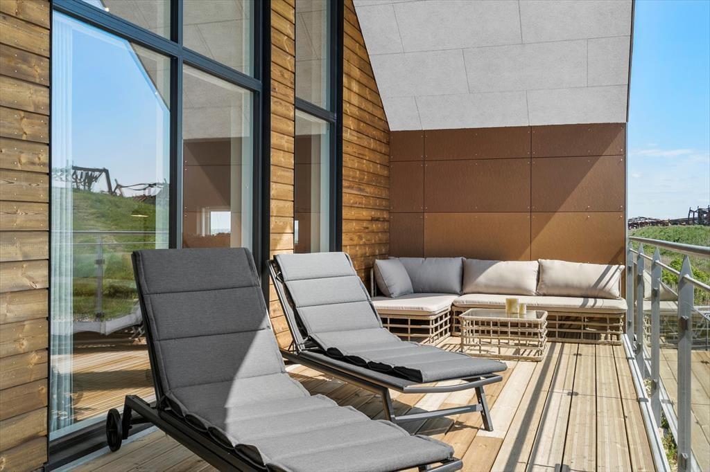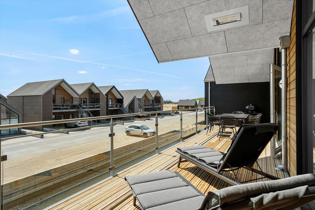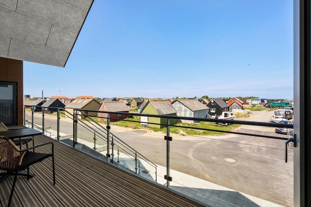 Vom Wohnraum treten Sie direkt hinaus auf einen großen, überdachten Balkon. Aufgrund der Ausrichtung gen Süden liegt der Balkon meist schön in der Sonne und ist durch das Haus gut vor dem Westwind geschützt. Mit anderen Worten handelt es sich bei diesem Balkon um eine wahre Oase, in der Sie sich in vollen Zügen entspannen und erholen können. Das Highlight ist der reizvolle Blick über den Kanal, der Langsand Langs Vand umgibt. Auf der anderen Seite der Wohnung erwartet Sie ein zweiter Balkon, der mit seinem schönen Blick auf Hvide Sandes farbenfrohe Fischerhütten verzaubert. Allabendlich können Sie auf diesem Balkon das kreisende Licht des Leuchtturms Lyngvig Fyr in der Ferne beobachten.