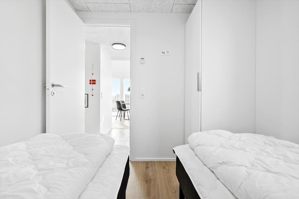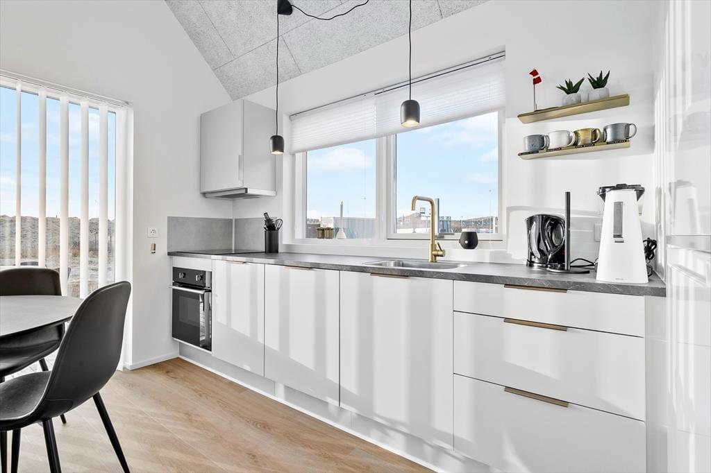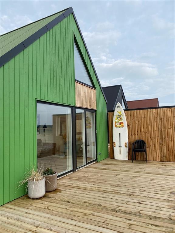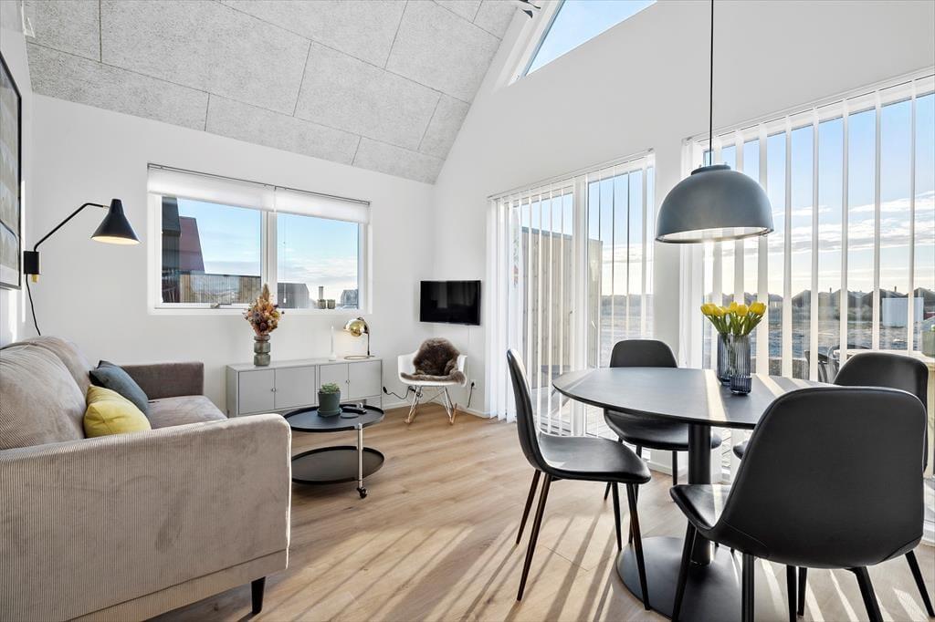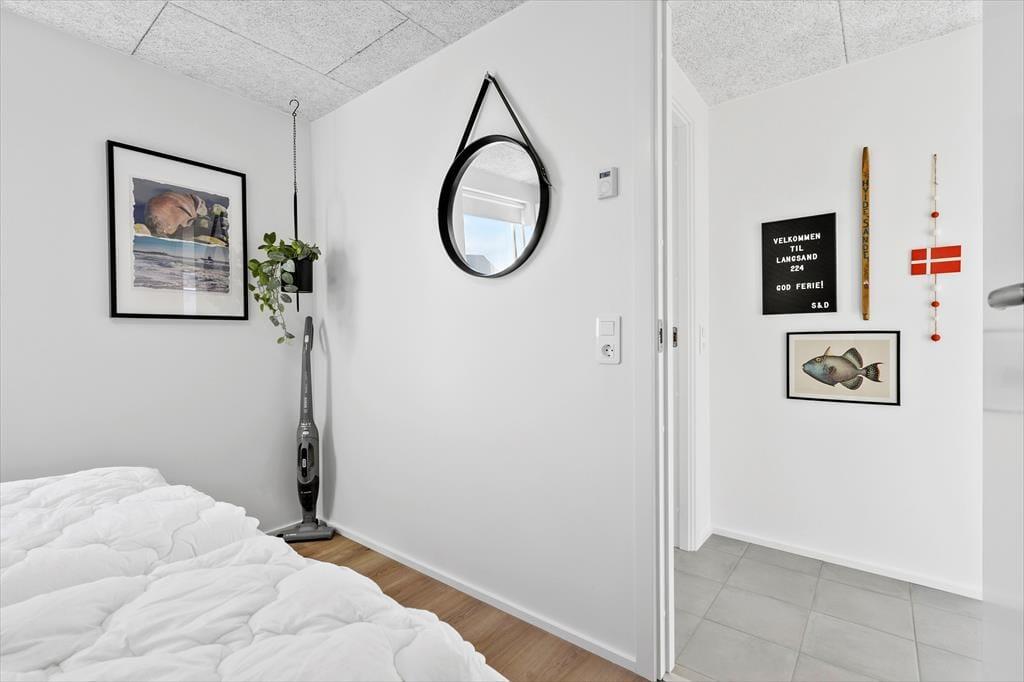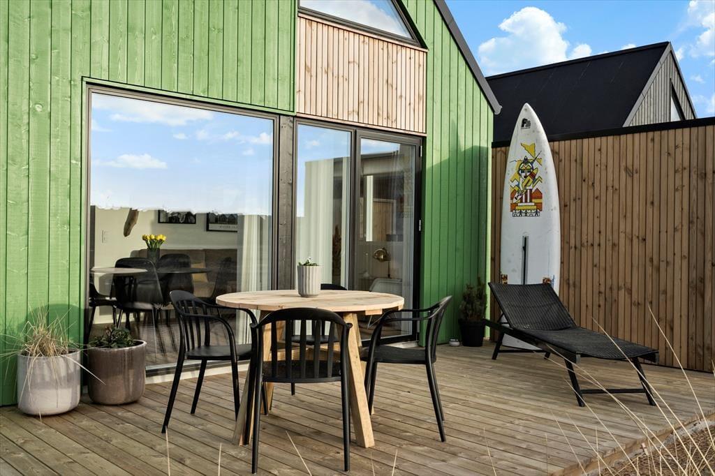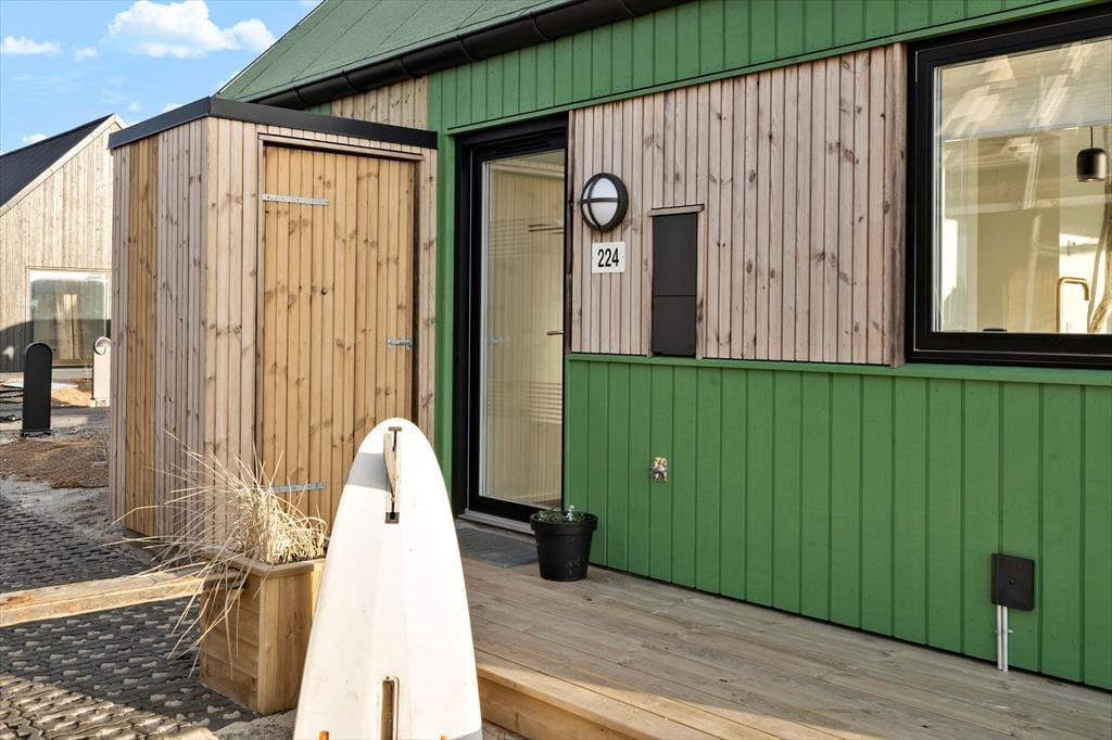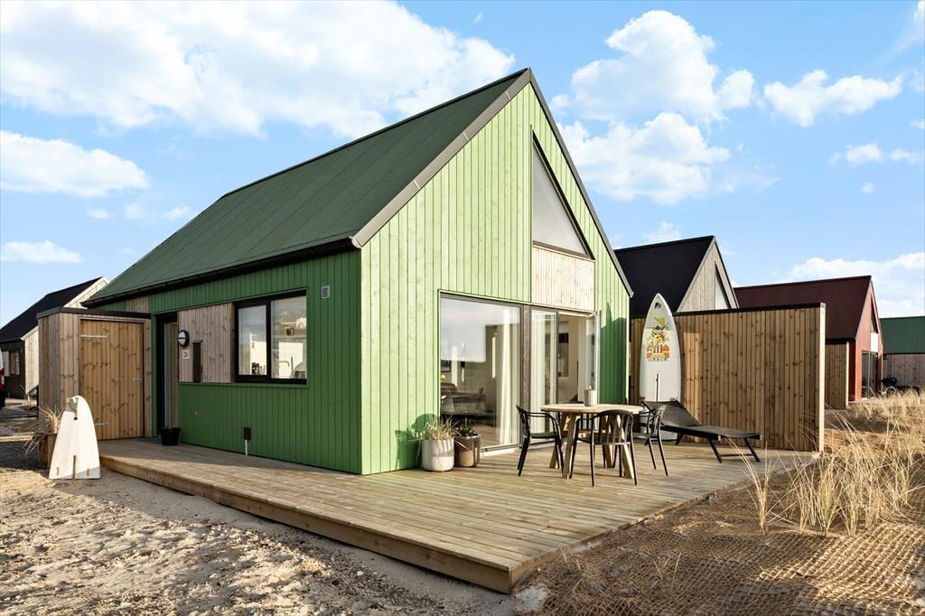 Das 50 m² große Ferienhaus, das erst im Jahr 2022 gebaut wurde, befindet sich im Gebiet Langsand Langs Sand, bei dem es sich um eine reizende Ansammlung von Ferienhäusern mit farbenfrohen Holzfassaden handelt. Dieses Exemplar hebt sich mit seiner grünen Farbe deutlich vom maritimen Straßenbild ab. Das Hausinnere präsentiert sich mit seinen weißen Wänden, den Akustikdecken und den großen Fensterpartien hell und einladend. Der Wohnraum lädt mit seiner komfortablen Möblierung, dem Fernseher und der gut ausgestatteten Küche zu entspannten Stunden ein. Während der kühleren Jahreszeiten sorgt eine Fußbodenheizung im gesamten Objekt für angenehme Temperaturen. Das Badezimmer und die beiden Schlafräume sind von hoher Qualität. Bis zu vier Personen verbringen hier richtig schöne Urlaubstage.