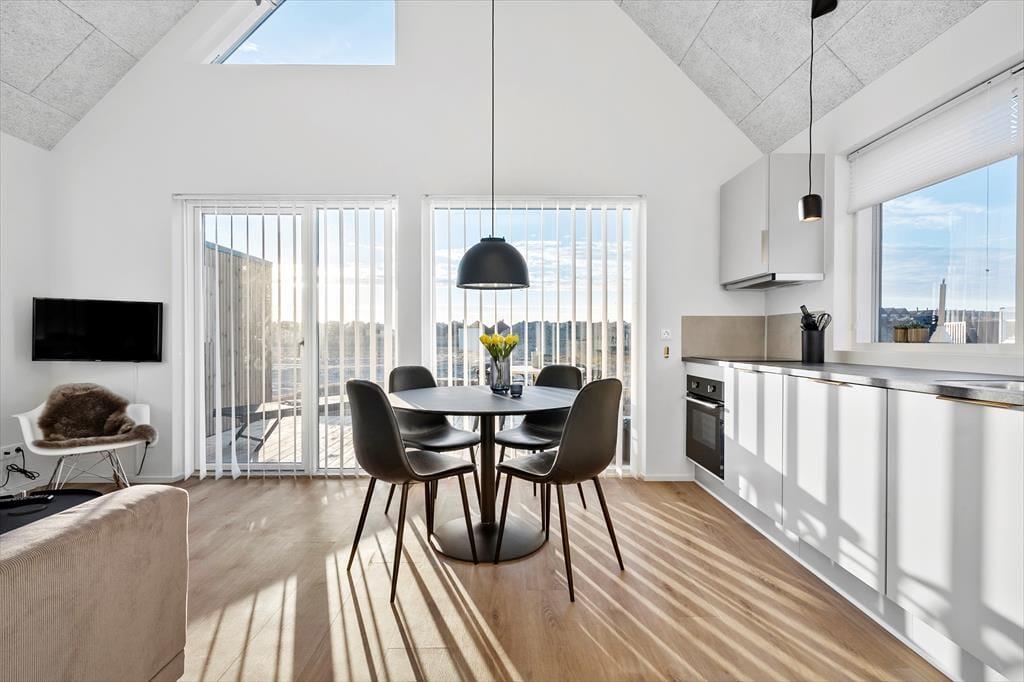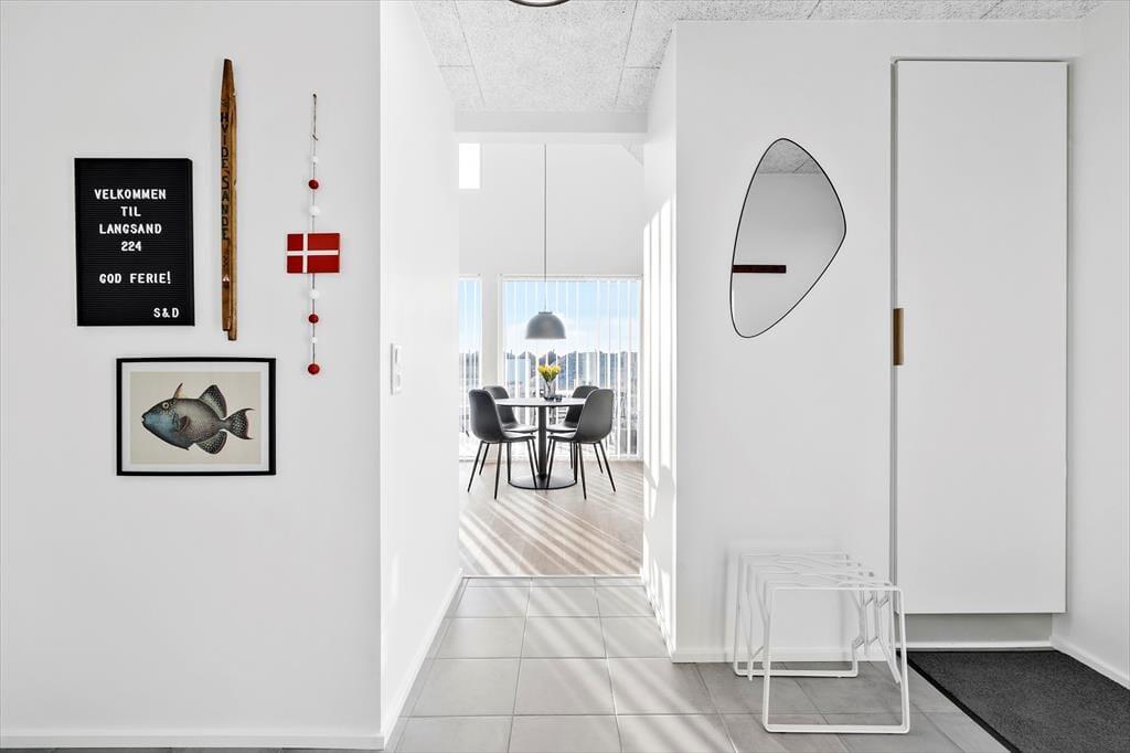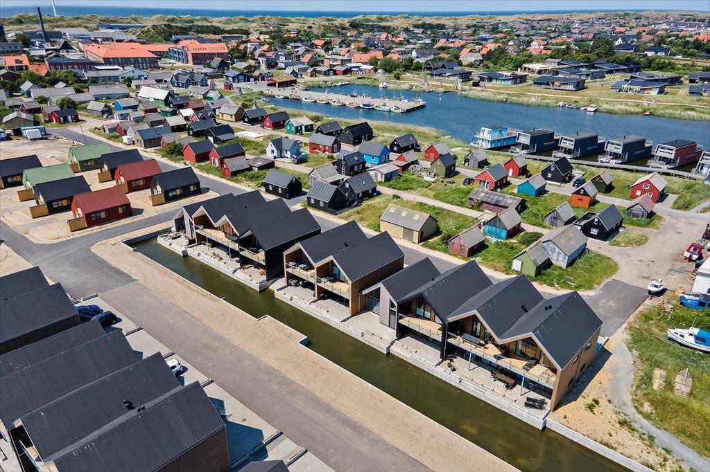 Die Lage des Hauses in Hvide Sande ist perfekt. Sie wohnen zentral und dennoch angenehm zurückgezogen von der Hauptstraße. Bereits nach 150 Metern erreichen Sie den Ringkøbing Fjord und den alten Tyskerhavnen, in dem Sie bis heute mitverfolgen können, wie die Fjordfischer Ihren täglichen Fang anlanden. Innerhalb weniger Minuten spazieren Sie zur großen Schleuse, die die Hafenstadt in zwei Bereiche unterteilt. An der Schleuse dürfen sich Angler auf viele Angelplätze freuen. Imposant ist von hier aus die Aussicht über Meer, Fjord und Hafen. Einkaufsmöglichkeiten, interessante Geschäfte und die Lokalitäten Hvide Sandes sind ebenfalls zu Fuß erreichbar. Da Hvide Sande auf einer schmalen Nehrung zwischen Nordsee und Fjord liegt, erfreuen sich Badeurlauber, Surfer und andere Wassersportler bester Bedingungen.