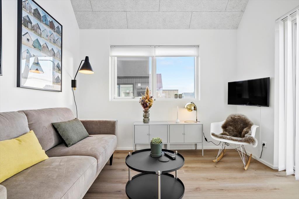 Dieses ansprechende Ferienhaus bietet eine helle, gute Einrichtung, eine sonnenverwöhnte Terrasse und eine zentrale Platzierung in Hvide Sande - nah an Tyskerhavnen und Ringkøbing Fjord. Insgesamt bildet dieses Mietobjekt eine hervorragende Basis für fantastische Urlaubstage an der Westküste.