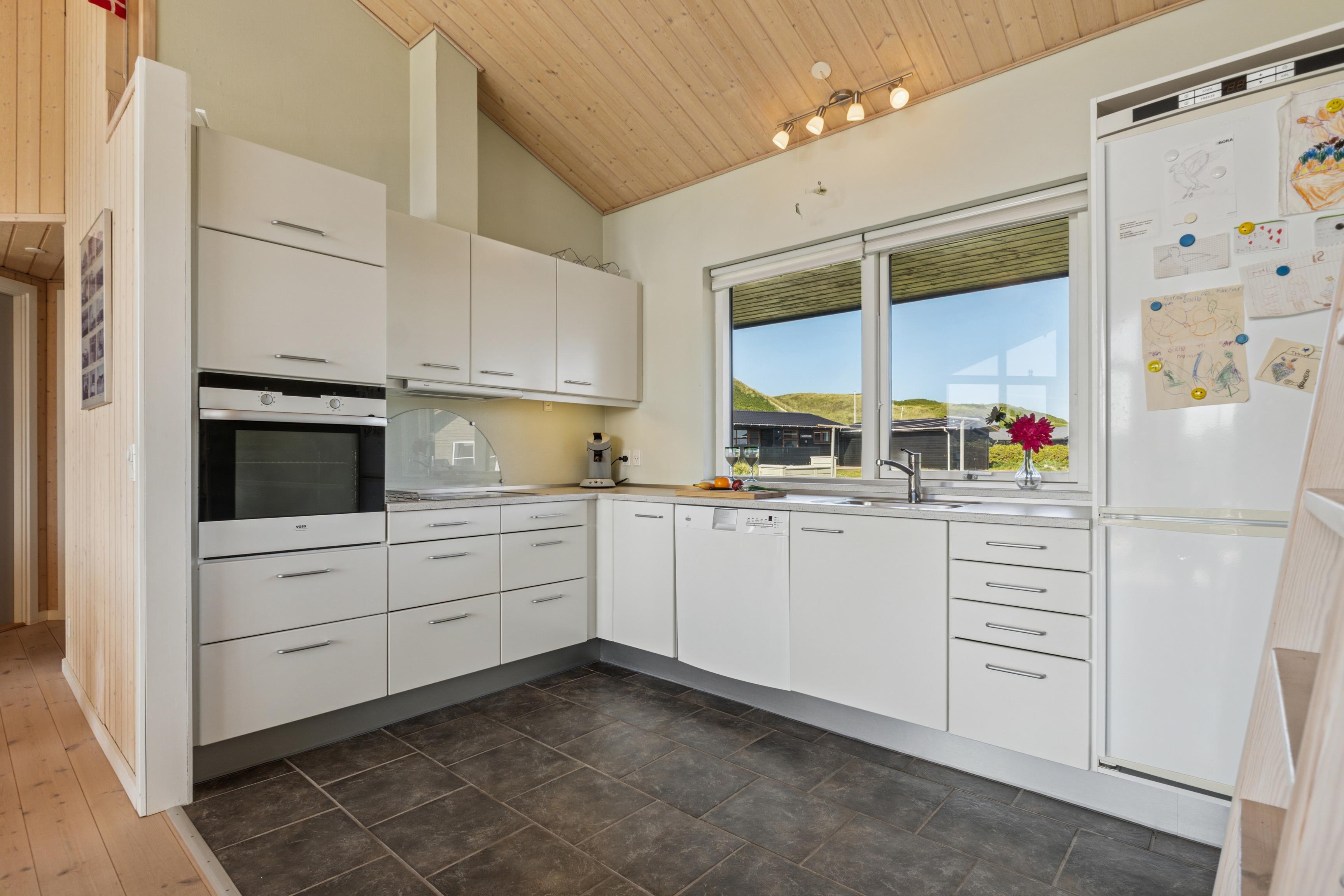 Das Ferienhaus bietet Platz für bis zu sechs Personen, verteilt auf drei Schlafzimmer mit Doppelbetten. Es gibt zwei elegante Badezimmer, beide mit Fußbodenheizung, sowie ein helles Wohnzimmer mit Holzboden, Wärmepumpe, Elektroheizung und einem gemütlichen Kaminofen. Für Familien mit Kindern steht zudem ein Hochstuhl zur Verfügung. Die Küche ist vollständig ausgestattet und bietet alles, was Sie für die Zubereitung von Mahlzeiten während Ihres Aufenthalts benötigen. Zur Ausstattung gehören ein Kühl-/Gefrierschrank, Backofen, Kochplatten, Mikrowelle, Kaffeemaschine, Wasserkocher und Geschirrspüler. Eine Waschmaschine ist ebenfalls vorhanden, sodass auch die praktischen Dinge des Alltags während des Urlaubs problemlos erledigt werden können.