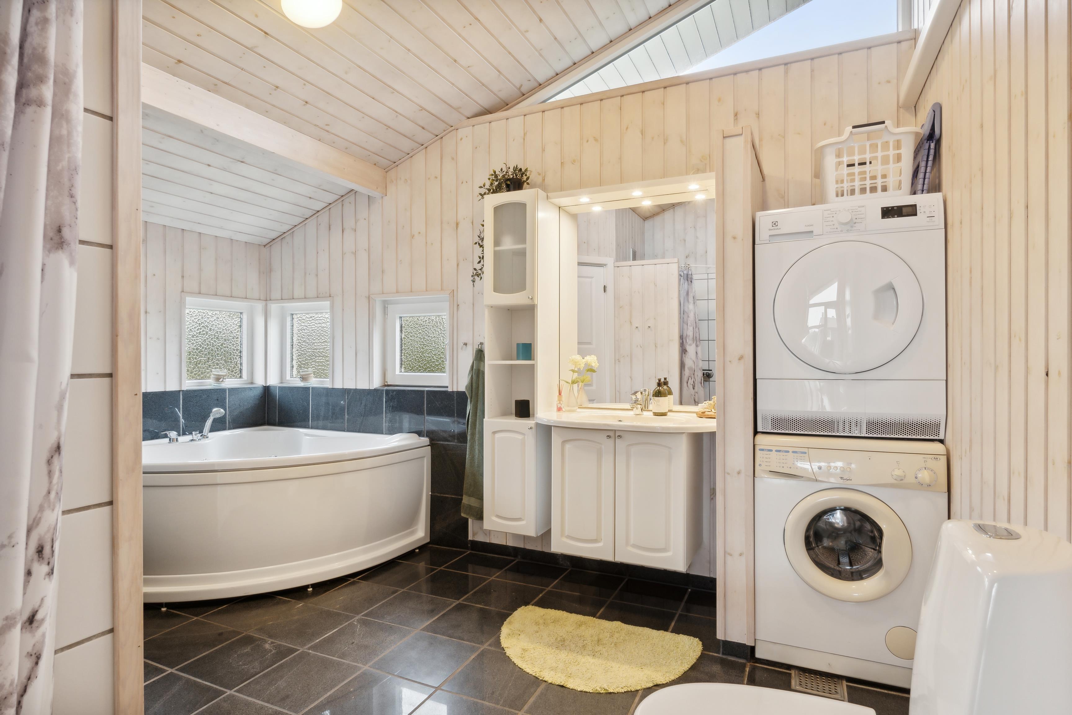 Das Badezimmer ist zudem mit einer Waschmaschine und einem Trockner ausgestattet, und sowohl das Badezimmer als auch das Gäste-WC verfügen über Fußbodenheizung, damit Sie kalte Morgen vermeiden. Die drei Schlafzimmer sind mit Teppichen und komfortablen Betten eingerichtet, sodass Sie erfrischt und ausgeruht in den nächsten Urlaubstag starten können.