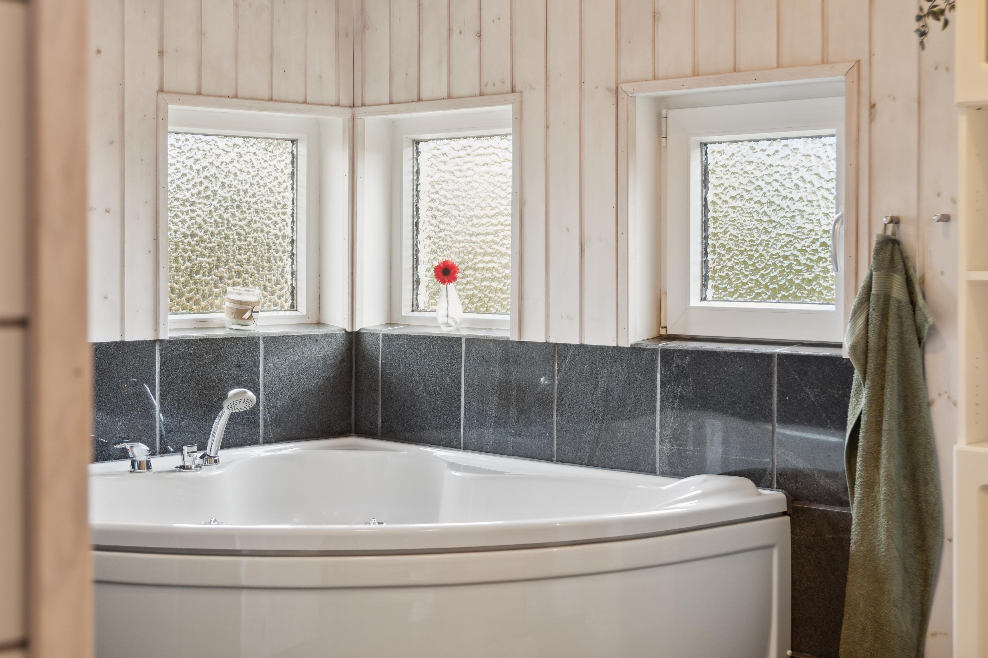 Ein gepflegtes und einladendes Ferienhaus, ideal für einen entspannten Familienurlaub. Das Haus bietet ein gemütliches Wohnzimmer sowie ein Badezimmer mit Whirlpool und Sauna. Die abgeschirmte Terrasse schafft den perfekten Rahmen für Sonnenbäder und gemütliche Grillabende. Die Lage in einer ruhigen Ferienhausgegend macht es zu einer ausgezeichneten Wahl.