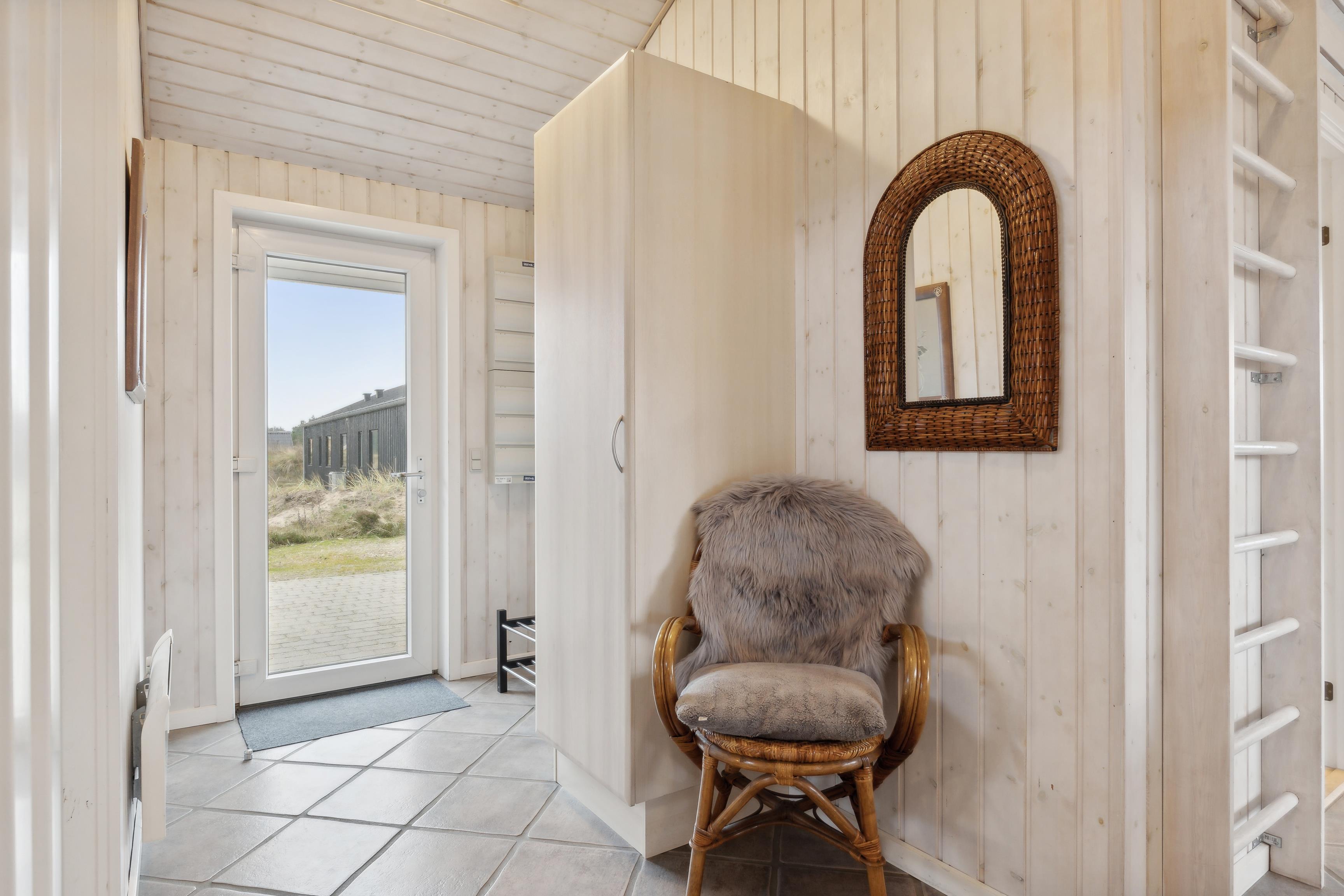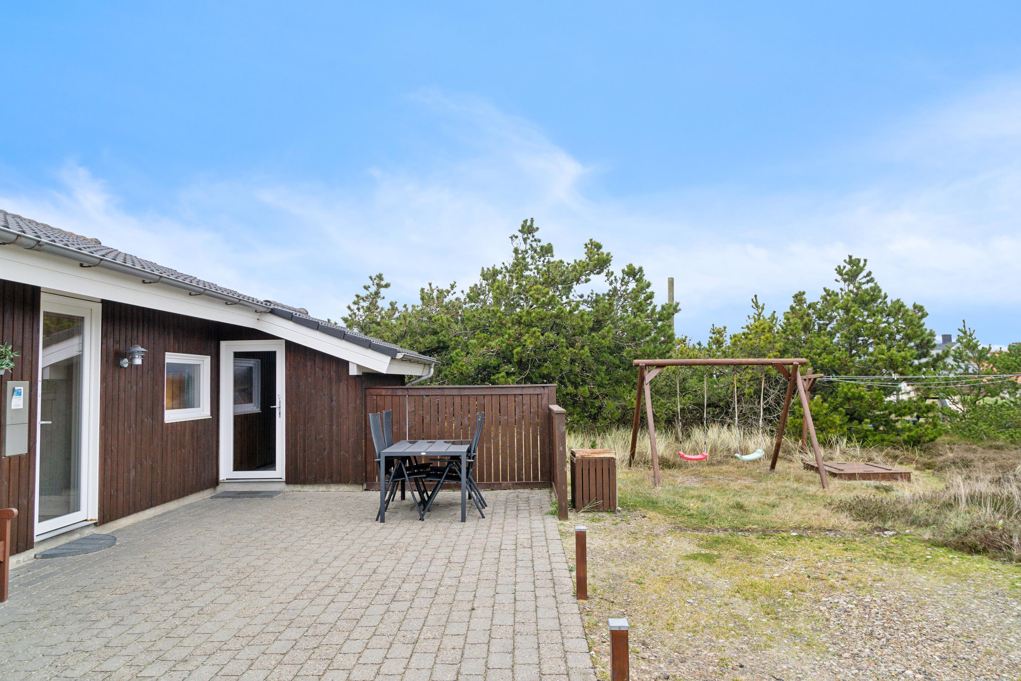 Von der Terrasse aus können Sie das schöne Naturgrundstück betrachten, das außerdem mit Schaukeln und einem Sandkasten für die Kinder ausgestattet ist. Wenn Sie die Umgebung erkunden möchten, sind es nur kurze Wege zu den Dünen und dem Strand, wo Sie herrliche Spaziergänge und Entspannung am Wasser genießen können. Auch der lokale Kaufmann ist nicht weit entfernt und bietet täglich frisches Brot.