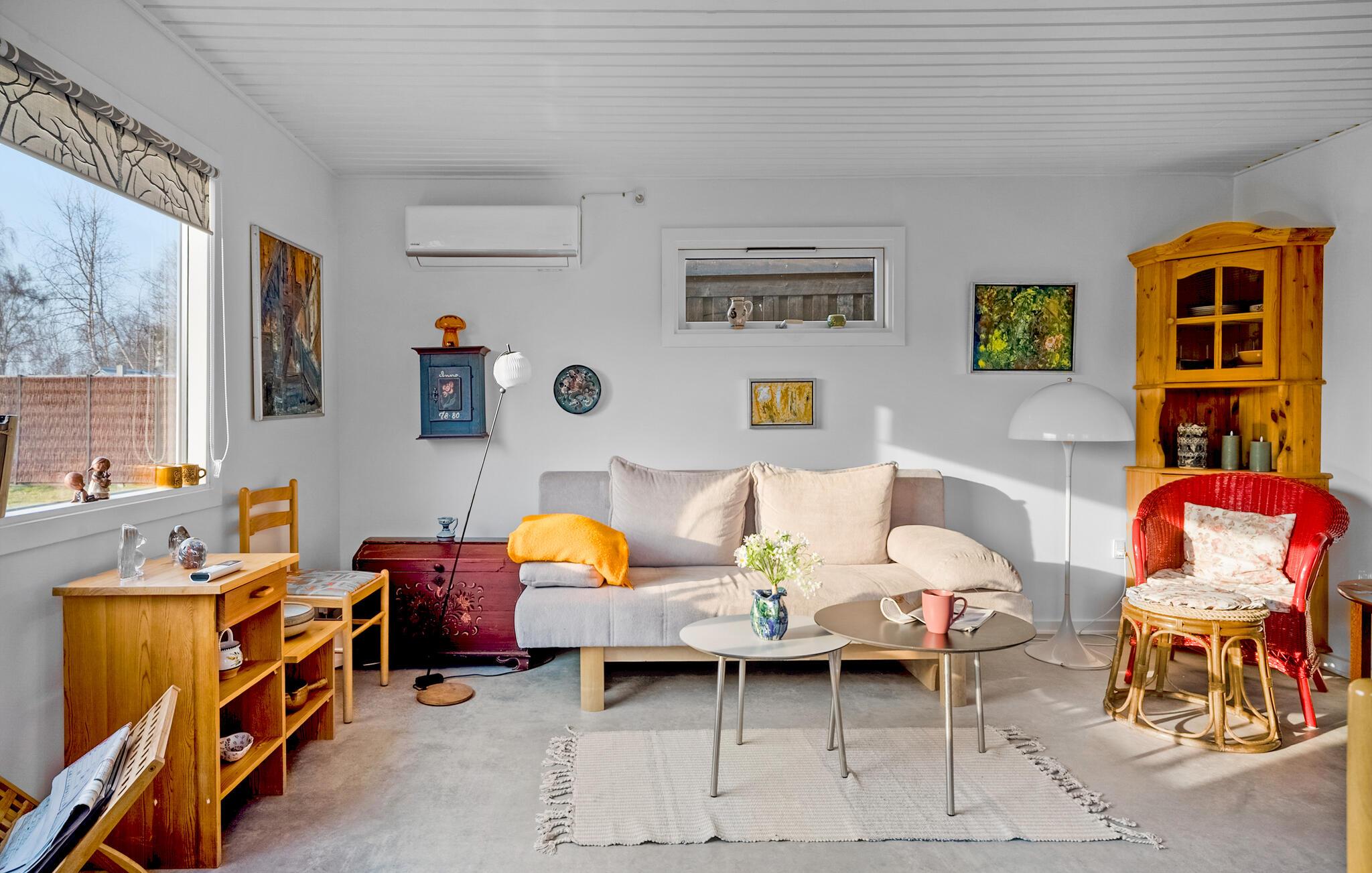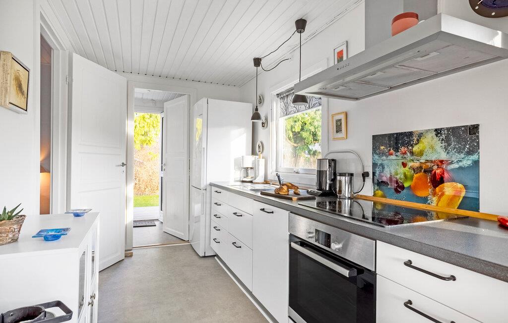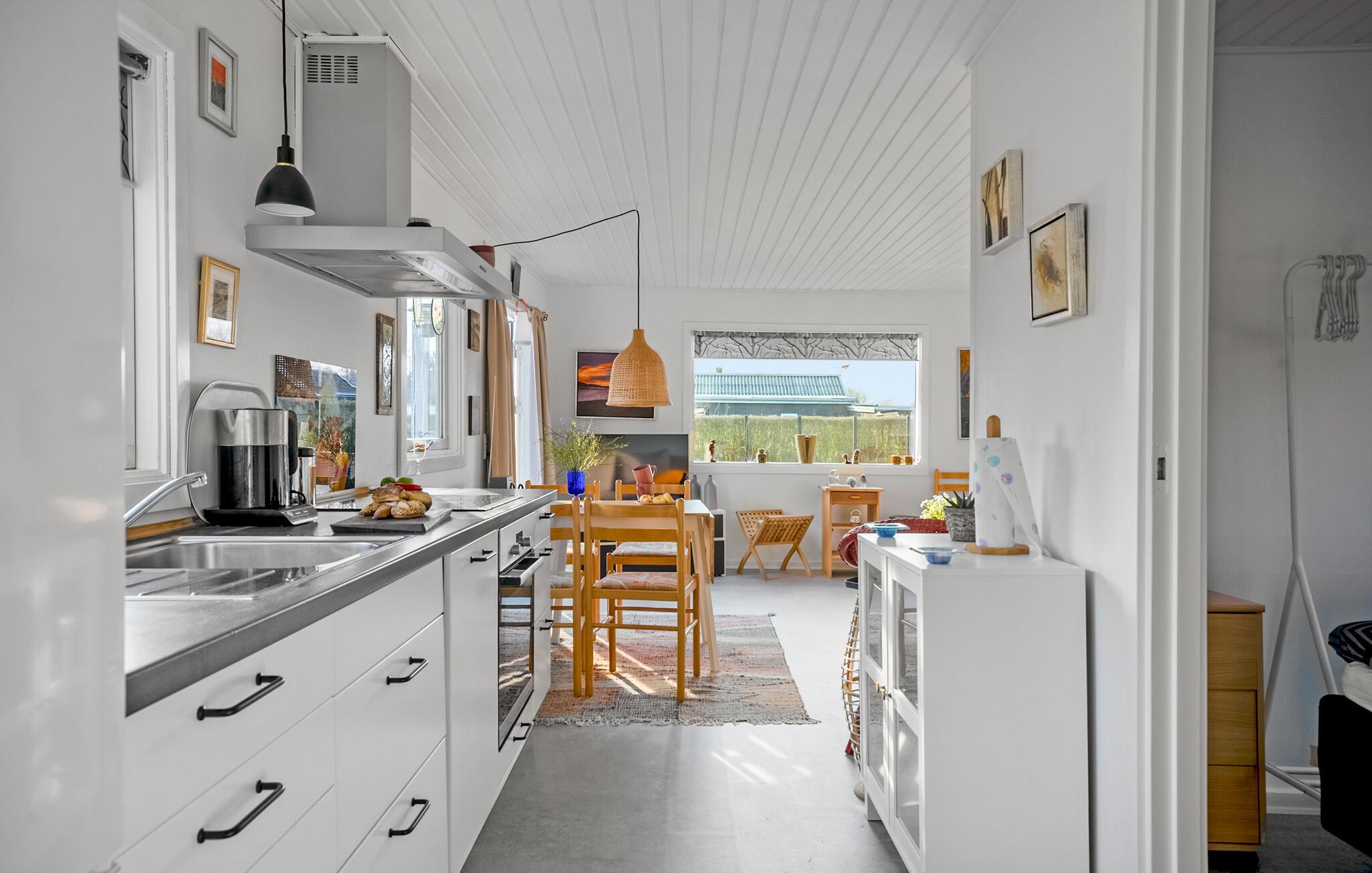 Erholen Sie sich am Roskilde Fjord und genießen Sie Ihre Auszeit in Ihrem Ferienhaus, das Gemütlichkeit mit nordischer Leichtigkeit verbindet. Das helle Wohnzimmer empfängt Sie mit einem freundlichen und geschmackvollen Ambiente. Nutzen Sie den offenen Küchen- und Essbereich, um gemeinsam Mahlzeiten zuzubereiten und danach entspannt am Esstisch oder auf dem Sofa zu verweilen. Machen Sie es sich mit einem Buch oder einem Brettspiel bequem oder genießen Sie durch die großen Fenster den Blick ins Grüne. Ein separater, behaglicher Raum mit einem kuscheligen Sofa bietet eine weitere Rückzugsmöglichkeit für entspannte Stunden.