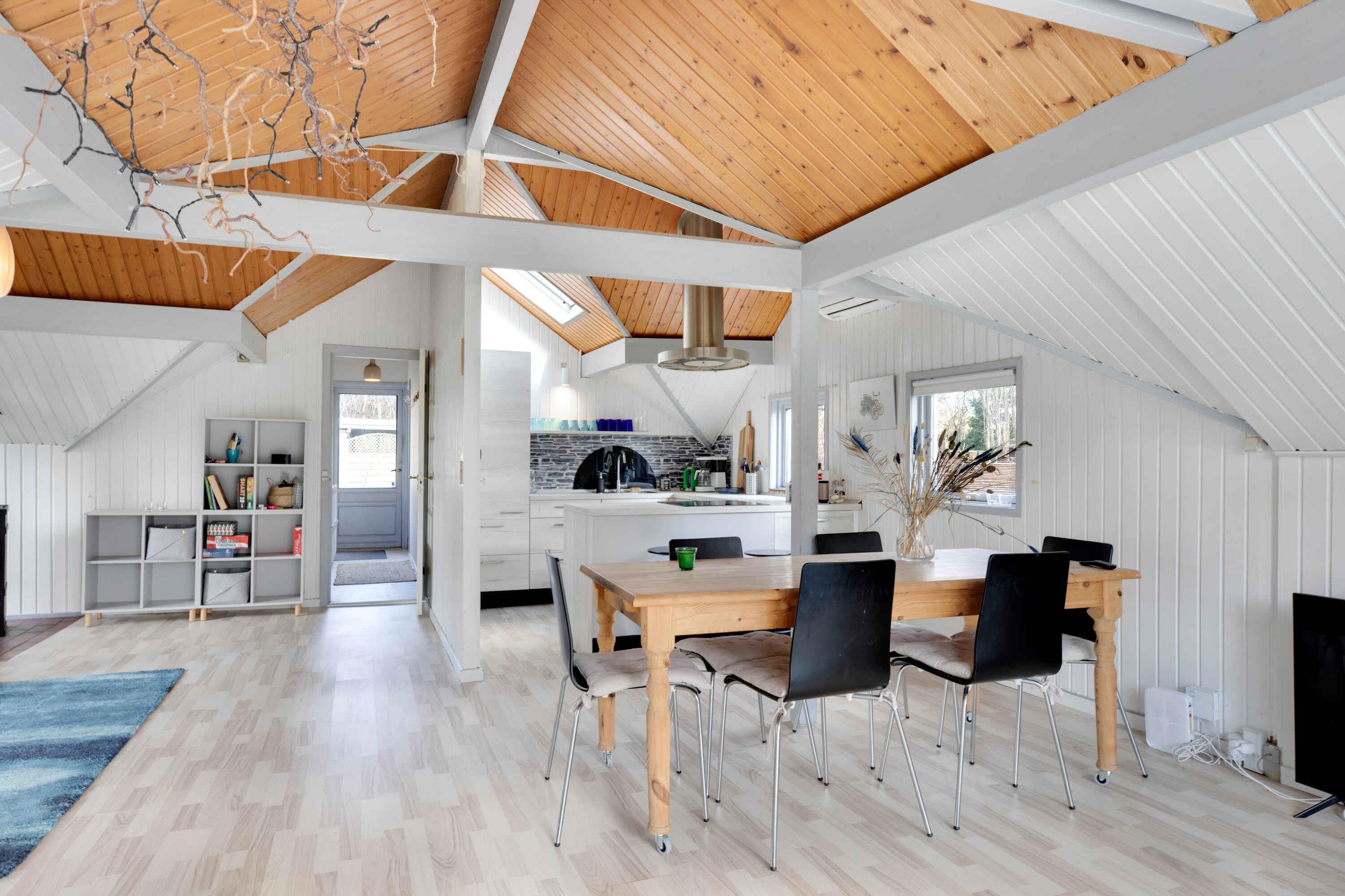 Entspannen Sie mit der ganzen Familie in diesem friedlichen Juwel eines Ferienhauses. Hier gibt es die perfekte Gelegenheit, neue Energie zu tanken und einfach nur zu entspannen. Genießen Sie Ihr Frühstück auf der Terrasse oder im Pavillon mit tollem Blick auf den See. Auf der anderen Terrasse besteht die Möglichkeit zu grillen und die Abendsonne zu genießen, sodass die Abende draußen lang und gemütlich werden können und die Kinder im großen Garten mit Trampolin frei spielen können. Es gibt ein Glasfasernetz, einen Holzofen und nur 600 m zum Wasser, das sehr kinderfreundlich ist, mit seichtem Wasser weit draußen. Das Ferienhaus: Sehr gemütliches Holzferienhaus mit echter dänischer Ferienhausatmosphäre. Neue Küche, mit Essecke für 6 Personen. Von der Küche gibt es eine offene Verbindung zum Wohnzimmer, das Zugang zu beiden Terrassen hat. Das Wohnzimmer hat ein großes Fenster, das auf die große Terrasse blickt und den großen Garten und den See überblickt. Im Wohnzimmer befindet sich ein Holzofen, der bei kaltem Wetter schnell das ganze Haus aufheizen kann. Sie können das Haus ganzjährig nutzen. Es gibt ein kleines Zimmer mit Etagenbett zum Ausziehen und Schlafplatz für 4 Personen und ein Nebengebäude mit einem Doppelbett. Insgesamt Platz für 5 Personen. Das Badezimmer hat eine charmante Toilette mit Dusche. Gegenüber dem Sofa befindet sich ein großer Fernseher und ein Glasfasernetz mit 1000/1000 Mbit, (per 1.1.-23.1.), sodass Sie problemlos auf Ihre eigenen Geräte streamen und somit das Haus auch in Verbindung mit der Arbeit nutzen können. Draussen: Der Garten grenzt an drei weitere Grundstücke, die den See in der Mitte teilen. Es gibt sowohl einen Gasgrill als auch einen Holzkohlegrill. Es sind ca. 600 m bis zu einem schönen kinder- und hundefreundlichen Strand, an dem das Wasser weit draußen flach ist. Andere erwähnenswerte Dinge: Der Strom wird beim Ablesen des Zählers abgerechnet und kostet DKK 5,- pro KWh. Mehrverbrauch wird nicht verrechnet. Der Holzofen spendet unglaublich angenehme Wärme im gesamten Haus. Jeder Gast darf Holz für einen Korb mitnehmen oder alternativ kann Holz im Brugsen in Kulhuse, dem nächstgelegenen Supermarkt, gekauft werden.