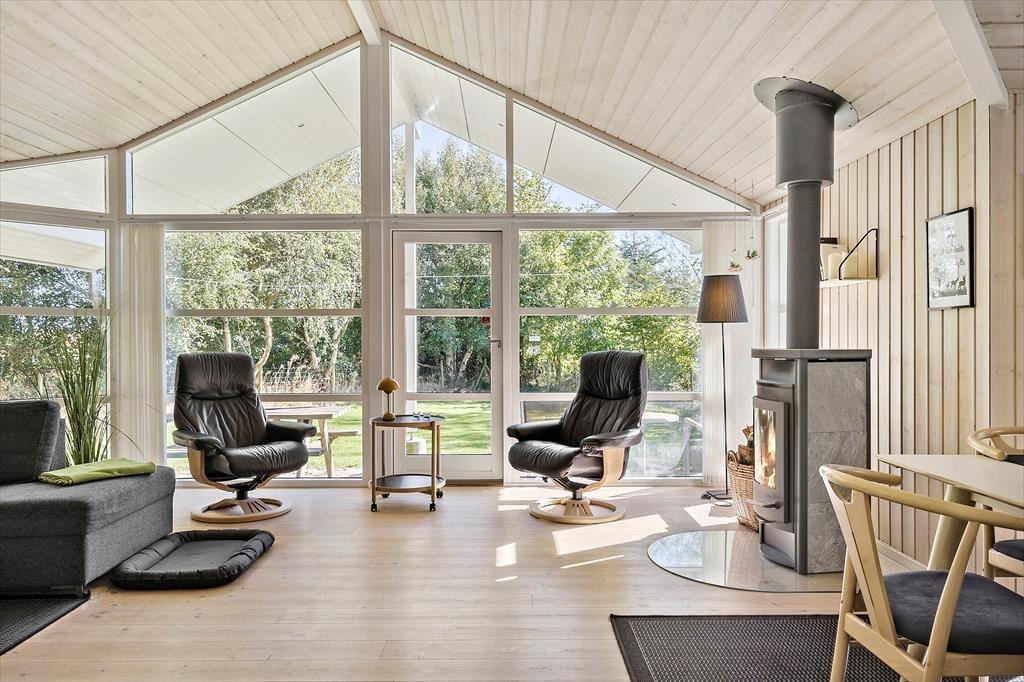 Dank der gut durchdachten Aufteilung des Hauses können sich hier leicht und bequem bis zu sechs Personen für einen schönen gemeinsamen Urlaub versammeln. Ein großer Teil der 106 m² des Hauses ist einem großen Wohnbereich gewidmet, der aus einer gut ausgestatteten Küche und einem gemütlichen Wohnzimmer in offener Verbindung besteht. Der Holzofen und die Wärmepumpe stehen bereit, um an kühlen Abenden für energieeffiziente Wärme zu sorgen. Und wenn Sie sich in der Sofaecke völlig entspannen möchten, können Sie den Tag mit einem guten Film auf dem Flachbildfernseher ausklingen lassen, der mit Satellitenempfang und Chromecast ausgestattet ist. Zur Ausstattung gehören drei Schlafzimmer sowie ein geräumiges Badezimmer mit Dusche, Waschmaschine und Fußbodenheizung.