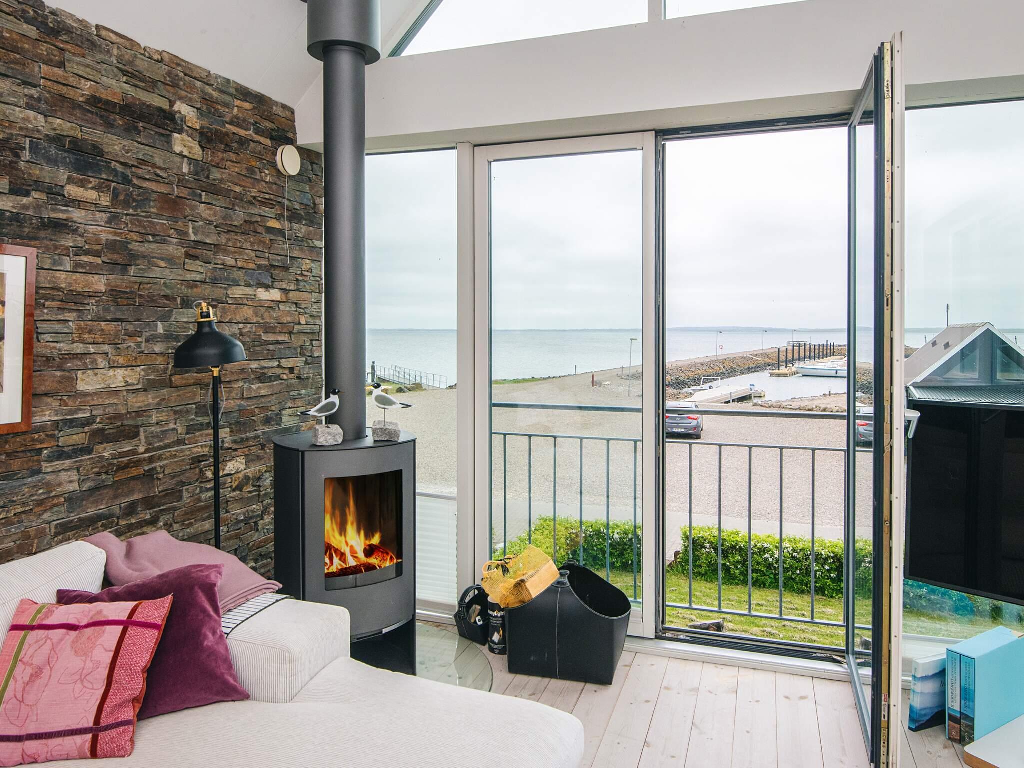 Ferienhaus mit herrlichem Panoramablick auf den Fjord im idyllischen Jegindø. Das Haus liegt direkt am Wasser und bietet von der Wohnküche, dem Wohnzimmer und der großzügigen Dachterrasse mit Loungemöbeln einen Blick auf den Fjord und den Yachthafen.