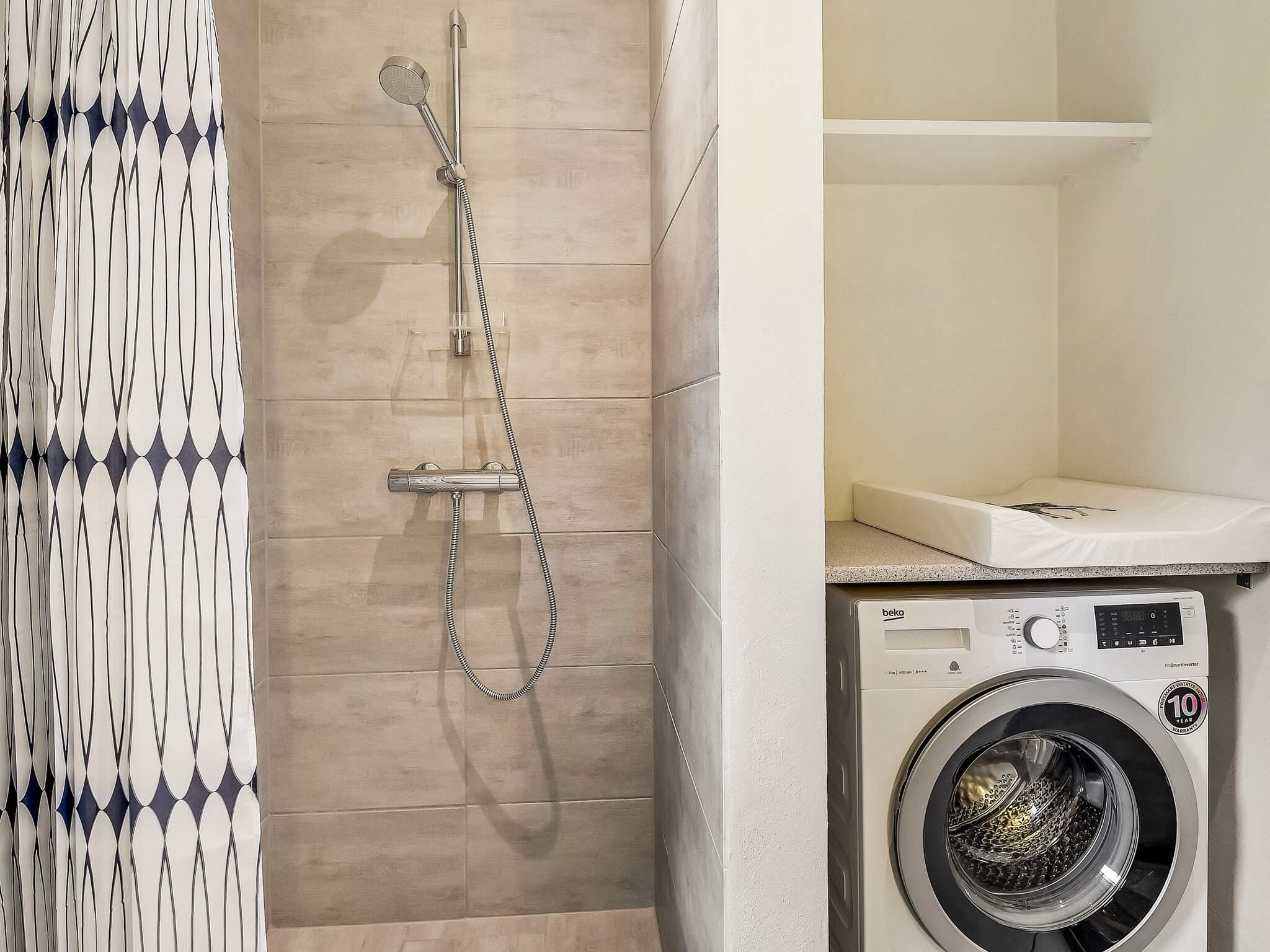 Bad: Waschm., WC, Waschb., Dusche, Fußbodenheiz.