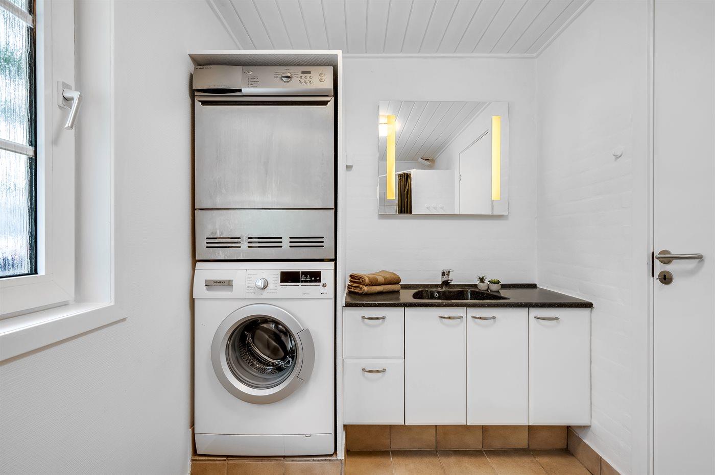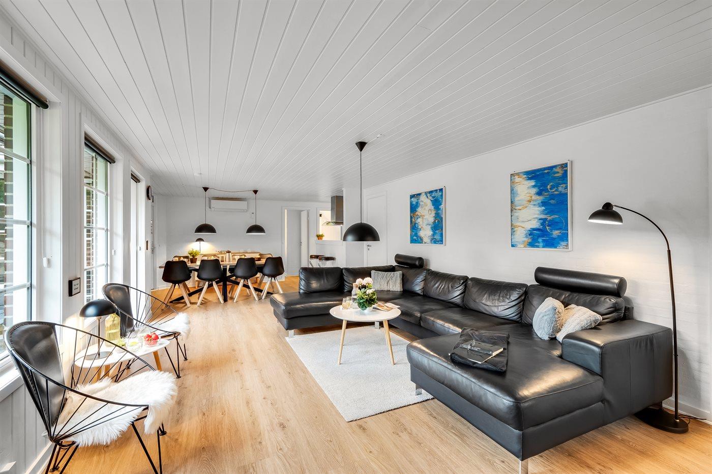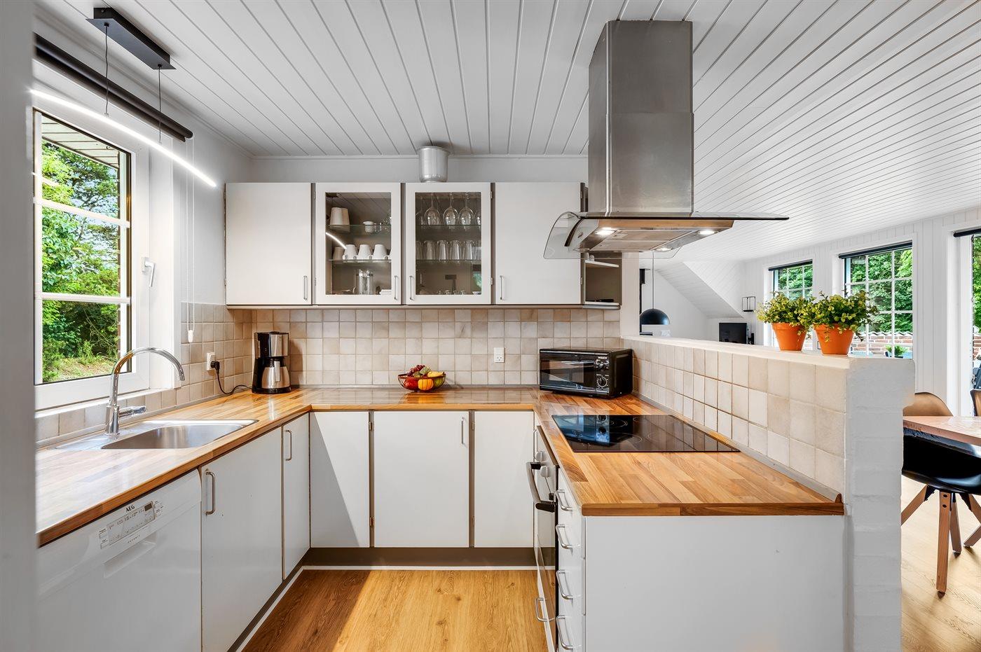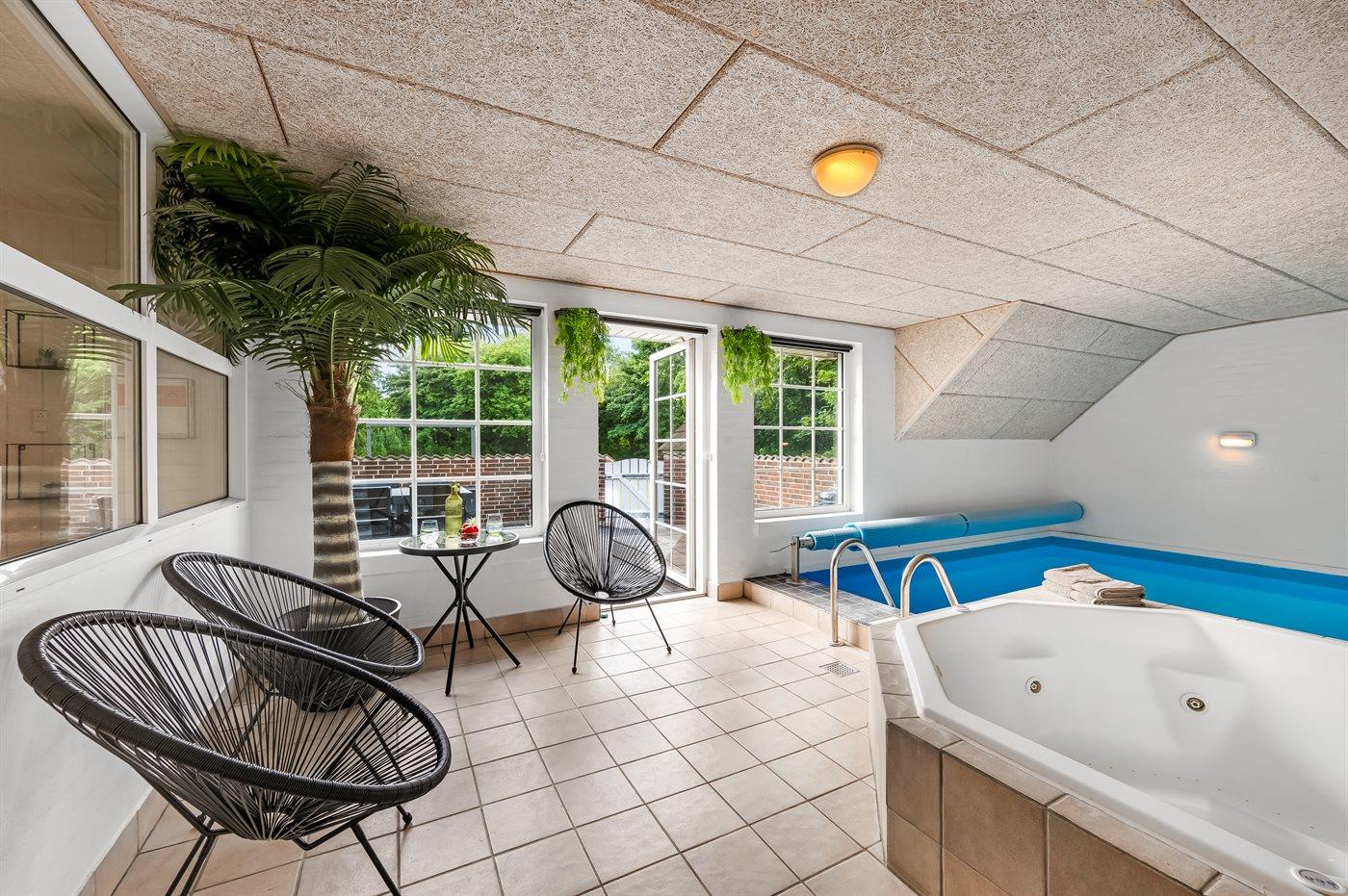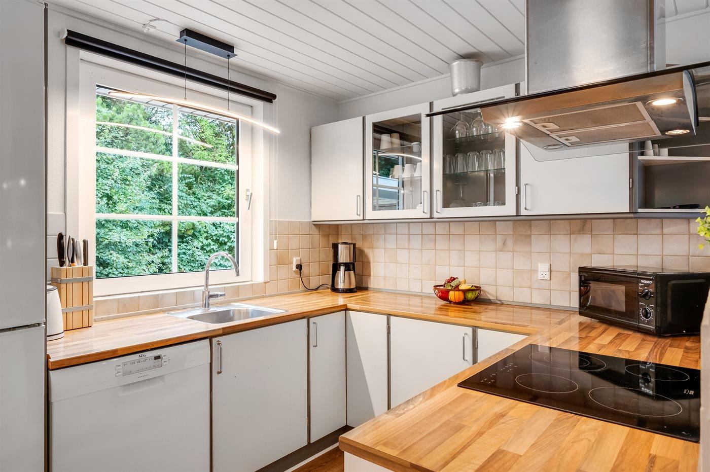Gut ausgestattete Küchenabteilung, die mit dem Wohnzimmer kombiniert ist. Kühlschrank, Umluftofen und Geschirrspüler aus rostfreiem Stahl, Tiefkühlgerät, Mikrowelle und Induktions-Kochzonen vorh. Besonders schöne Swimmingpool-Abteilung mit Swimmingpool (5,9 x 4,0 x 1,3 m), Whirlpool für 4-5 Personen (Standwasser), Sauna und Badezimmer mit Duschnische und Fußbodenheizung. Schönes, zusätzliches Badezimmer mit Duschnische und beheiztem Boden. 5 Schlafzimmer. Gemütliches und geschmackvoll möbliertes Wohnzimmer, das u. a. 32" wide-screen TV und Kaminofen enthält.