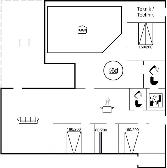 Im Swimmingpool können sich Jung und Alt gemeinsam Vergnügen. Der Swimmingpool misst bis zu 3 m in der Breite, 6 m in der Länge und bis zu 1,4 m in der Tiefe. Die Wassertemperatur liegt zwischen 24 und 28° C. Fußbodenheizung in der Swimmingpool-Abteilung.