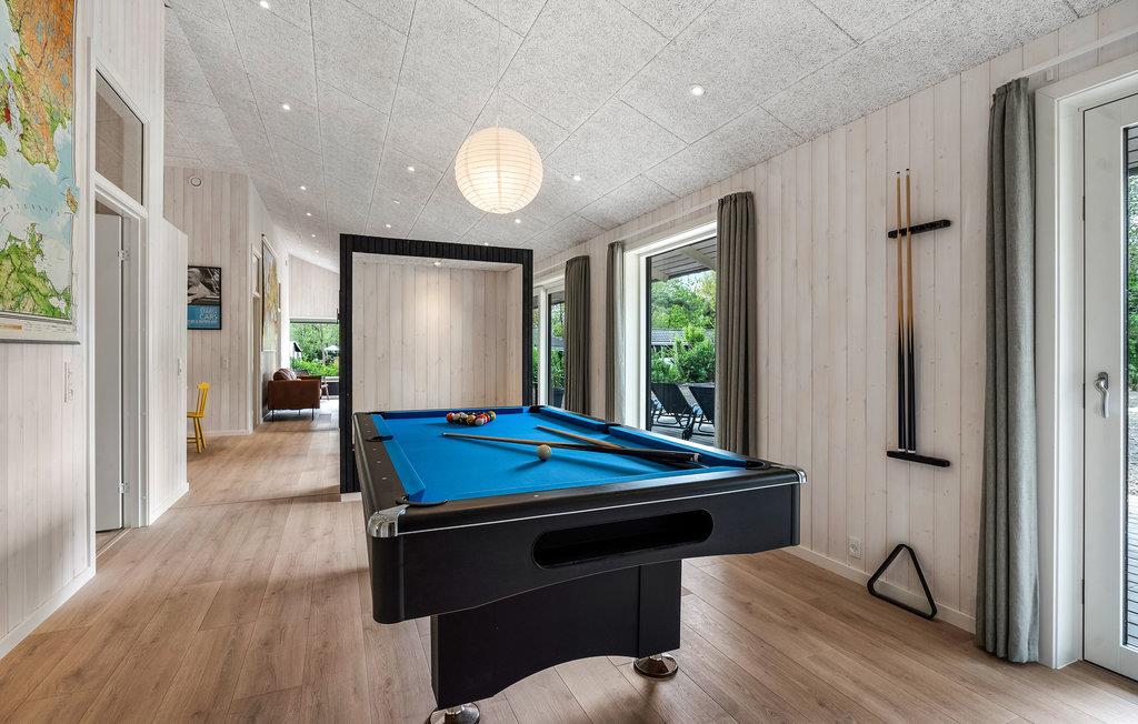 In dem hellen Haus ist alles dafür getan, dass Sie hier mit der ganzen Familie eine schöne Auszeit verbringen können. Die moderne und wohnliche Einrichtung macht es zu einem behaglichen Ort, wo Sie zur Ruhe kommen und den hektischen Alltag hinter sich lassen können. Genießen Sie gemeinsame Mahlzeiten und entspannte Abende im Wohnbereich, hier können Sie auf dem Sofa Platz nehmen, zusammen einen Film ansehen, oder am Billardtisch mit schönem Blick ins Freie ein Familienturnier ausfechten.
