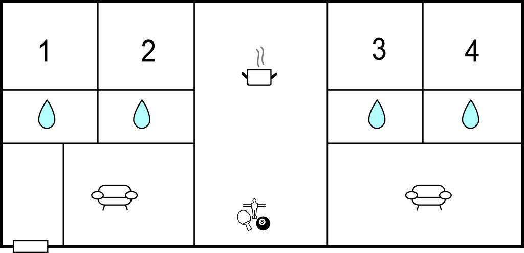 Badezimmer (nr. 4) - WC. Warmes und kaltes Wasser. Dusche