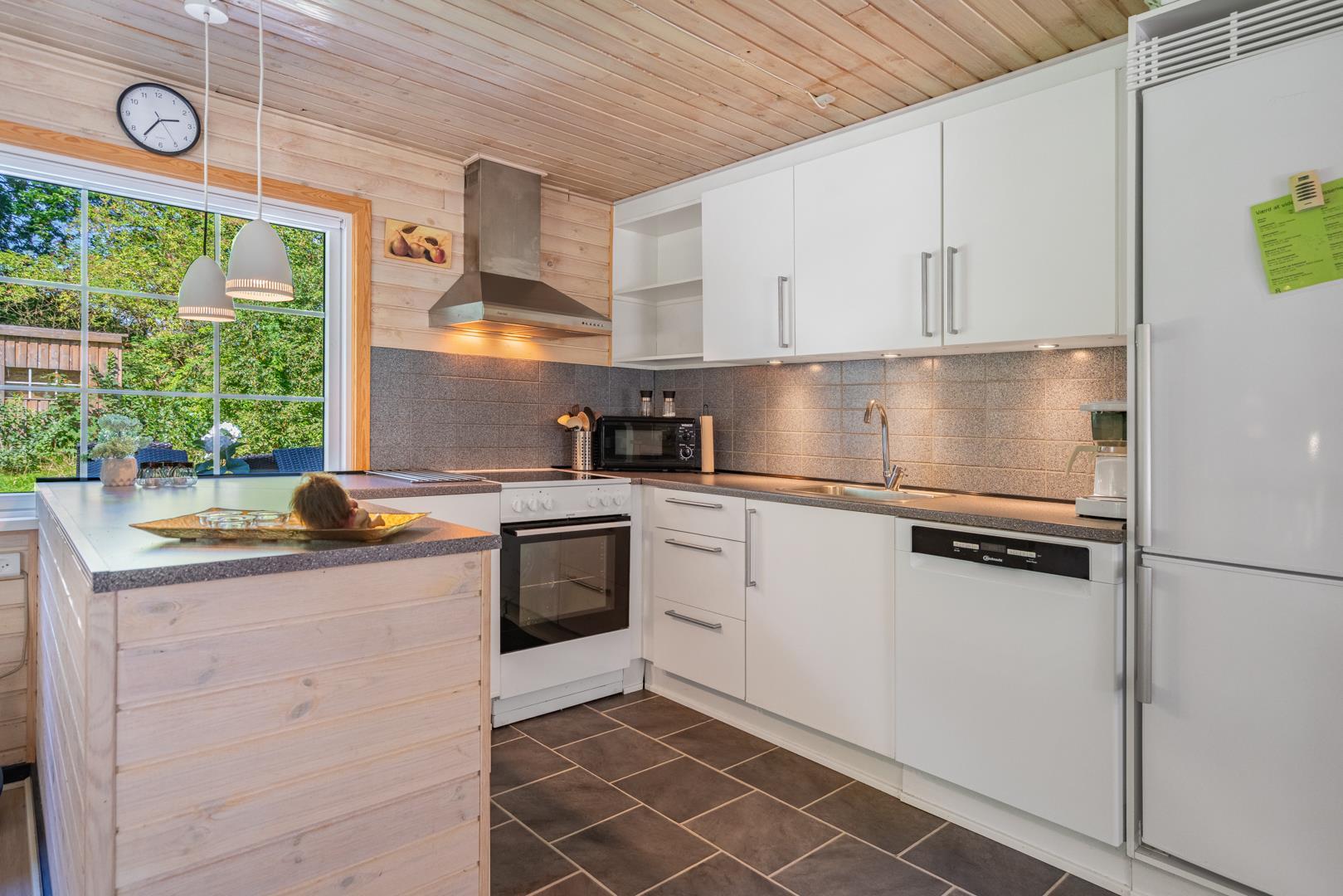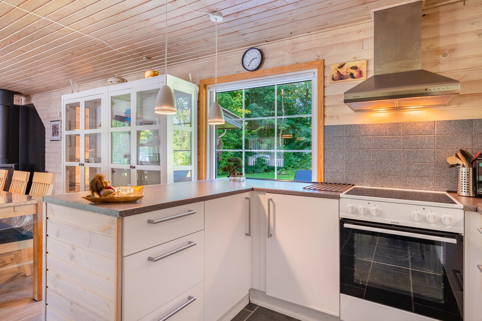 Die offene Küche ist mit allem ausgestattet, was das Herz begehrt – inklusive Spülmaschine, AirFryer, Kühlschrank mit Gefrierfach und ausreichend Platz zum gemeinsamen Kochen. Im gemütlichen Wohnbereich lädt ein Kamin zu entspannten Abenden ein, während die Wärmepumpe für ein angenehmes Raumklima sorgt – nachhaltig und energiesparend.