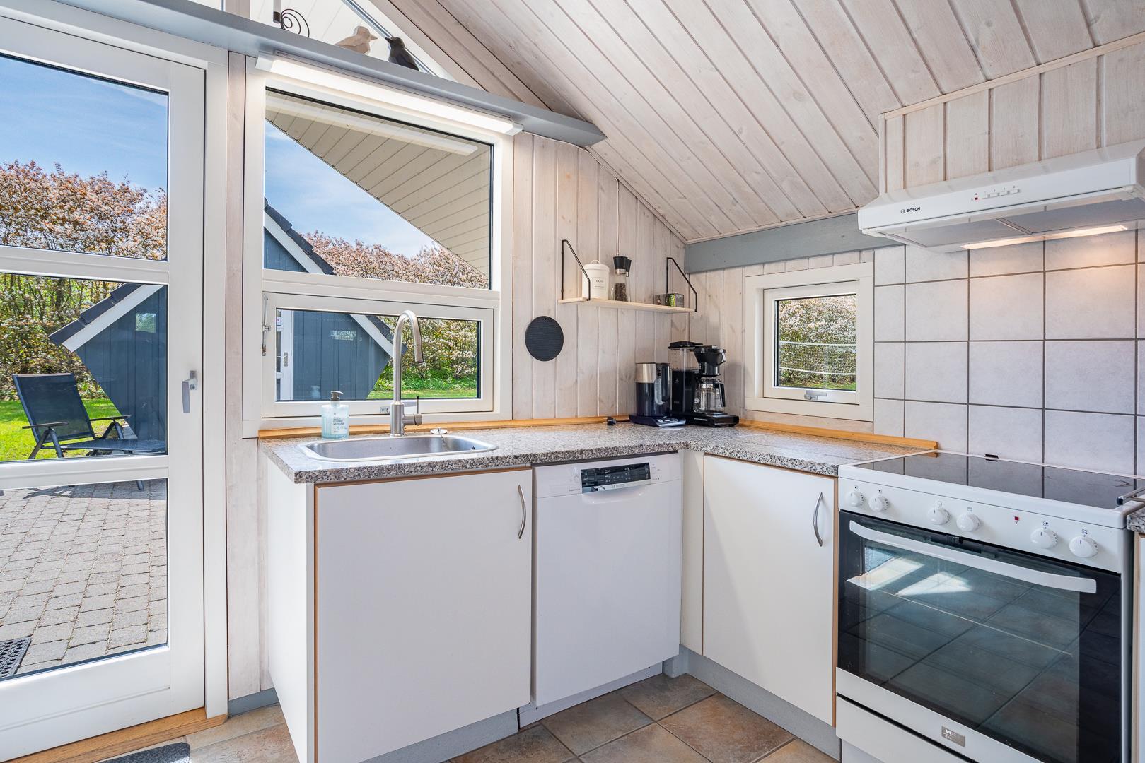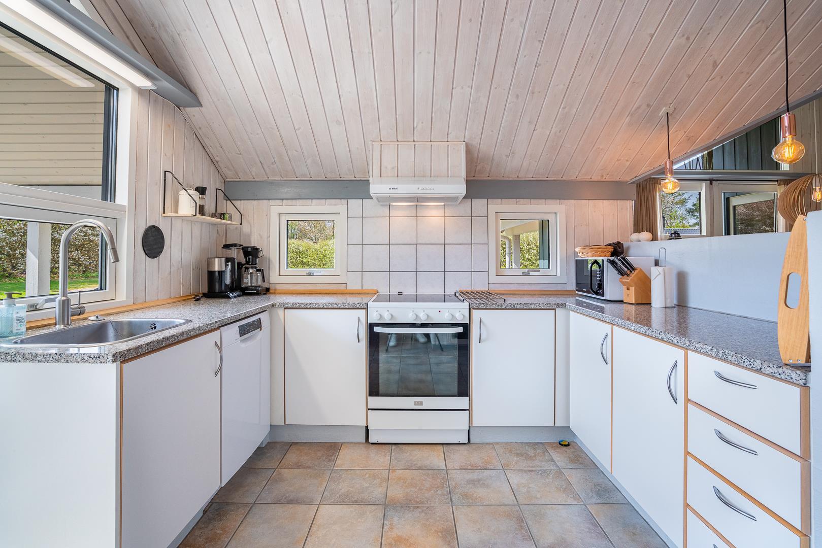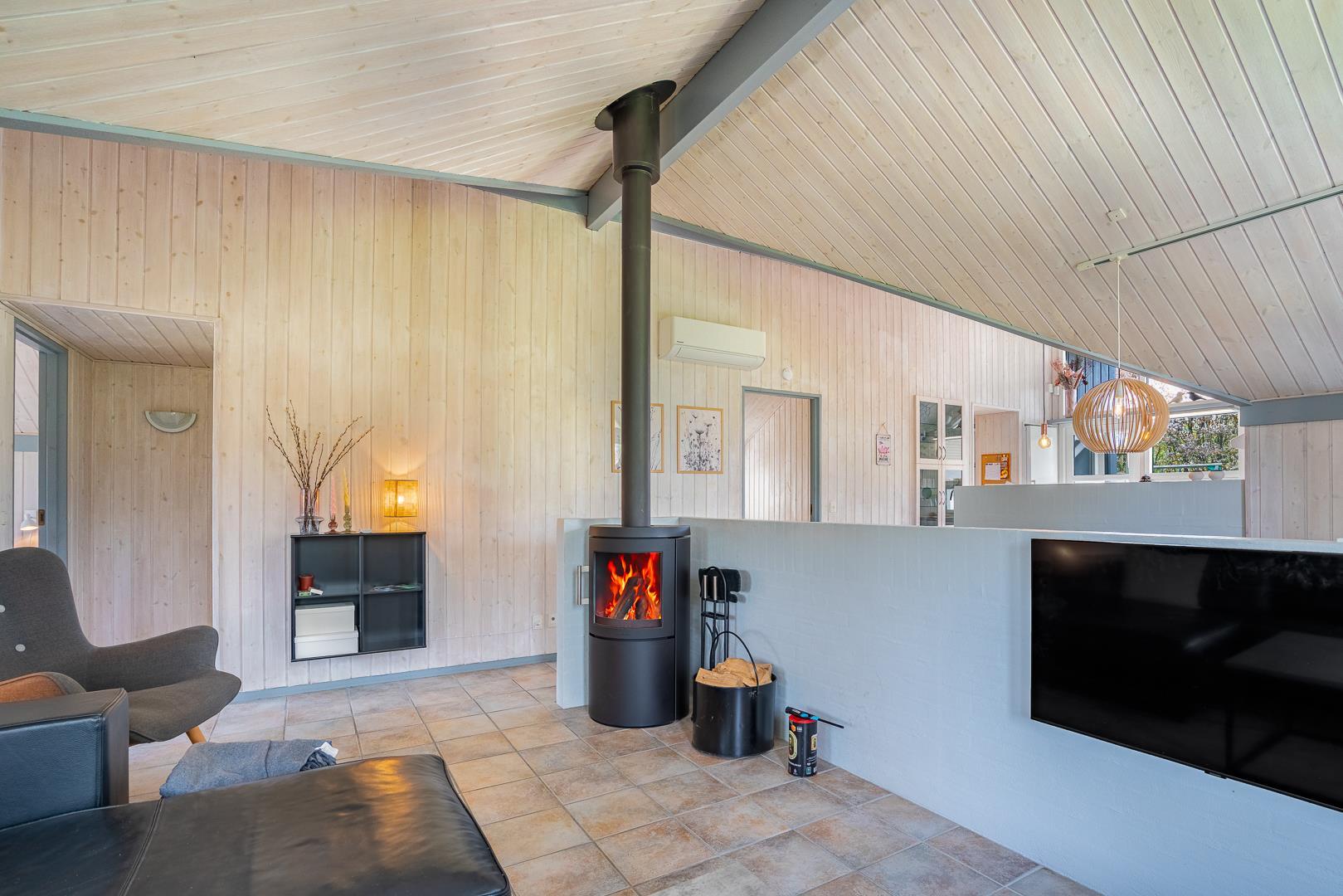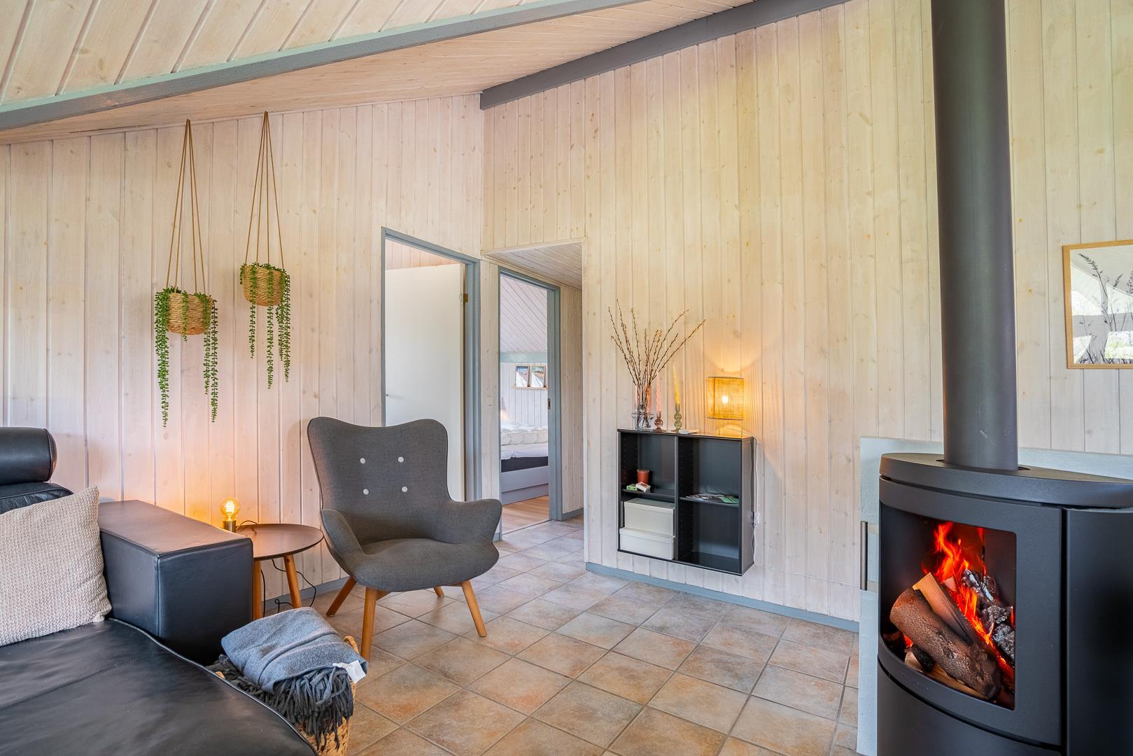 Im Herzen des Ferienhauses erwartet Dich ein einladendes Wohnzimmer mit Kamin und Fußbodenheizung, die auch an kühleren Tagen für wohlige Wärme sorgt. Die offene Küche mit Fußbodenheizung, Spülmaschine und allem, was Du brauchst, lädt zum gemeinsamen Kochen ein. Ein prasselndes Feuer, gute Gespräche und leckeres Essen – so fühlt sich Urlaub in Dänemark an.