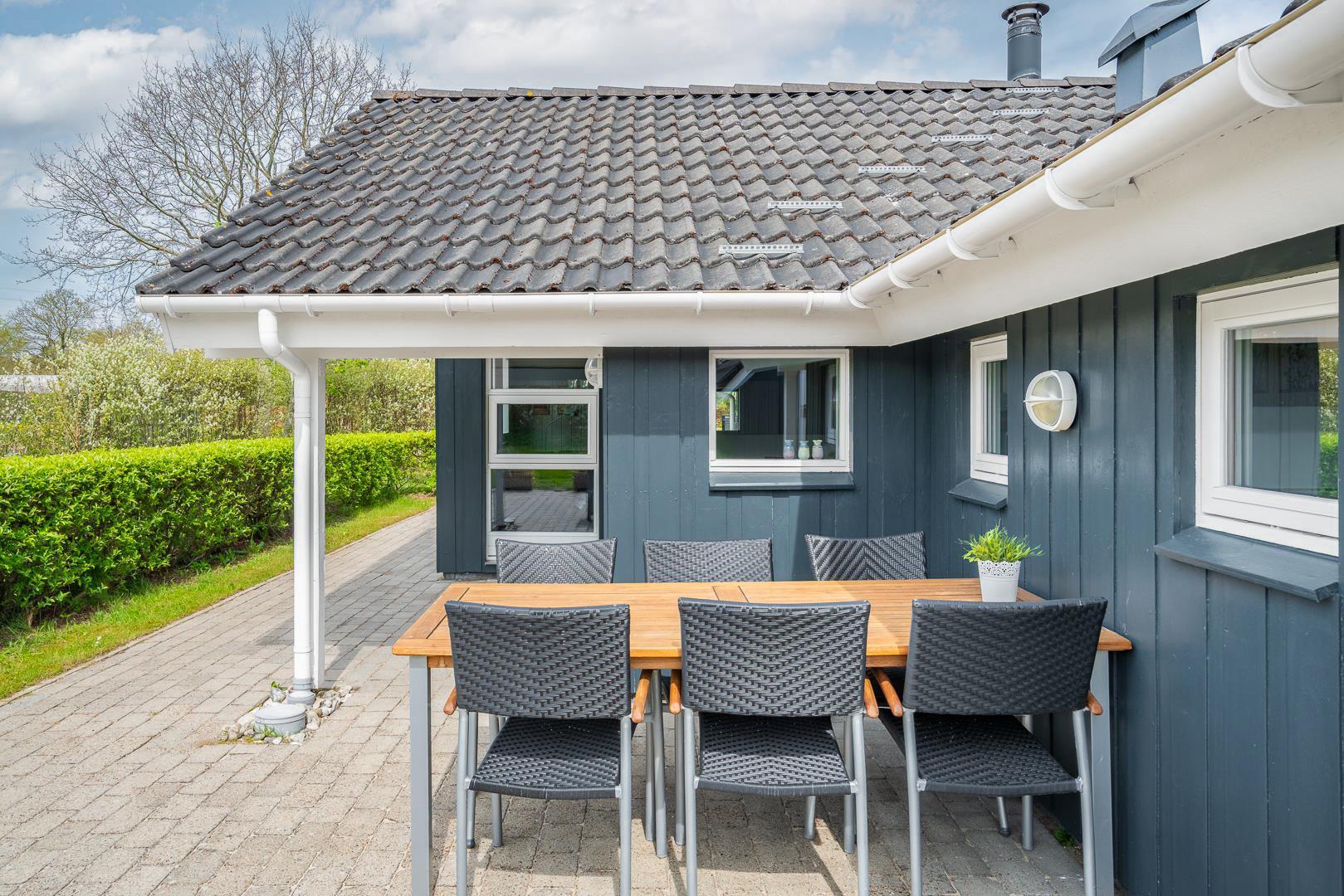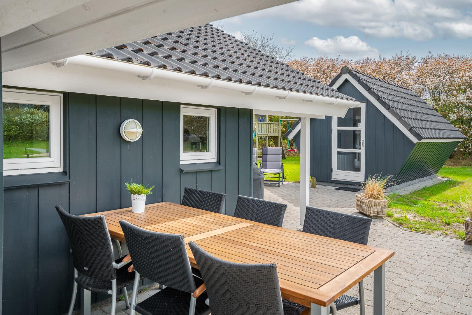 Auf der überdachten Terrasse lässt sich der Tag wunderbar ausklingen – ob beim Grillen, Lesen oder einfach nur, um die Ruhe zu genießen. Die geschützte Lage sorgt für Privatsphäre und echten Naturgenuss.
