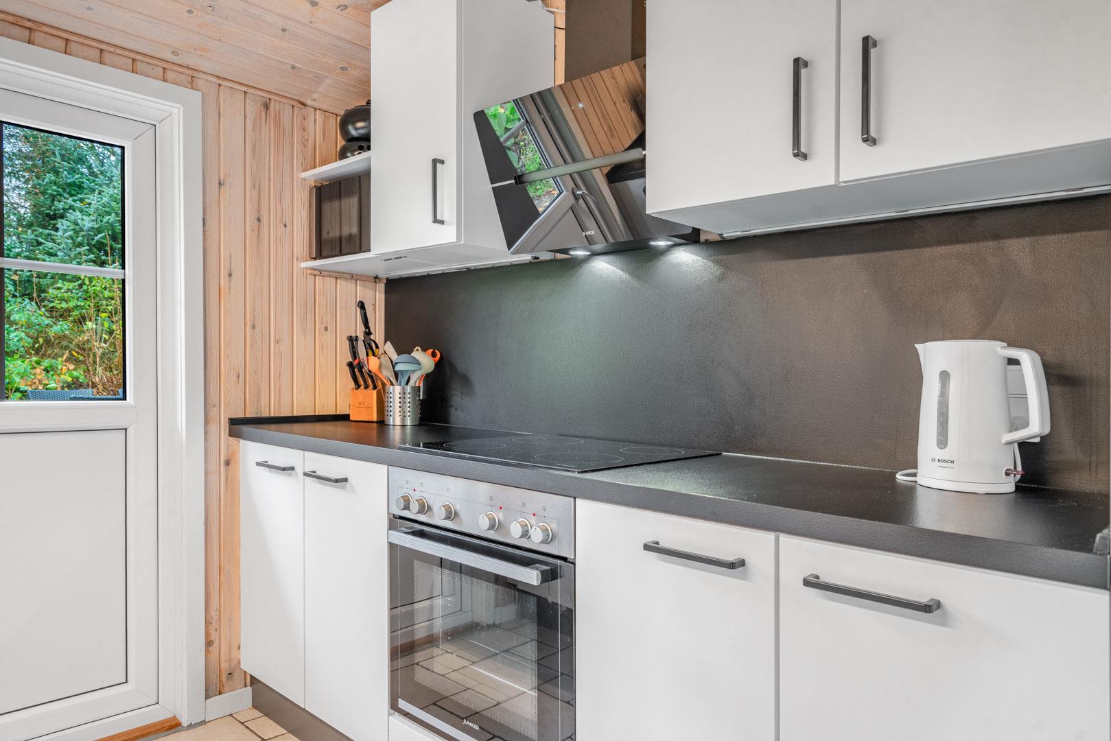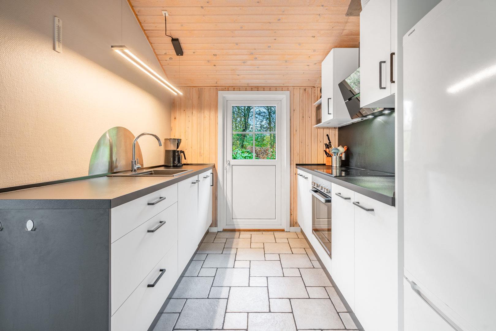 Auch das Kochen macht Spaß in der offenen Küche mit Fußbodenheizung – natürlich mit Spülmaschine. Waschmaschine und Trockner machen den Alltag leicht, wertvolle Gegenstände bringst du sicher im hauseigenen Safe unter und die Wärmepumpe sorgt ganzjährig für angenehme Temperaturen im Ferienhaus.