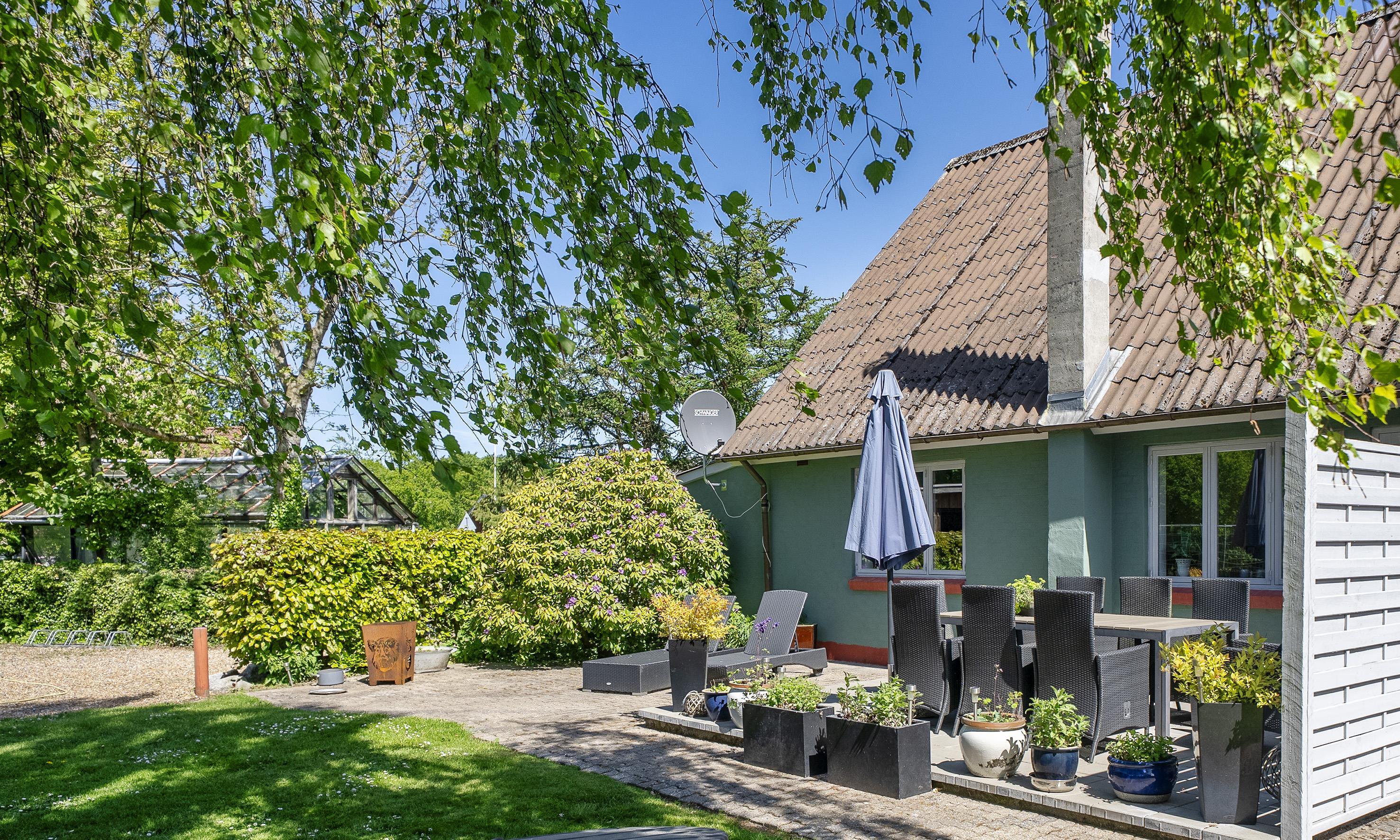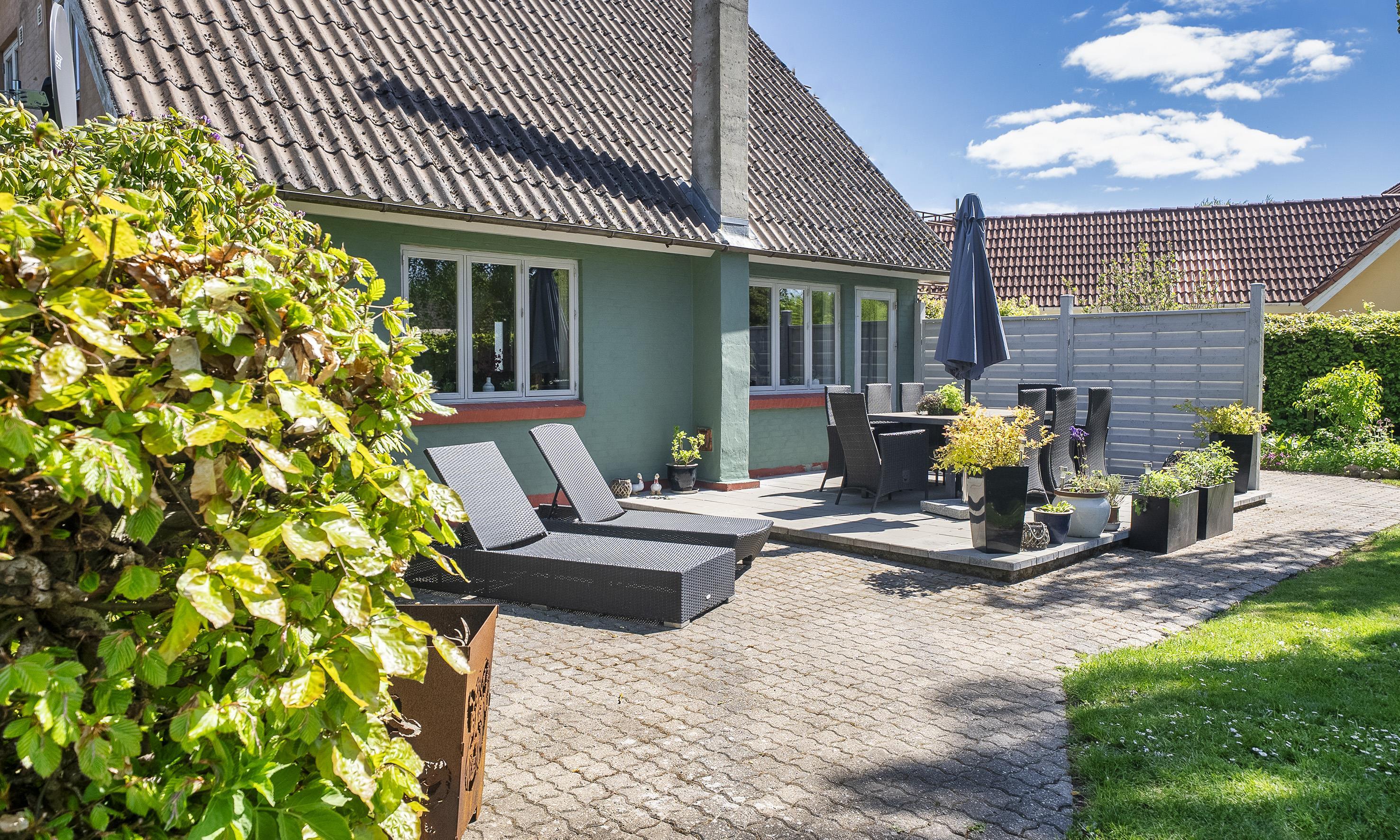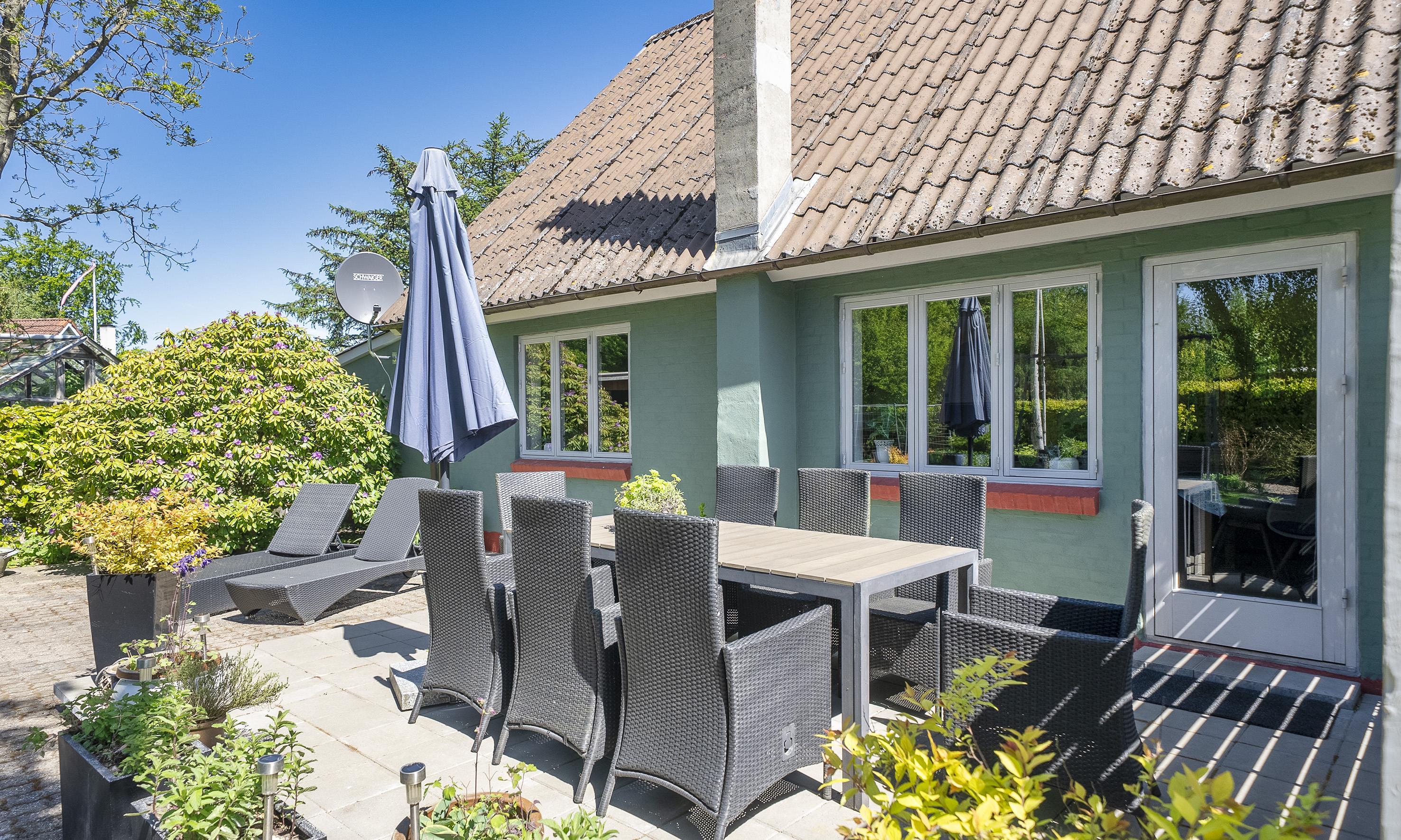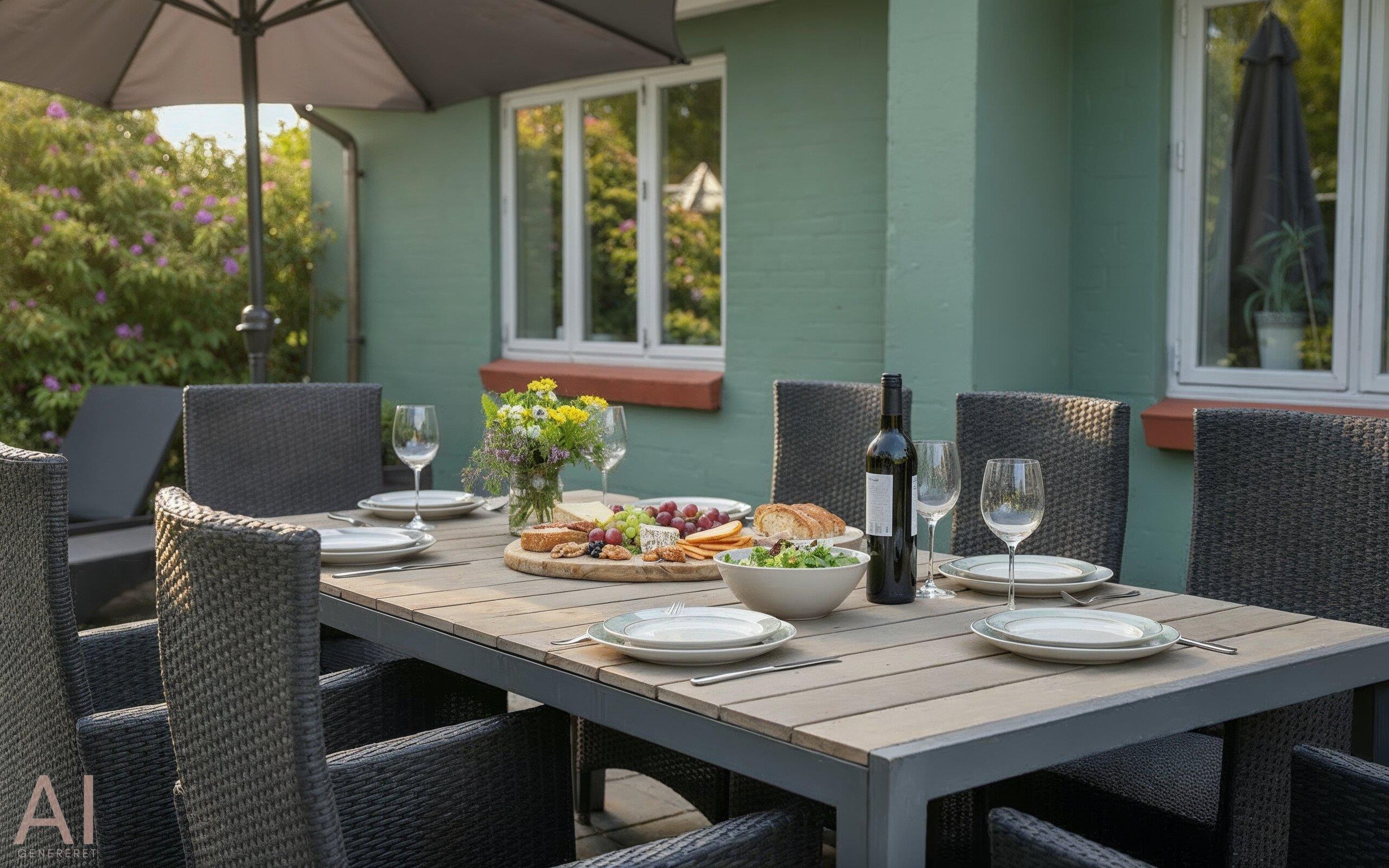 Eine große, überdachte und windgeschützte Terrasse lädt dazu ein, das Abendessen vom Grill auch bei weniger perfektem Wetter im Freien zu genießen.