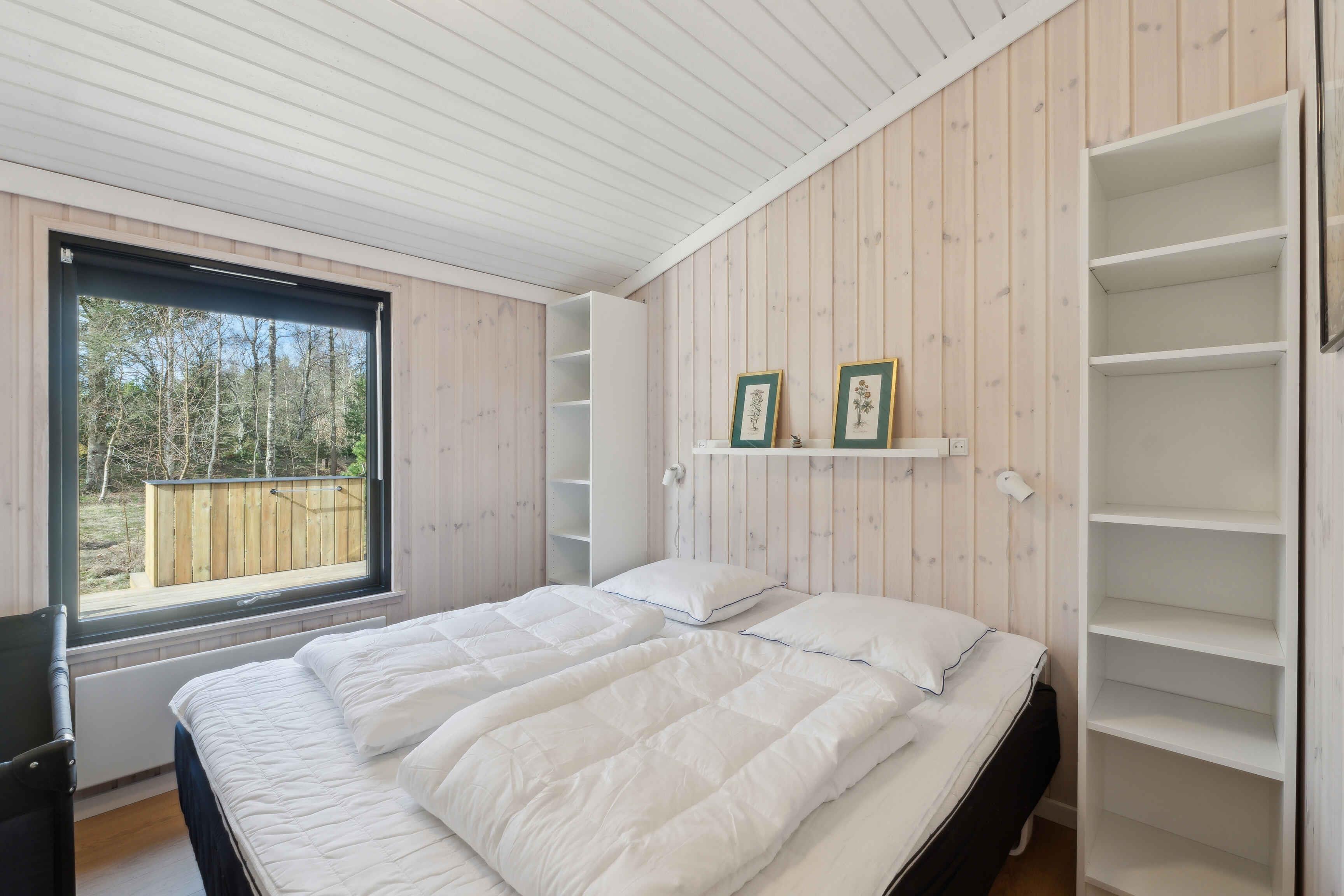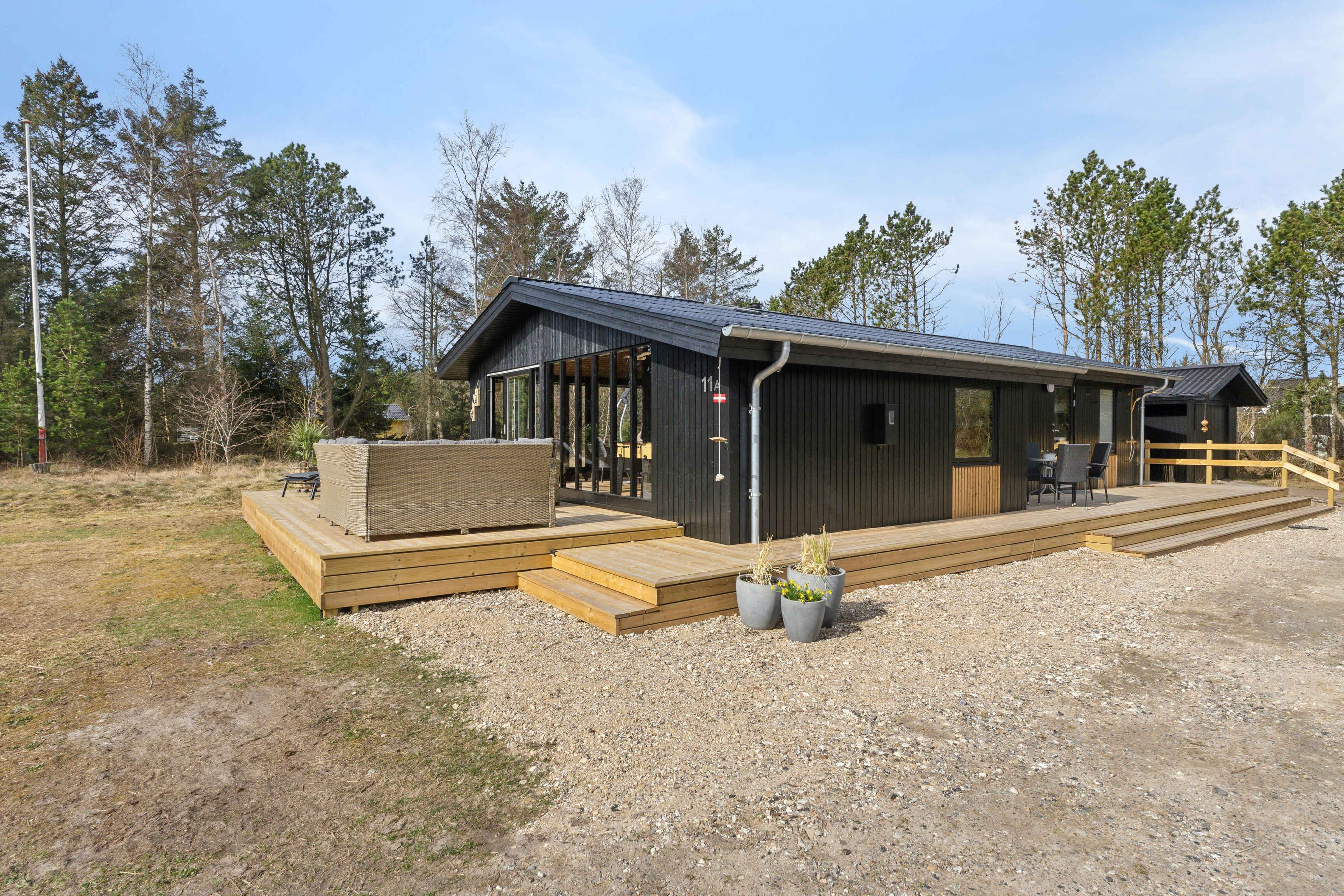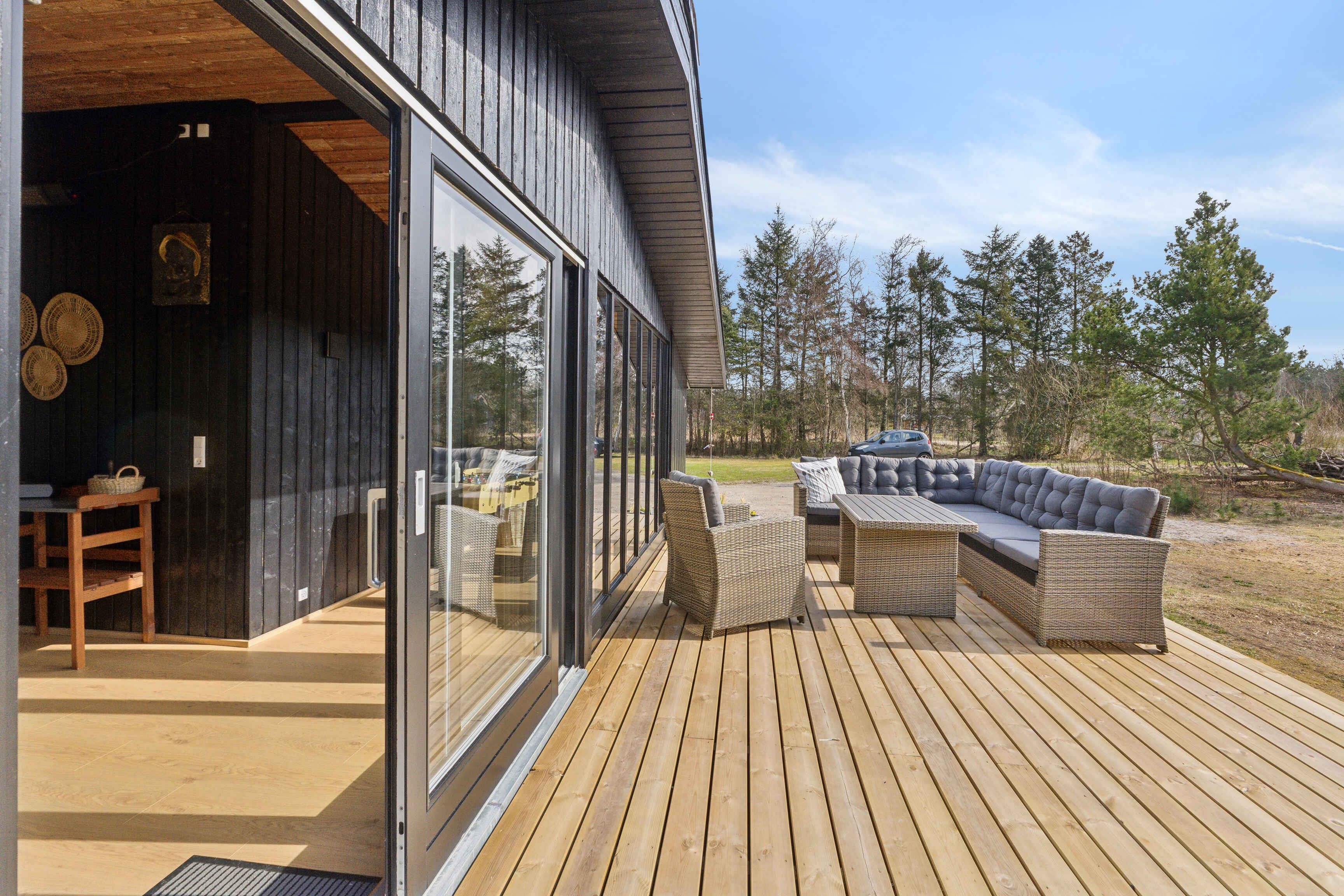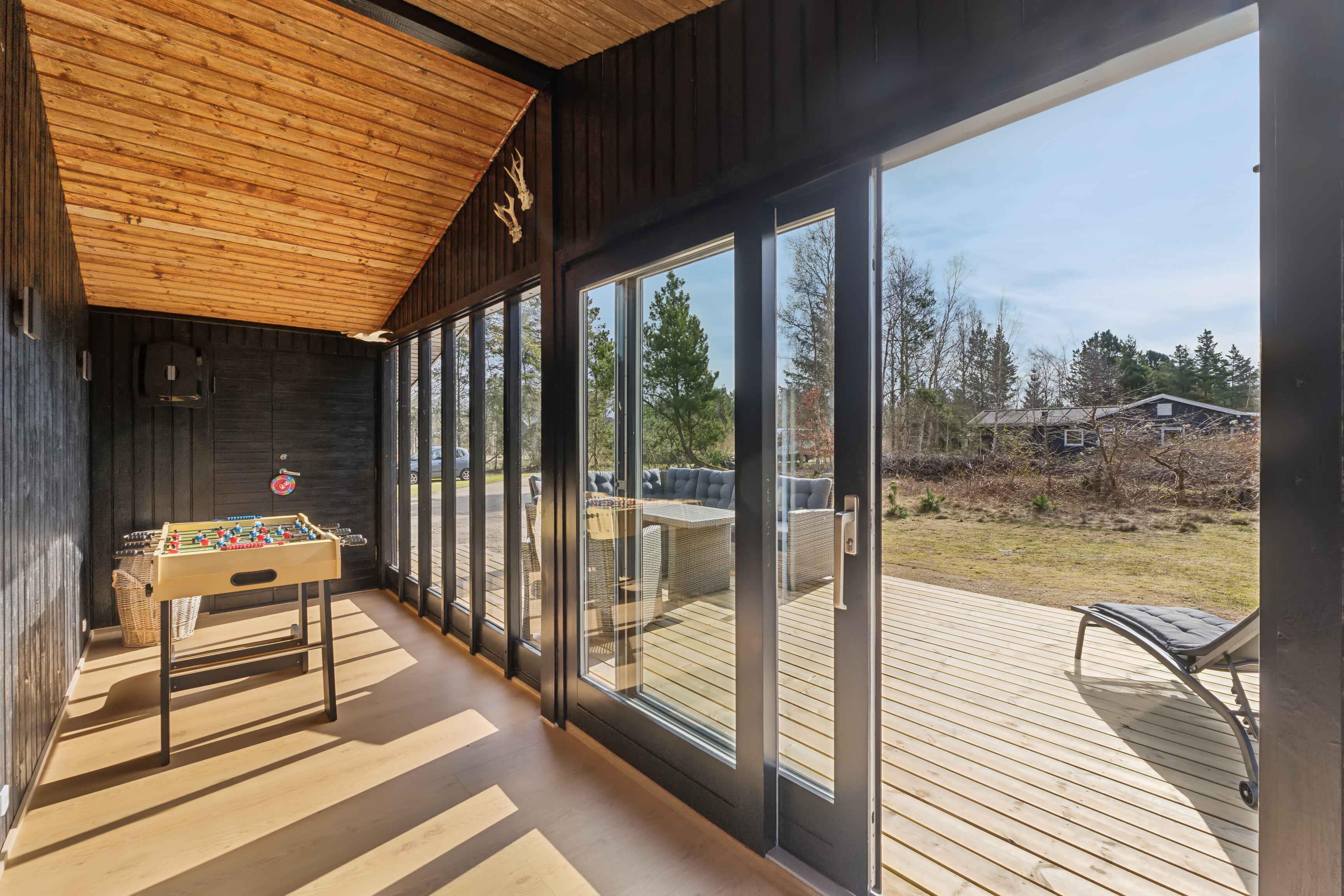 Kleines charmantes Ferienhaus mit großem Naturgrundstück, nahe einem kinderfreundlichen Strand (450-500 m). Das Grundstück ist privat, umgeben von hohen Bäumen und wild wachsenden Büschen. Das Haus wurde 2024 umfassend renoviert, mit einem neuen Badezimmer mit Fußbodenheizung, großer Duschkabine und Regendusche. Ein Kamin sorgt an kalten Tagen für Wärme und eine gemütliche Atmosphäre, ideal, um die umliegende Natur zu genießen. Das Haus verfügt über 3 Schlafzimmer: eines mit Doppelbett, ein Gästezimmer mit einem Dreiviertelbett und ein Kinderzimmer mit Etagenbett, dessen untere Etage auch für Erwachsene geeignet ist. Das gemütliche Wohnzimmer ist lichtdurchflutet dank großer Fenster und Terrassentüren. Beobachten Sie Eichhörnchen, Rehe und andere Tiere, die oft den Garten besuchen. Die Küche stammt aus dem Jahr 1974 und wurde mit modernen Akzenten aufgewertet, die perfekt zum Charme des Hauses passen. Das Haus ist 66 m² groß und hat einen geschlossenen Wintergarten von 20 m², der die meiste Zeit des Jahres als Wohnraum genutzt werden kann. Der Wintergarten bietet auch Tischfußball und eine elektrische Dartscheibe. WLAN und TV-Kanäle sind verfügbar, und sowohl das Wohnzimmer als auch das Kinderzimmer sind mit Smart-TVs ausgestattet. Alternativ können Sie Brettspiele, Karten oder Kinderbücher nutzen, die im Haus vorhanden sind. Drei Terrassentüren führen zu zwei großen Terrassen und einer kleineren, perfekt für einen Kaffee in der Morgensonne. Die Terrassen sind ausgestattet mit Esstischen, Stühlen, einer Loungegruppe, einer Außendusche, einem holzbefeuerten Whirlpool mit Düsen und stimmungsvoller Beleuchtung, einem Grill und einem Sonnenschirm. Der Garten bietet eine Trampolin, eine 250 m² große Rasenfläche für Fußball oder andere Spiele und einen Außenkamin für Marshmallows und Stockbrot. Auch Spiele wie Krocket, Bälle und Schläger sind vorhanden. Ein 600 Meter langer Weg führt durch charmante Pfade oder Straßen zu einem Gemeinschaftsspielplatz mit Rutsche, Kletterturm, Schaukeln, Trampolinen und einem Fußballfeld. Im Sommer gibt es dort auch einen saisonalen Kiosk und ein Eiscafé. Nur wenige Schritte vom Spielplatz entfernt liegt ein kinder- und rollstuhlfreundlicher Strand mit Badesteg. Dieses Haus ist ideal für diejenigen, die Natur und modernen Komfort kombinieren möchten. Achtung: Wird nicht für gewerbliche Nutzung vermietet.