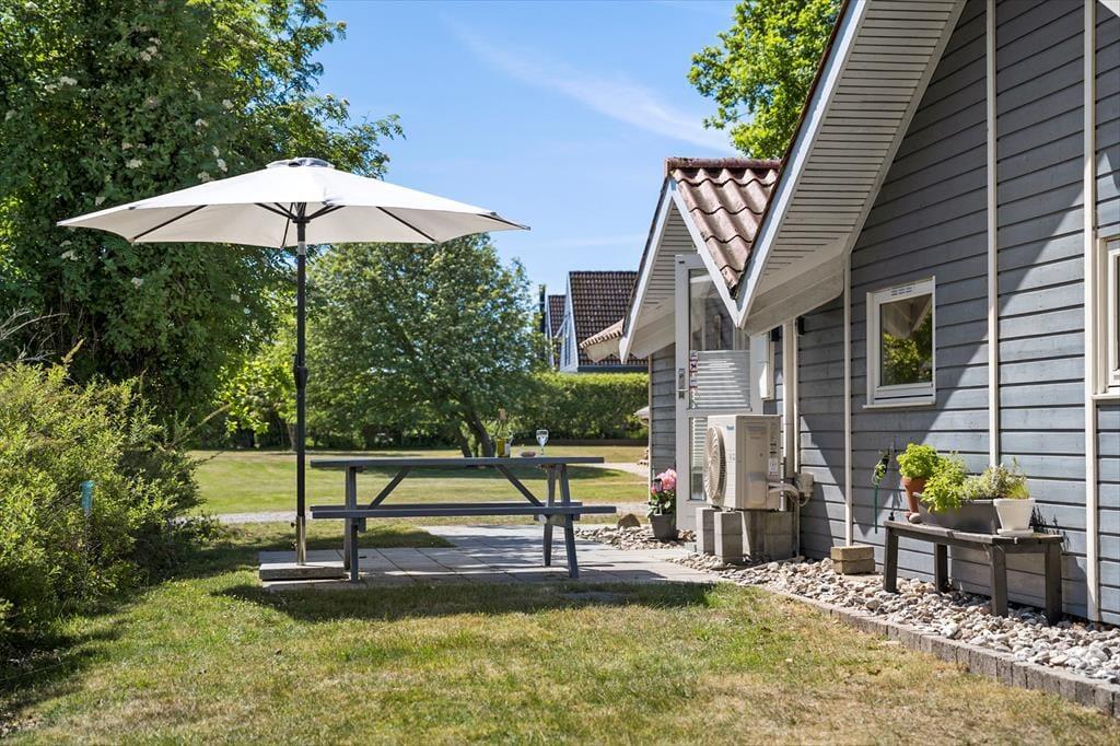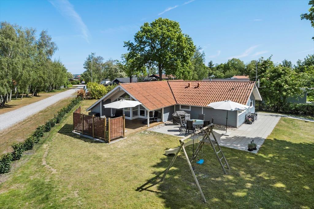 Die Lage des Ferienhauses ist ideal für einen Urlaub, der durch bestes Strandleben und die Nähe zum Ort geprägt sein soll. Bereits nach fünf Minuten erreichen Sie zu Fuß den nur 300 Meter entfernten, wunderbar kinderfreundlichen Sandstrand. Einen Spaziergang können Sie auch ohne Weiteres mit Ihrem täglichen Einkauf oder einem Bummel durch die idyllische Fußgängerzone Juelsmindes verbinden, in der sich bereits diverse schöne Geschäfte auf Ihren Besuch freuen. In Verlängerung der Fußgängerzone gibt es darüber hinaus einen stimmungsvollen Sportboothafen, in dem das entspannte Leben während der Sommermonate pulsiert. Hier treffen Sie auch auf ein Restaurant, können Eis essen, Minigolf spielen, im Hafenbecken Krabben fangen und vieles andere mehr. Unbedingt ans Herz legen möchte wir Ihnen außerdem einen Besuch des ganz neuen Naturspielplatzes, der nur rund 1,5 Kilometer abseits des Hauses, am Fuße des Odelsbjerget liegt. Der grandiose Spielplatz begeistert nicht nur mit seinem 8 Meter hohen Spielturm, sondern auch mit einer wahren Fülle an Spielgeräten, mehreren Multifunktionsplätzen, Geschicklichkeitsparcours und zwei ganz neuen Paddle-Tennis-Anlagen. Auf diesem Spielplatz werden Sie mit Ihren Kindern garantiert mehr als nur eine vergnügte Stunde verleben. Golfspielende Urlauber dürfte die Nähe zum nur 2 Kilometer entfernten 18-Loch-Golfplatz verzücken.
