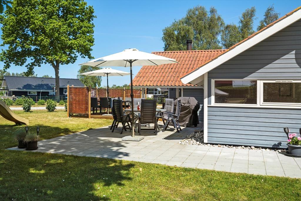 Im Garten, der sich rund um das Ferienhaus erstreckt, bieten sich Ihnen zahlreiche schöne Möglichkeiten, ein gemütliches Eckchen in der Sonne oder auch im Schatten zu finden. Die Terrassen des Hauses sind teils offen, teils überdacht. Diverse Gartenmöbel, Liegestühle und Sonnenschirme laden zu traumhaft erholsamen Stunden unter dem hohen, nordischen Himmel ein. Dank des schönen Gasgrills können Sie Ihre Mittag- und Abendessen wunderbar im Freien zubereiten und anschließend in geselliger Runde auf den Terrassen genießen. Der Garten bietet angenehm viel Platz zum Spielen und Umhertollen. Die jüngsten Urlauber dürfen sich zudem auf eine Rutsche und Schaukeln freuen.