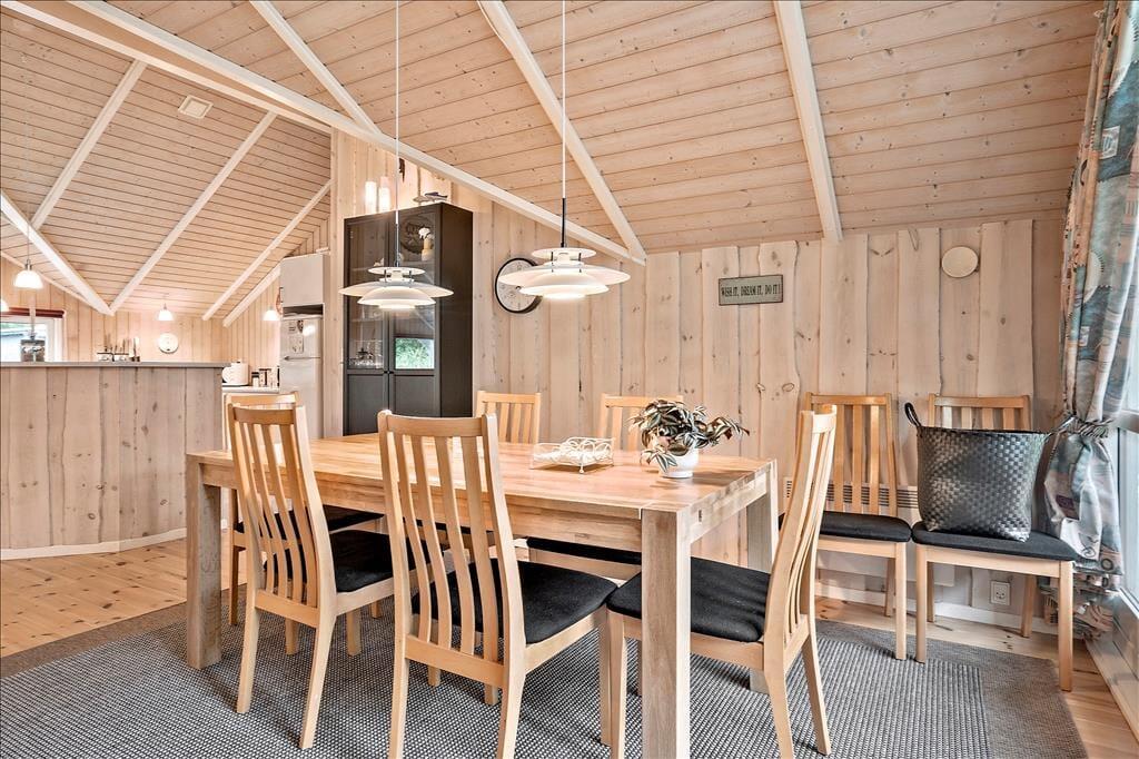 Willkommen in diesem ansprechenden Ferienhaus, das ausreichend Platz für 4 Erwachsene und 2 Kinder bietet. Sie wohnen angenehm nah am Ort und am Hafen und dennoch ruhig in einem schönen Ferienhausgebiet. Das Urlaubsdomizil beinhaltet insgesamt drei Schlafzimmer, eine Küche, einen gemütlichen Wohnraum mit einem Kaminofen und ein Badezimmer, das mit einem WC, einer Dusche, einer Waschmaschine und einem Wäschetrockner ausgestattet ist. Im Wohnraum ist unter anderem auch ein Kindertisch platziert, der sicherstellt, das selbst die Jüngsten beim Essen bequem sitzen und in aller Ruhe im Tagesverlauf malen, basteln und gemeinsam Spiele spielen können. Die Küche bietet Ihnen alles, was Sie für die Zubereitung Ihrer Urlaubsmahlzeiten benötigen. Sie ist zudem schön und harmonisch in den Wohnraum integriert. Die Schlafplätze verteilen sich auf zwei Schlafzimmer mit je einem guten Doppelbett und auf einen Schlafraum mit einem Etagenbett. Für Unterhaltung und Abwechslung sorgt der im Wohnraum platzierte Fernseher, der nicht nur gewöhnliche Fernsehsender empfängt, sondern sich Dank Chromecast in Kombination mit Ihrem privaten Streamingabo auch zum Streamen von Internetinhalten, Filmen und Serien eignet.