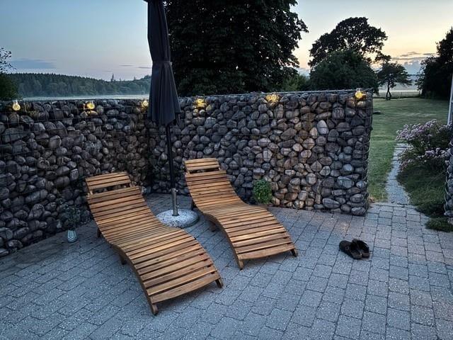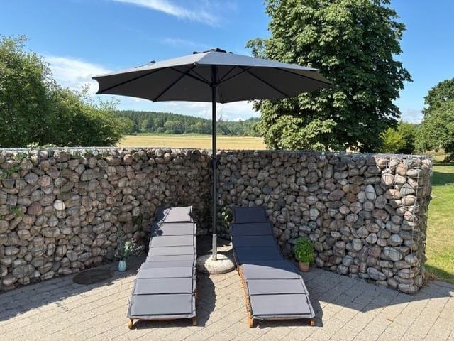 Die Lage dieses Urlaubsdomizils ist wirklich einzigartig. Sie wohnen wunderbar nah an Juelsminde, am Strand und am Wald. Wunderschöne Natur erstreckt sich direkt vor Ihrer Haustür. Das schöne Grundstück umfasst eine Fläche von 4.000 m² und bietet Ihnen somit ausgesprochen viel Platz und Bewegungsfreiheit. Unter freiem Himmel gibt es gleich mehrere offene und überdachte Terrassen. Gartenmöbel und Liegestühle sind vorhanden. Gleiches gilt für zahlreiche gemütliche Eckchen, in denen Sie sich in aller Ruhe und ganz gedankenverloren niederlassen und entspannen können. Falls Sie eher den angenehm kühlen Schatten bevorzugen, ziehen Sie sich einfach unter den Sonnenschirm oder unter die Markise zurück. Aktive Gäste dürfen sich auf die große Grasfläche mit zwei Fußballtoren freuen. Ihre Kinder wird sicherlich das Trampolin verzücken. Insgesamt bietet sich Ihnen und Ihrer Familie wunderbar viel Platz für gemeinsame Aktivitäten. Allabendlich lockt darüber hinaus Ihre private Lagerfeuerstelle, an der Sie in aller Gemütlichkeit Würstchen und Stockbrot rösten und schaurig-schöne Geschichten erzählen können. Traumhaft schöne Momente der Erholung und Entspannung garantieren Ihnen die Schwedische Badetonne und die ganz fantastische Außensauna, die darüber hinaus mit einer prachtvollen Aussicht über die Landschaft zu verzaubern weiß - diese Momente sind reinster Balsam für Körper und Seele!