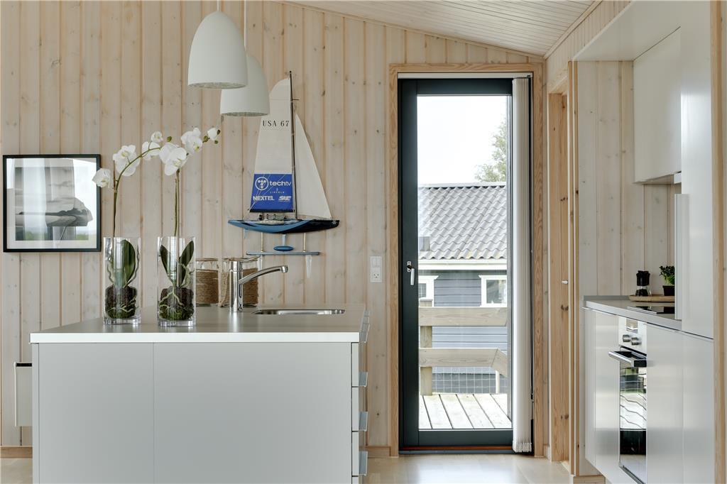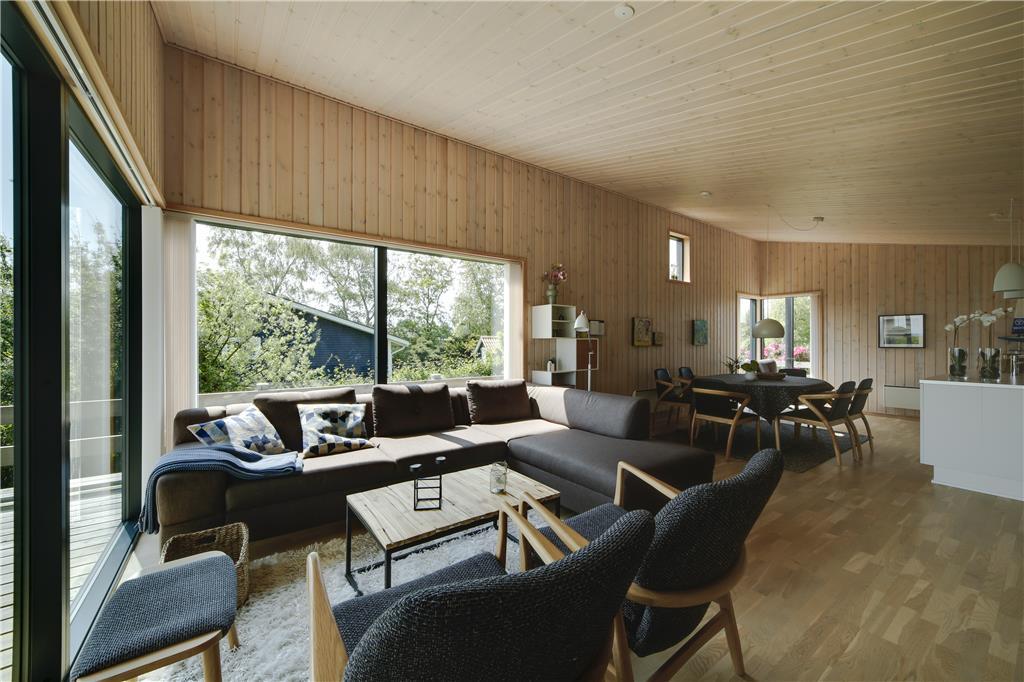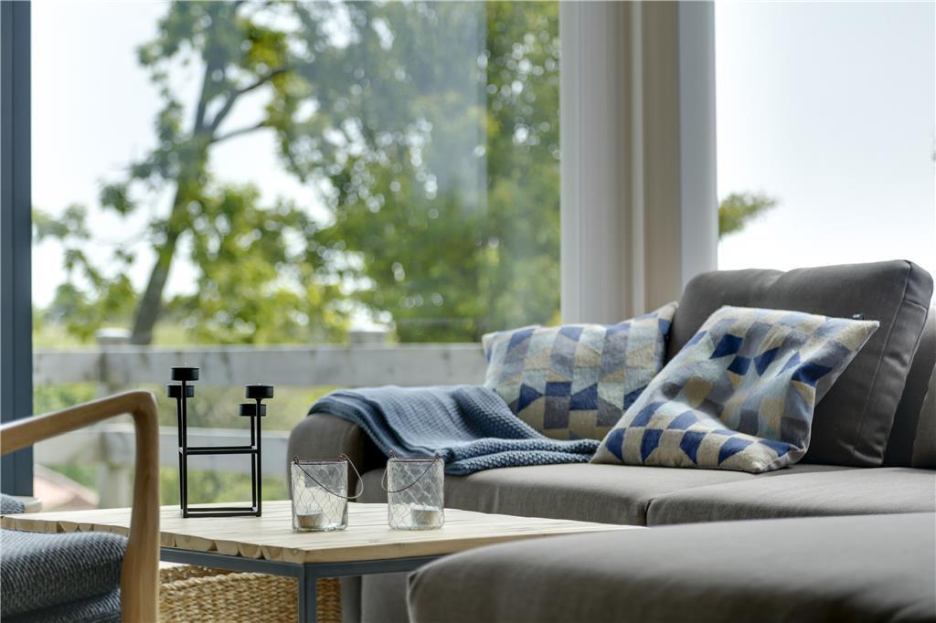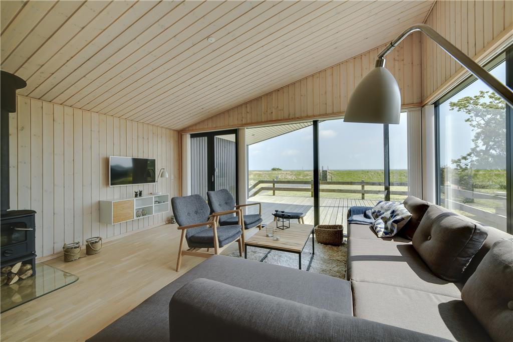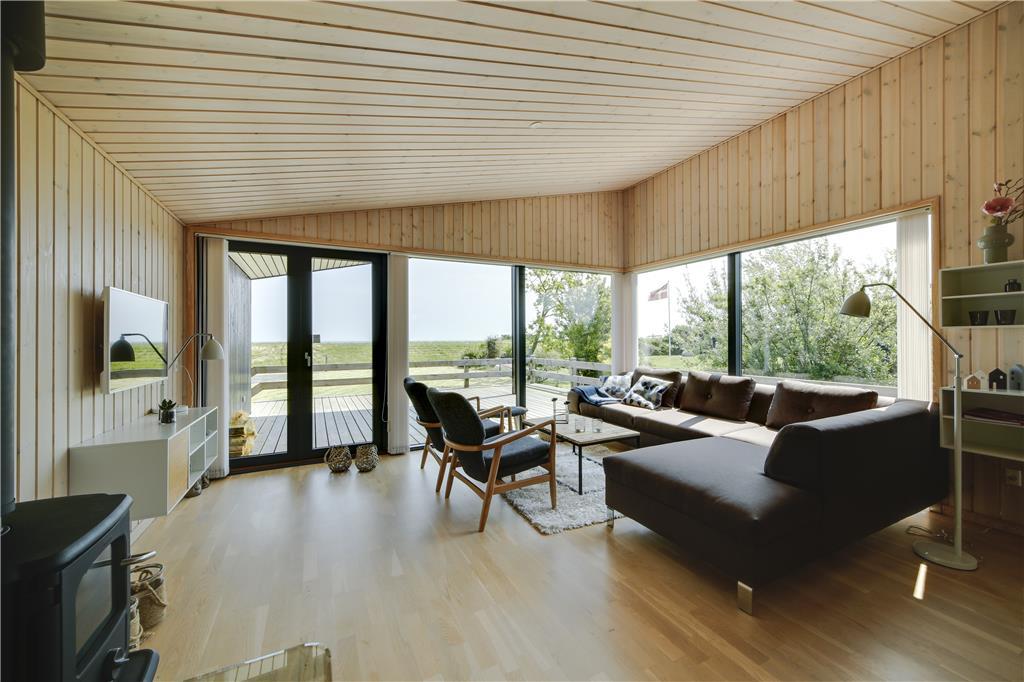 Betreten Sie ein helles und einladendes Ferienhaus, in dem große Fenster im Wohnzimmer die Natur ins Innere holen. Von der Couch aus können Sie den Blick über das Meer schweifen lassen, während das Tageslicht den Raum erfüllt und eine luftige und entspannte Atmosphäre schafft. Die Einrichtung ist gemütlich und einladend – perfekt für erholsame Stunden und gemeinsame Erlebnisse. Der Essbereich lädt zu langen, genussvollen Mahlzeiten ein, bei denen Sie das Meer als traumhafte Kulisse genießen können.