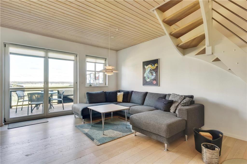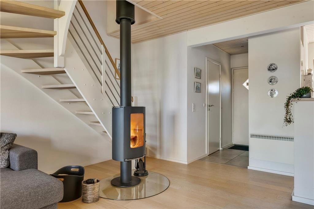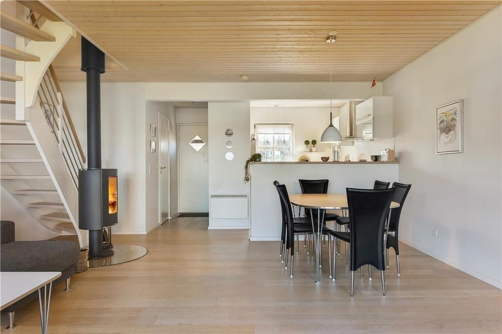 Wir begrüßen Sie in den beliebten Ferienwohnungen am Strandengen Juelsminde. Die Ferienwohnung hat eine der besten Lagen in Strandengen mit direktem Meerblick sowohl von der unteren als auch von der oberen Etage. Es gibt Platz für die ganze Familie mit drei Schlafzimmern, mit je einem Doppelbett. Im Wohnzimmer gibt es ein schönes Sofa mit Platz für Gemütlichkeit und an kalten Abenden, können Sie den Kamin anmachen. Die Küche ist mit allem ausgestattet, was die moderne Familie im Urlaub braucht. Außerdem gibt es ein Badezimmer mit einer schönen Badewanne (ohne Whirlpoolfunktion) sowie ein Gäste WC.