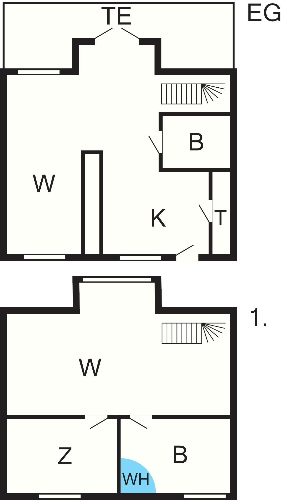 Bad: Waschm., WC, Waschb., Dusche, Fußbodenheiz.