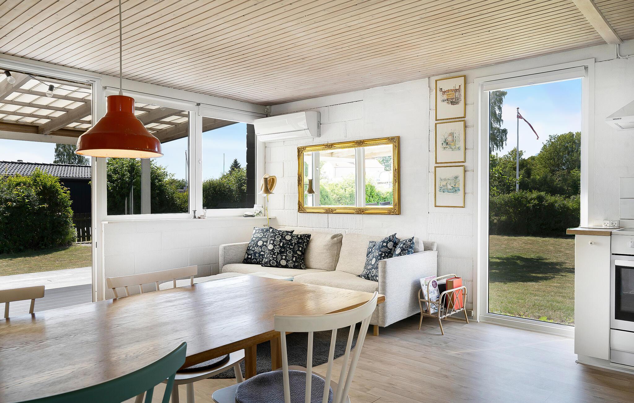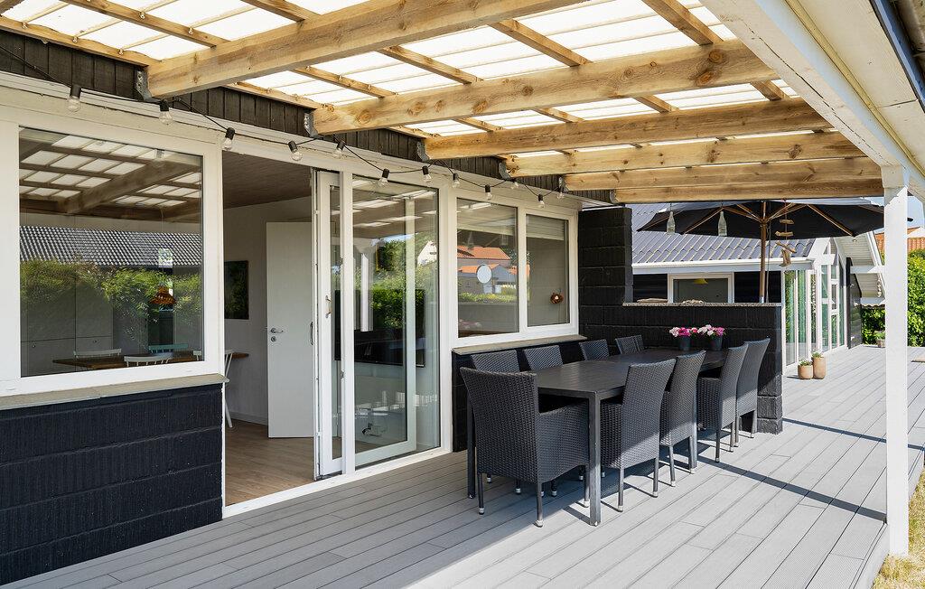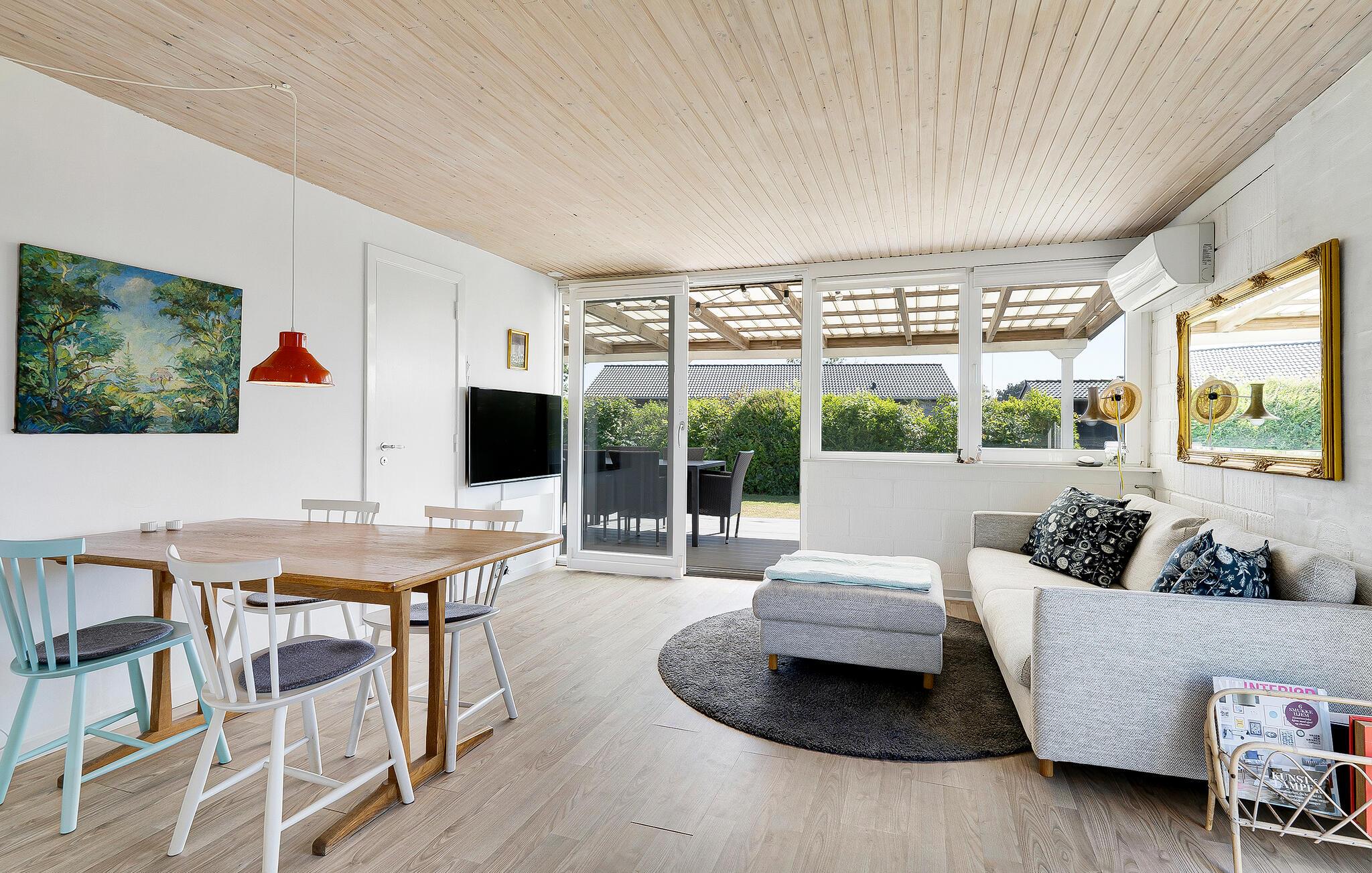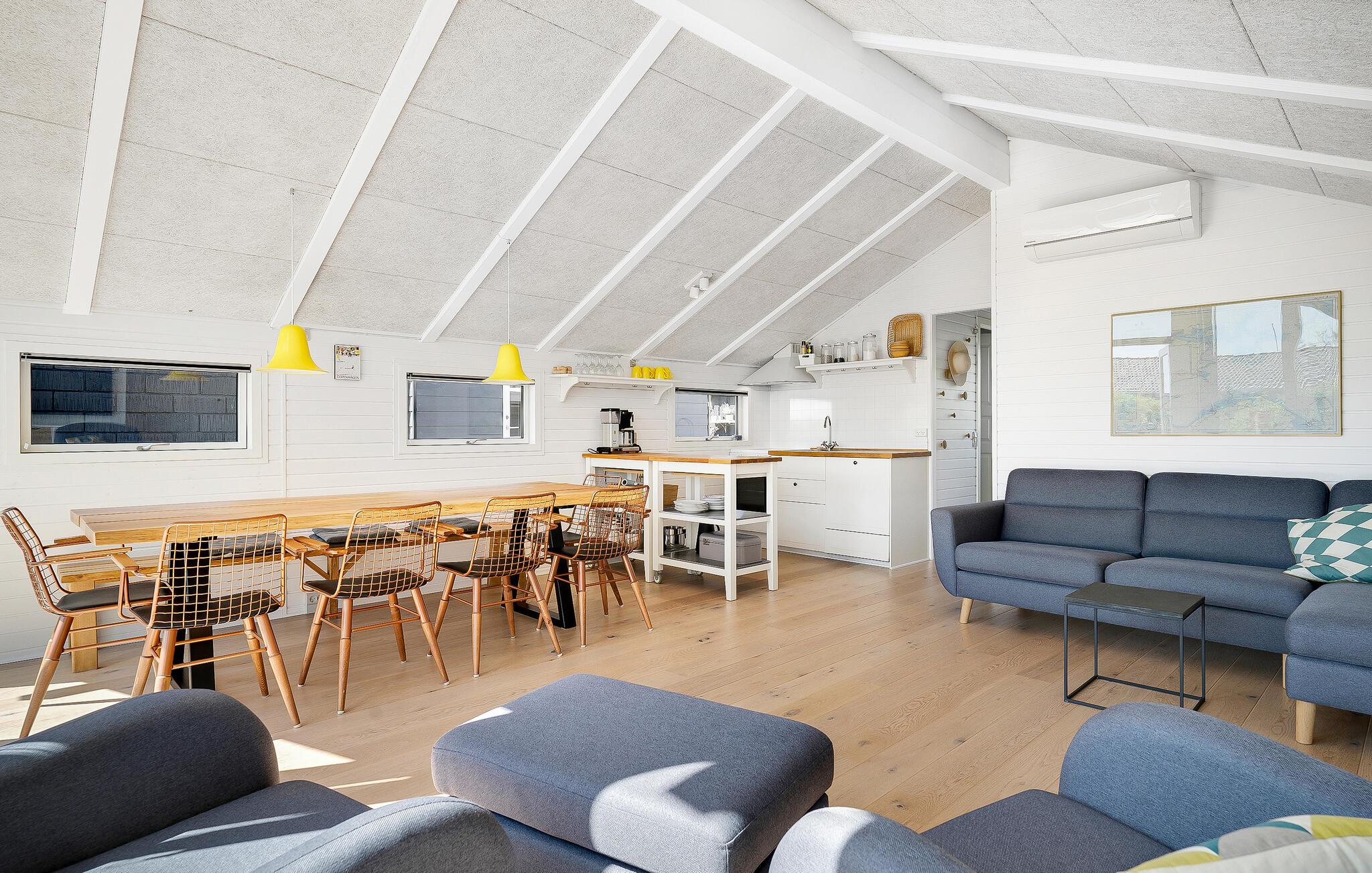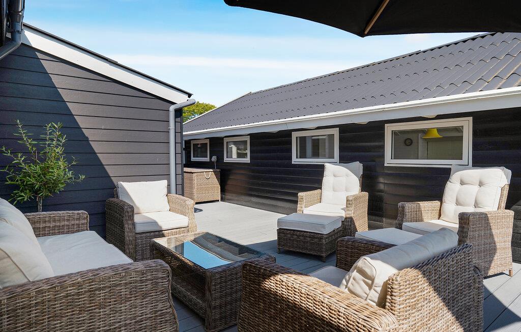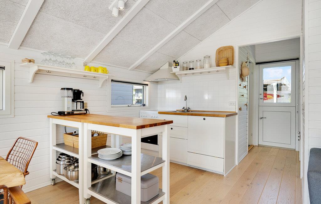 Treten Sie ein in Ihr Ferienhaus, das aus zwei Gebäuden besteht, und fühlen Sie sofort die sorglose und entspannte Stimmung nur wenige Schritte vom Strand entfernt. Die offene Küche lädt zum gemeinsamen Kochen und zu anregenden Gesprächen bei einer Tasse Kaffee ein. Nutzen Sie im Wohnzimmer die bequemen Sitzgelegenheiten zum Entspannen und schauen Sie einen guten Familienfilm oder vertiefen Sie sich in ein spannendes Buch. Auch draußen eröffnen sich Ihnen vielseitige Möglichkeiten zur Entspannung und Freizeitgestaltung. Die weitläufige Terrasse bietet den idealen Ort, um die frische Luft zu genießen, entweder überdacht, unter dem Sonnenschirm oder einfach nur unter freiem Himmel. Spielen Sie Fußball auf dem Rasen mit Ihren Kindern und machen Sie auch Ausflüge zum Strand.