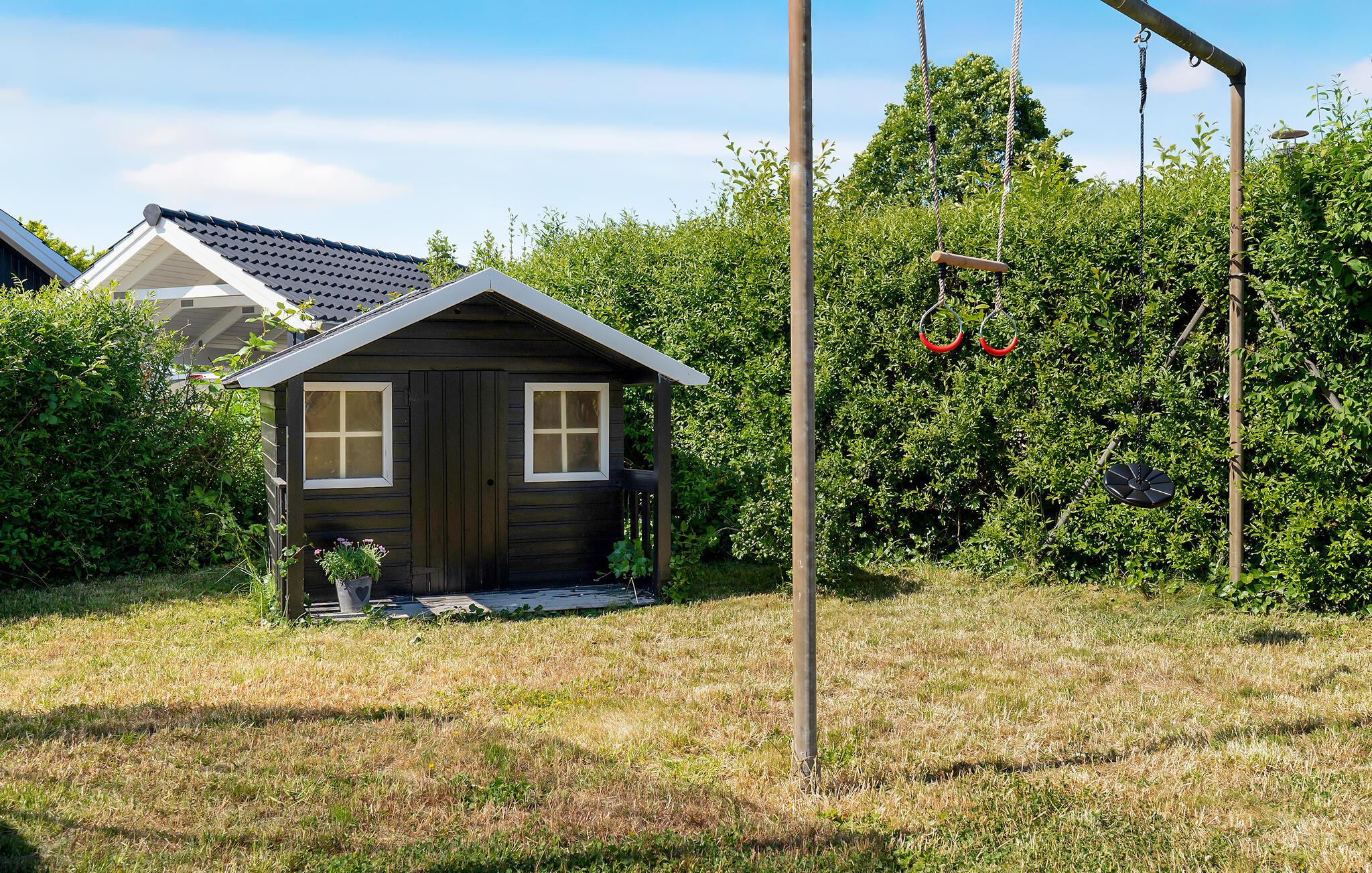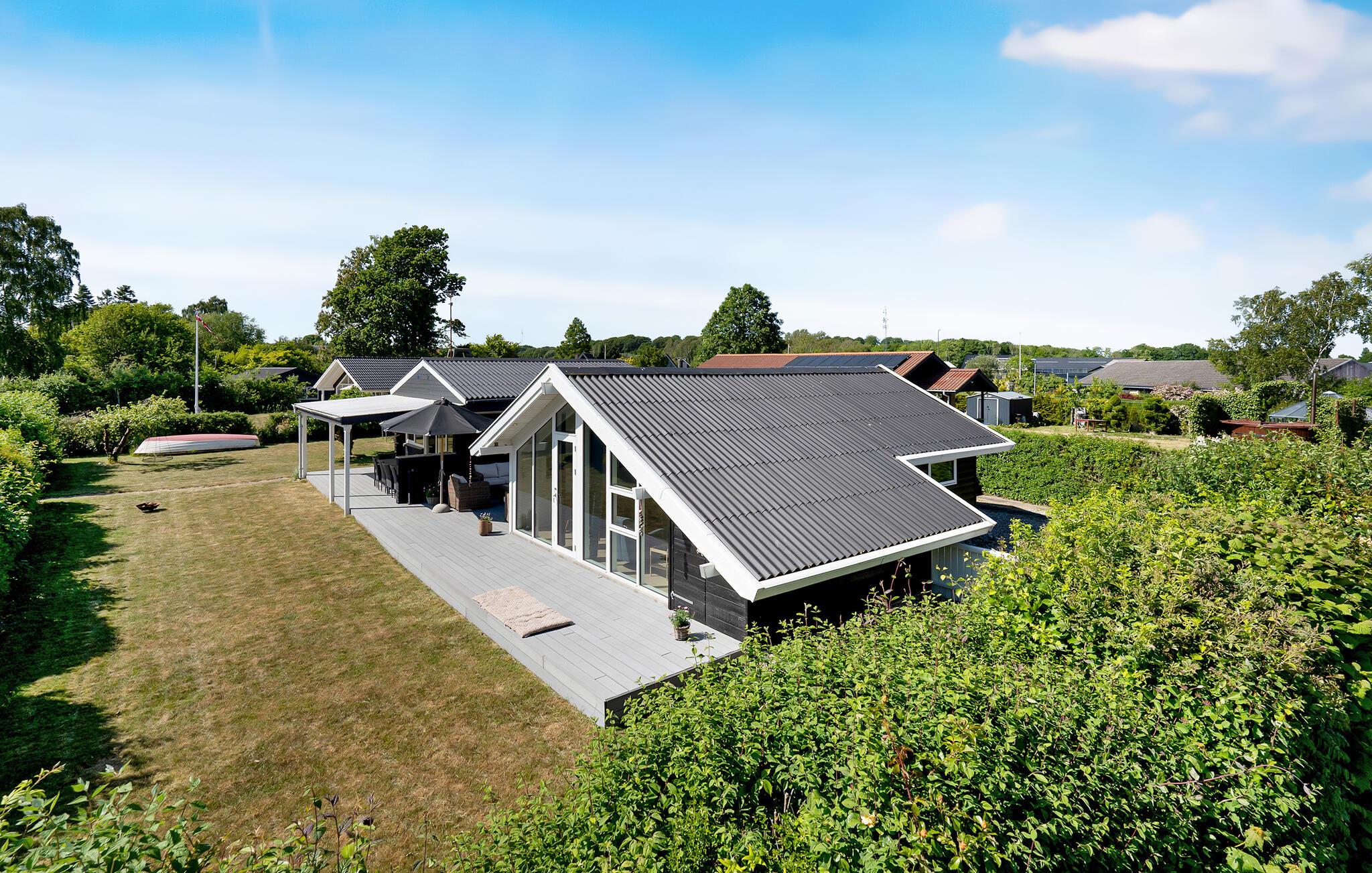 Genießen Sie ein modernes Ferienhaus nahe dem Strand in Juelsminde mit Garten und Terrasse für entspannte Urlaubstage.