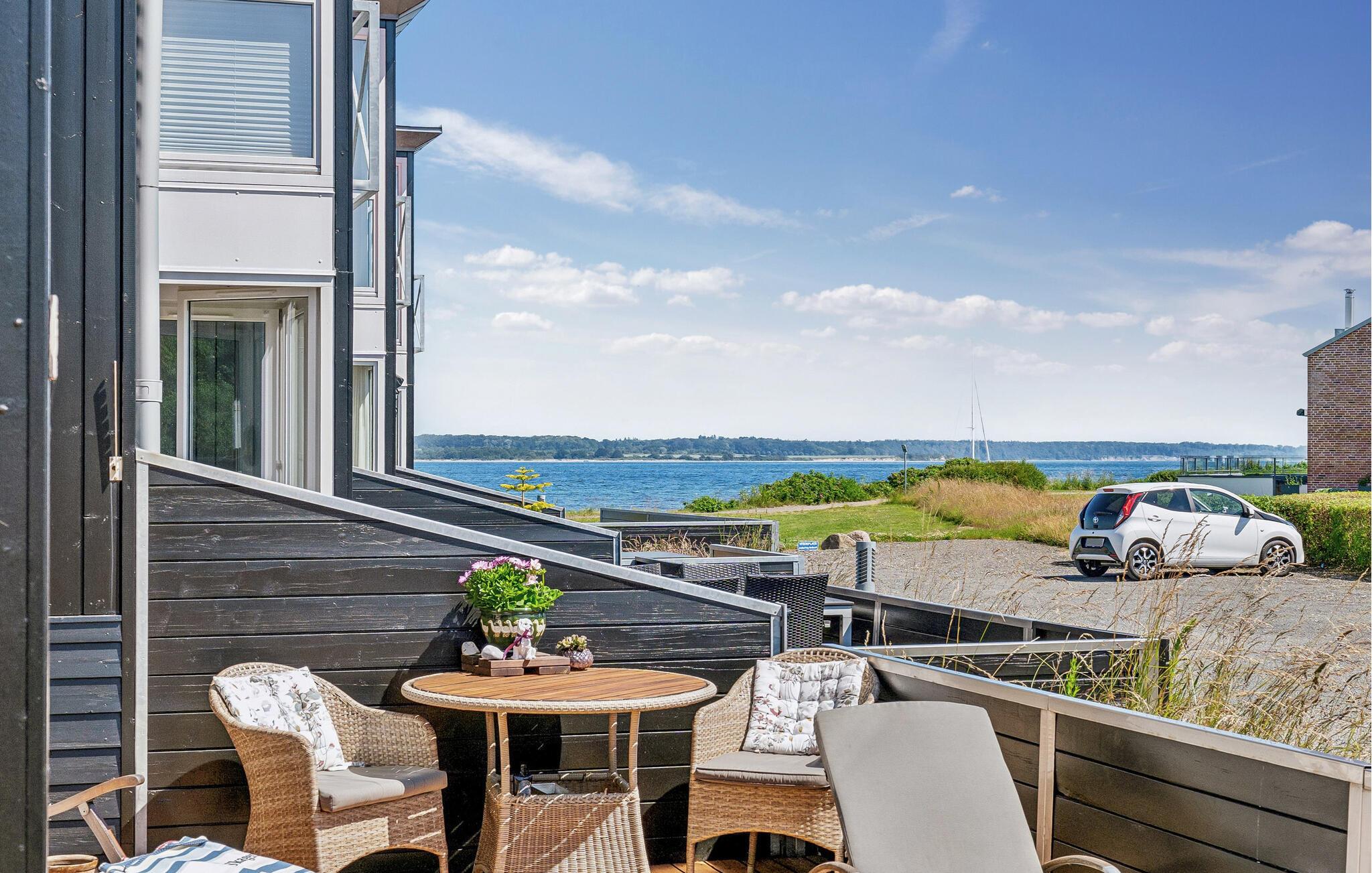 Erleben Sie entspannte Tage in diesem einladenden Holzhaus mit Meerblick, Terrasse und eigenem Whirlpool an der dänischen Küste.