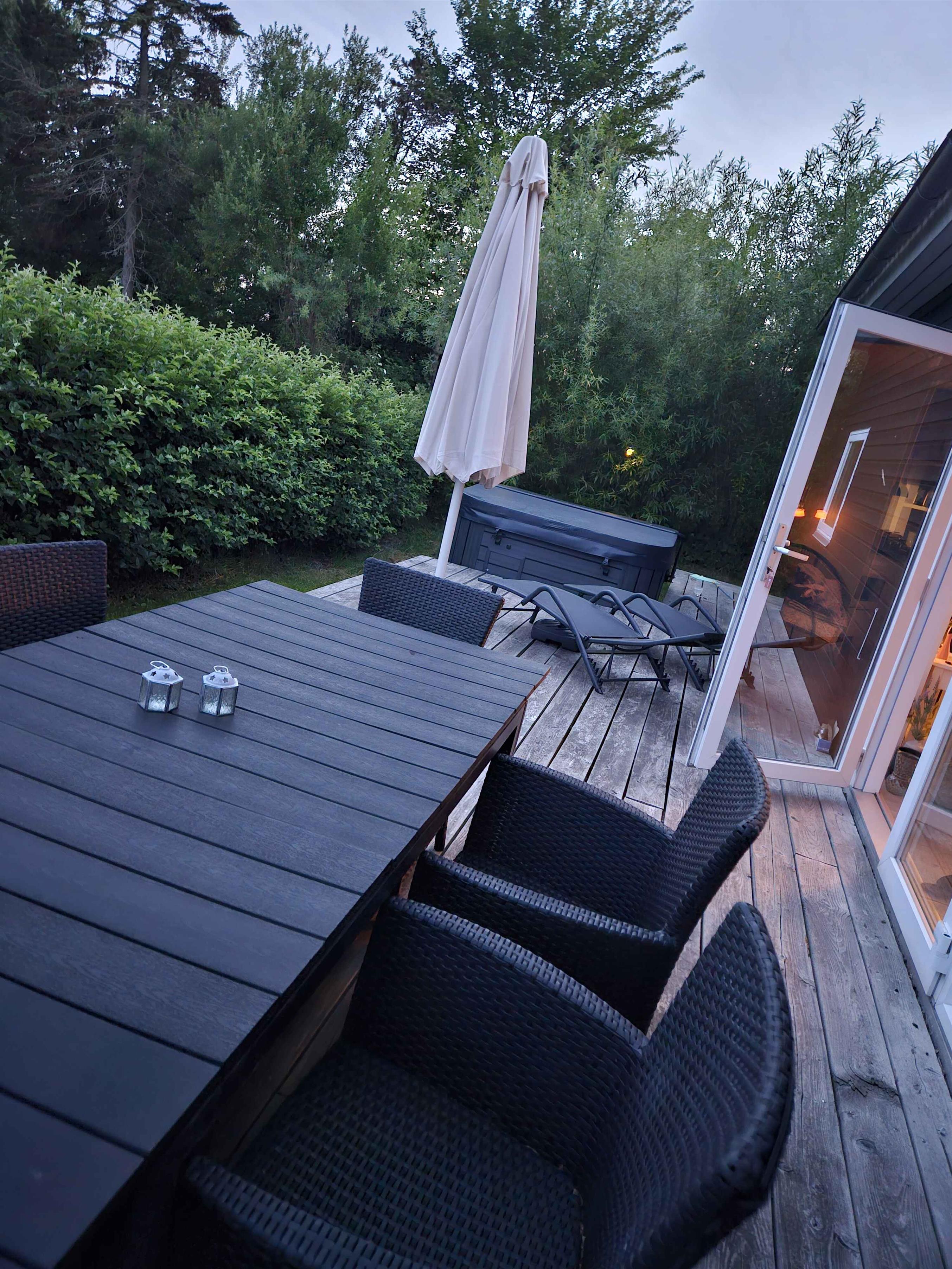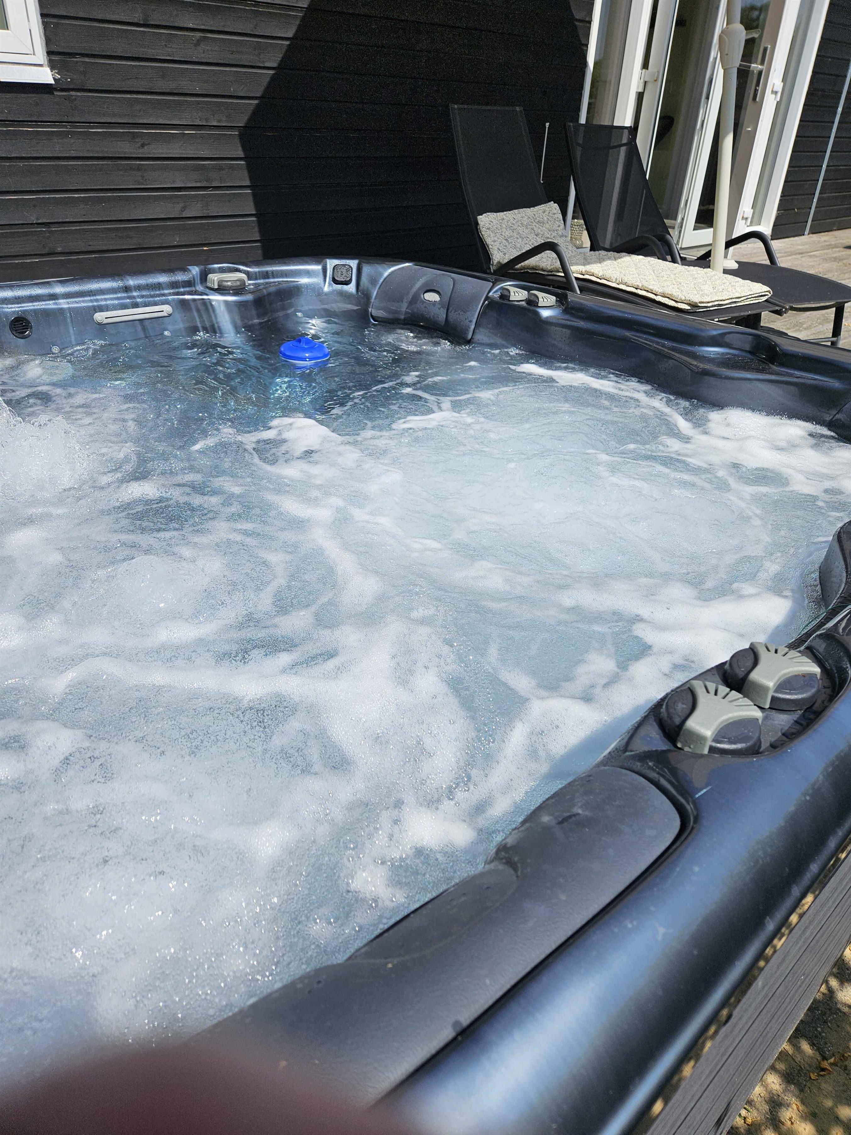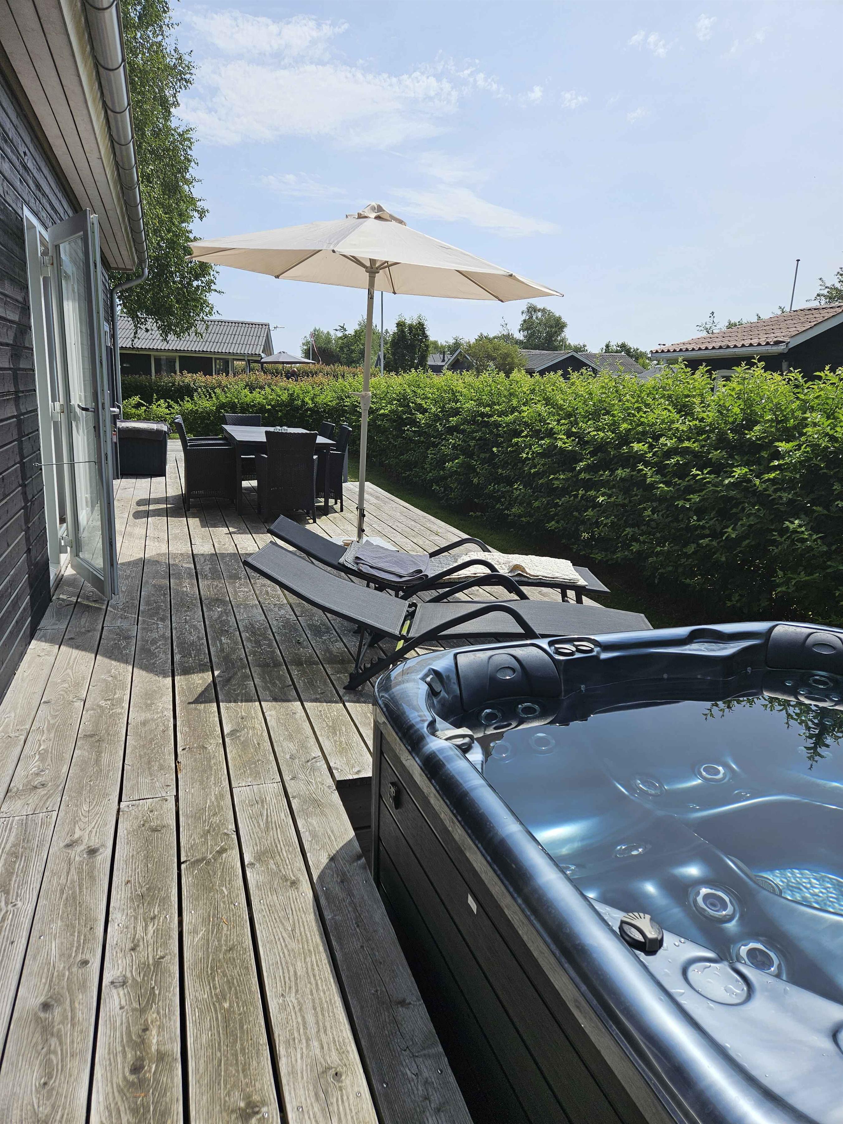 Modernes Ferienhaus mit Außenwhirlpool nahe Juelsminde und Strand für erholsame Tage in Dänemark.