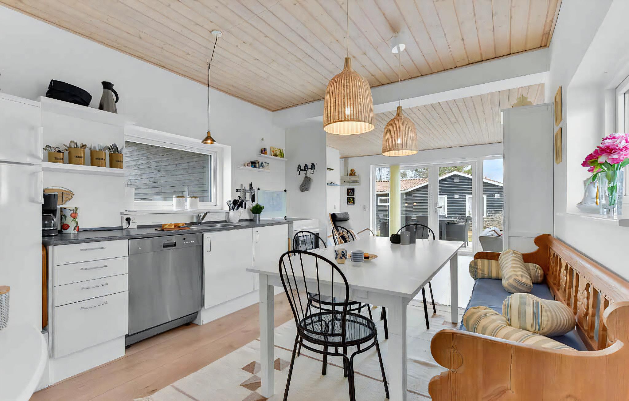 Helles, schönes Ferienhaus mit viel Platz für 4 + 2 Personen, in der Nähe eines schönen Strandes und mit aussen Whirlpool. Juelsminde, ein gemütlicher Hafenort, liegt nur 10 Autominuten entfernt und bietet Geschäfte, Restaurants und mehr. Das Ferienhaus bietet ein schönes, helles Wohnzimmer, das offen mit der Küche und einem gemütlichen Essbereich verbunden ist. Vom Wohnzimmer aus haben Sie Zugang zur großen Terrasse, die rund ums Haus verläuft und sowohl Sonne als auch Schatten bietet. Das Haus verfügt auch über einen praktischen Hauswirtschaftsraum mit Waschmaschine und Trockner. Insgesamt 3 schöne Schlafzimmer. Achtung: Wird nicht für gewerbliche Nutzung vermietet.