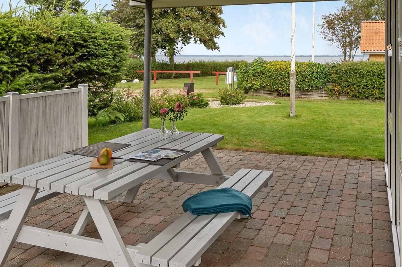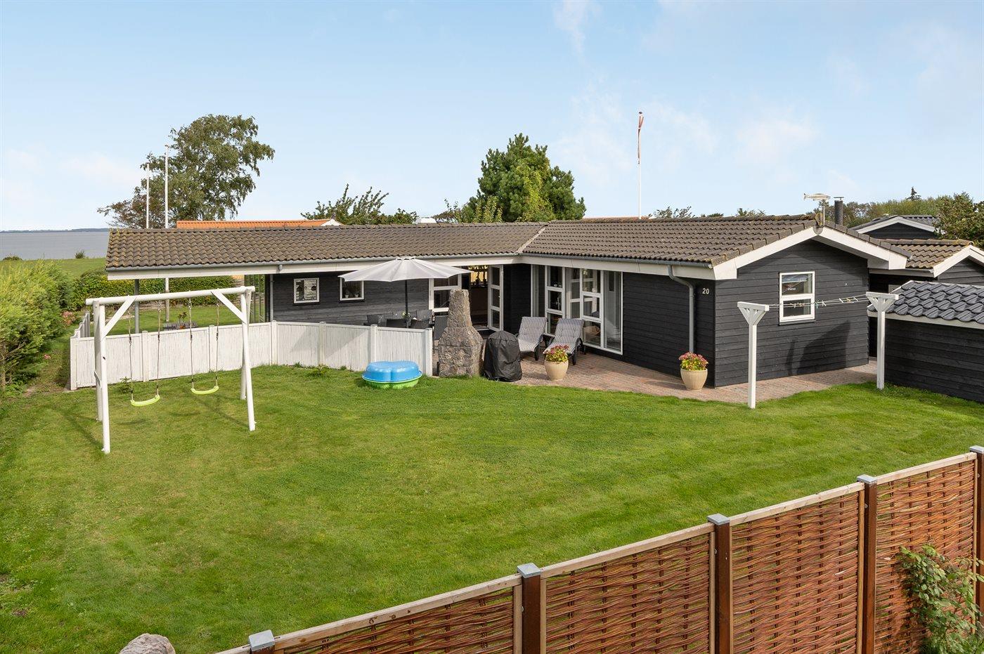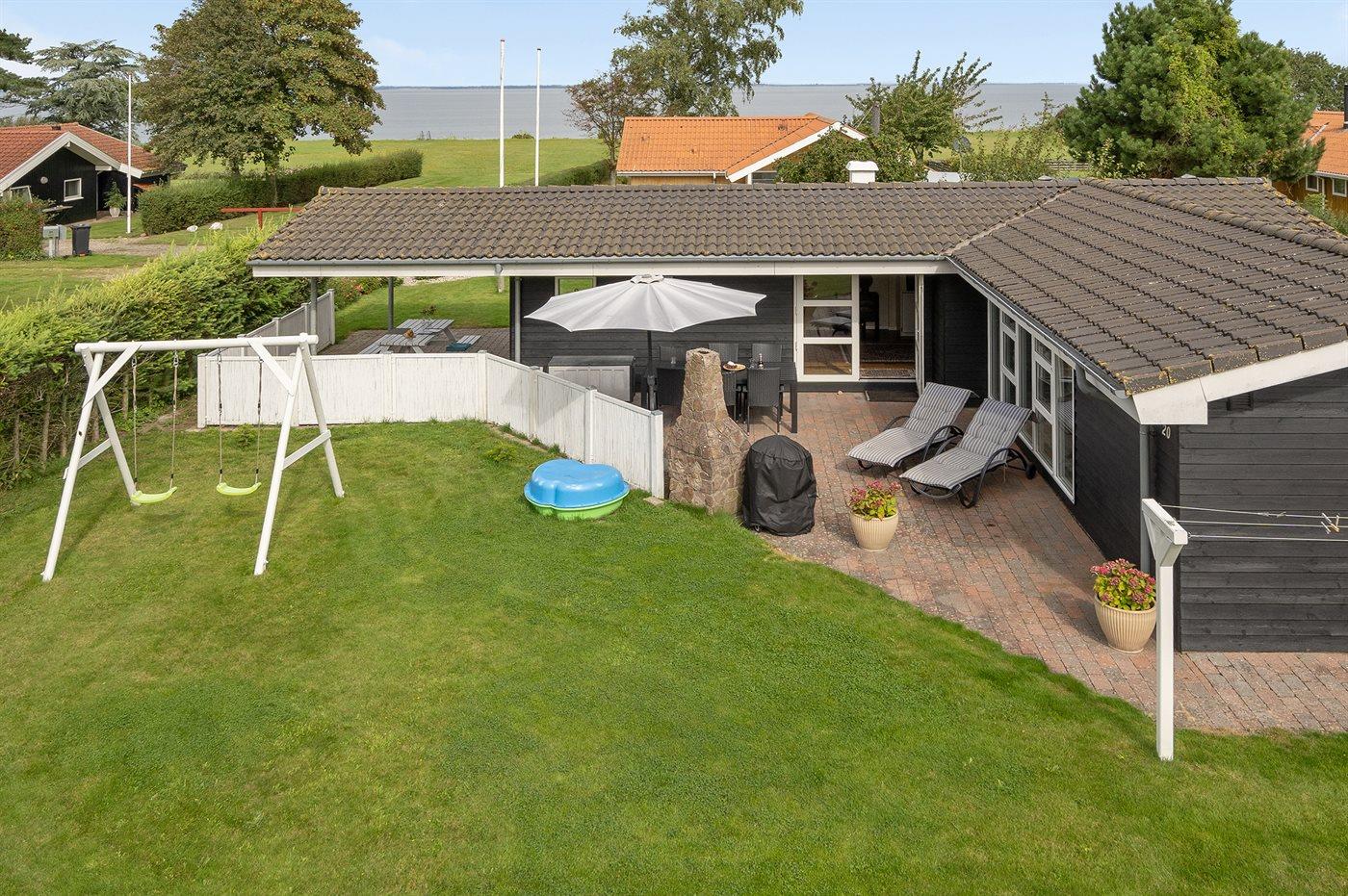 Charmantes Ferienhaus mit Meerblick, nur 150 m vom Wasser entfernt, bietet Komfort und Natur auf 531 m² Grundstück.
