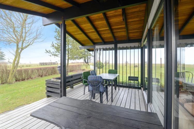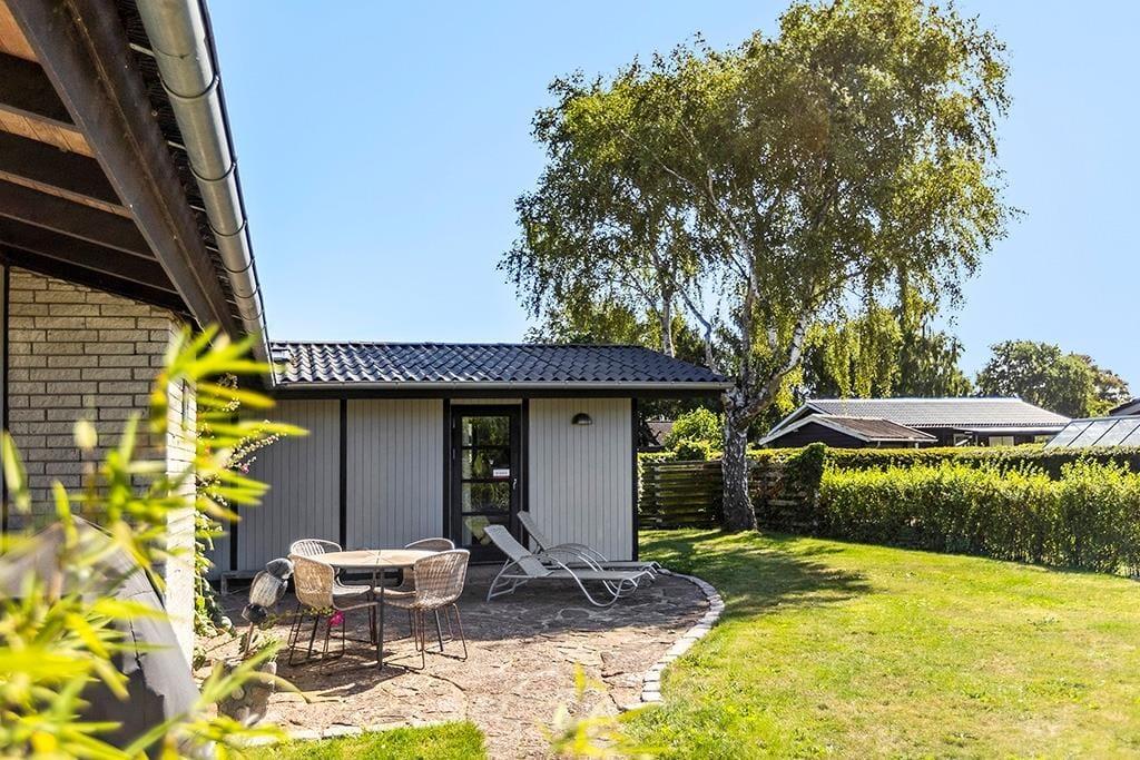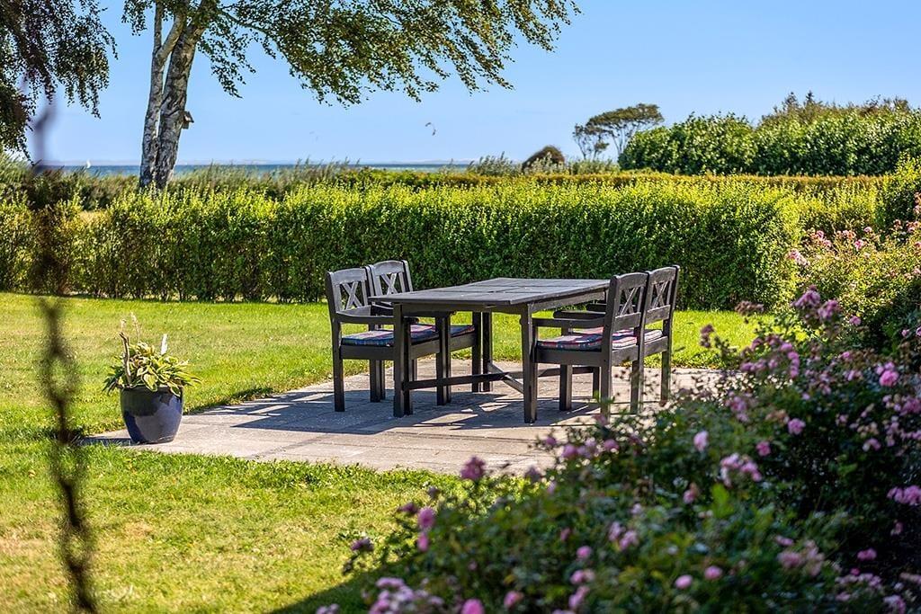 Auf der offenen, überdachten Terrasse laden Schatten und Windschutz zu erholsamen Momenten im Freien ein. Auf der Terrasse genießen Sie einen schönen Ausblick. Das große Grundstück besticht mit einem direkten Zugang zum Kleinen Belt. Nach einem erfrischenden Bad in den wogenden Wellen spült Ihnen die Außendusche mit warmem und kaltem Wasser den Sand und das Salz des Meeres von der Haut.
