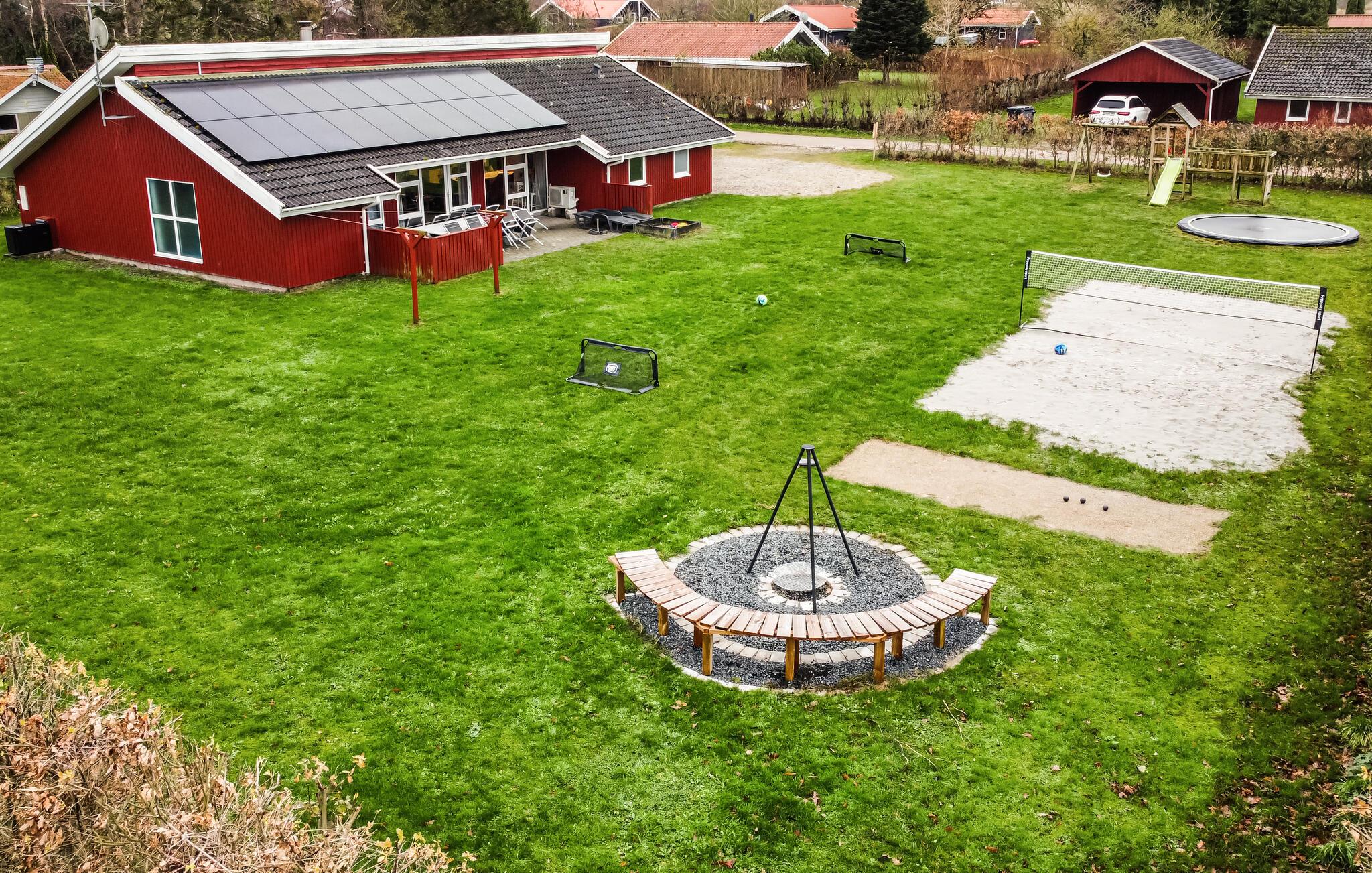 Dieses praktische Ferienhaus liegt auf einem großen Naturgrundstück mit viel Platz für Aktivitäten. Sehen Sie den Kindern beim Fußballspielen zu, verausgaben Sie sich beim Volleyball oder Badminton und versammeln Sie später die ganze Familie um ein gemütliches Lagerfeuer. Die Küche liegt in offener Verbindung mit dem Wohnraum und von diesem aus können Sie das Geschehen in der Poolabteilung mit Whirlpool verfolgen. Die bezaubernde Insel Als bietet Ihnen eine unberührte Natur mit vielen kinderfreundlichen Badestränden und großen Waldgebieten. Sie ist ein wahres Anglerparadies - hier braucht man nicht lange nach guten Angelplätzen zu suchen. Auch liegen viele Sehenswürdigkeiten wie das Schloss Nordborg, oder das Danfoss Univers Museum in kürzester Entfernung. Einen Bummel in der gemütlichen Stadt Sønderborg mit vielen spannenden Geschäften sollten Sie nicht versäumen.