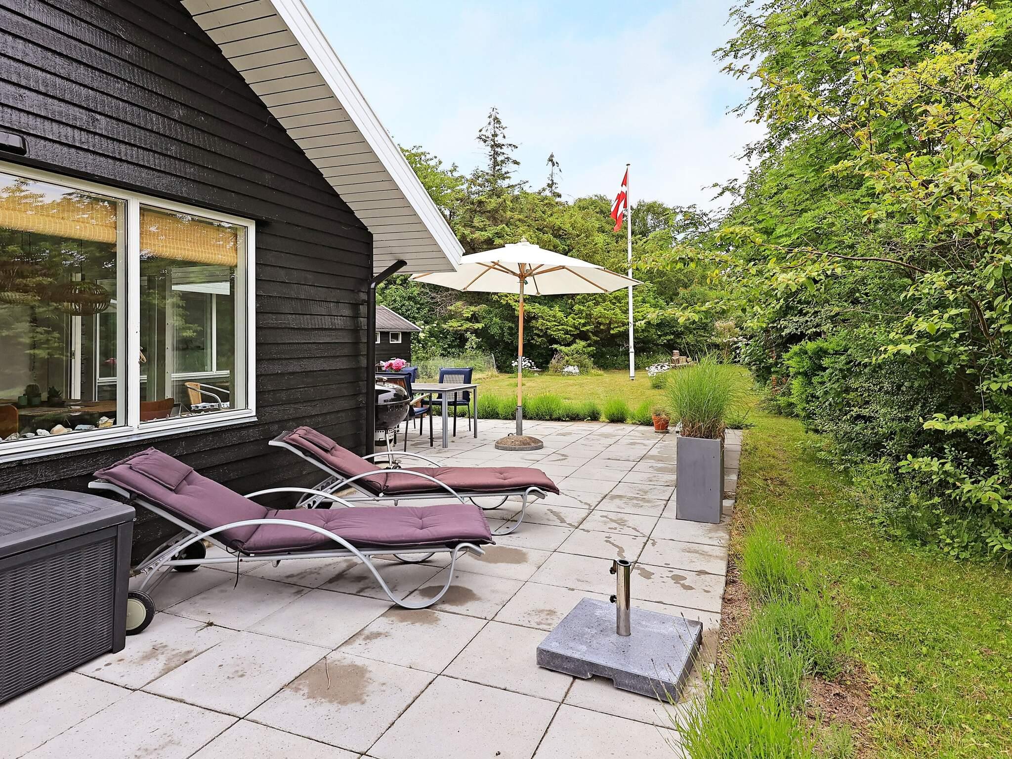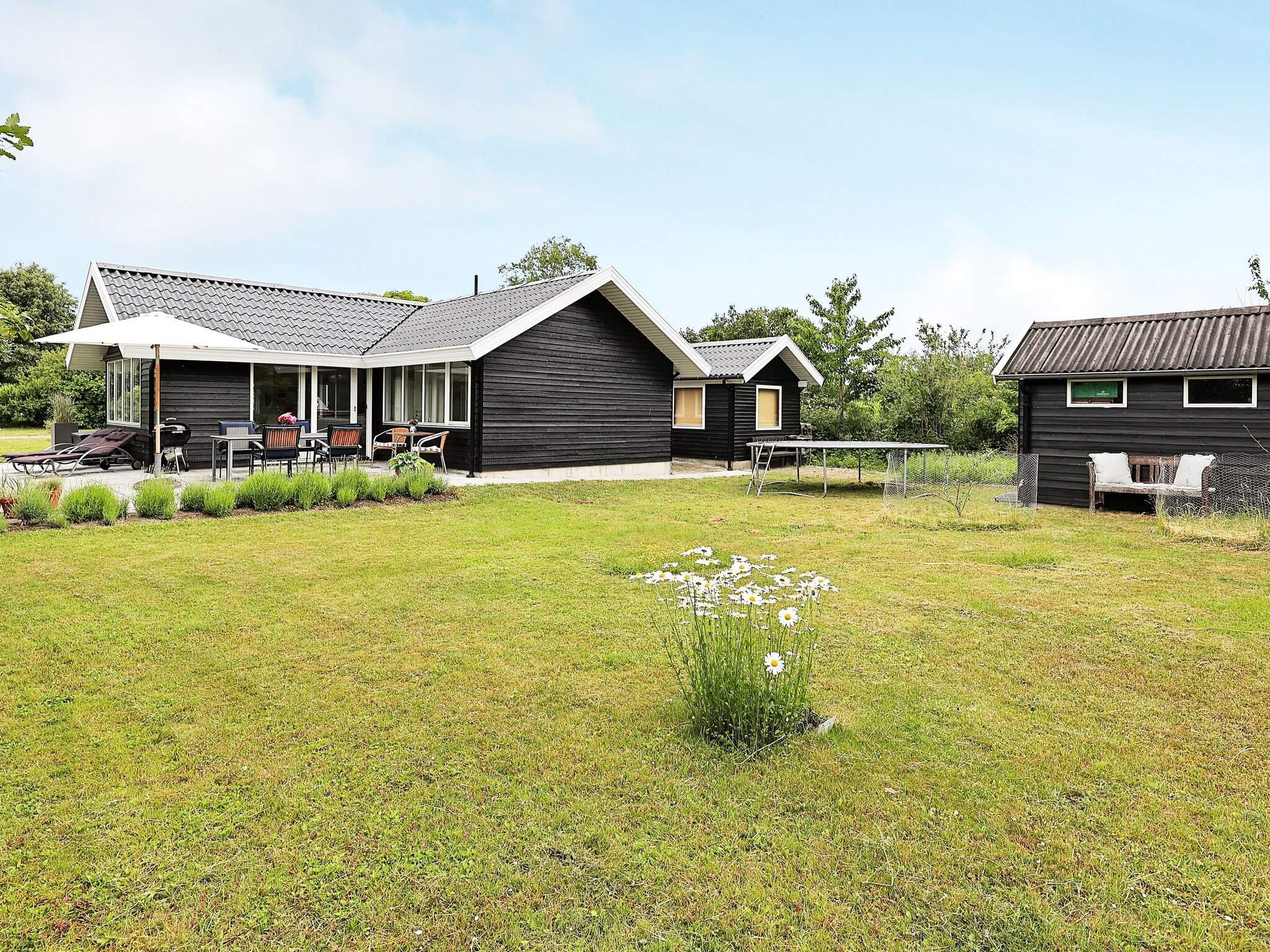 Auf der lauschigen Terrassenfläche gibt es reichlich Gelegenheit zum Grillen und Entspannen. Auf der Rasenfläche davor steht für die Kinder ein Gartentrampolin bereit (Nutzung nur auf eigenes Risiko). Das Ferienhaus liegt attraktiv, nur etwa 150 m von der Küste mit Badesteg und ca. 2 km von Einkauf und Restaurant.