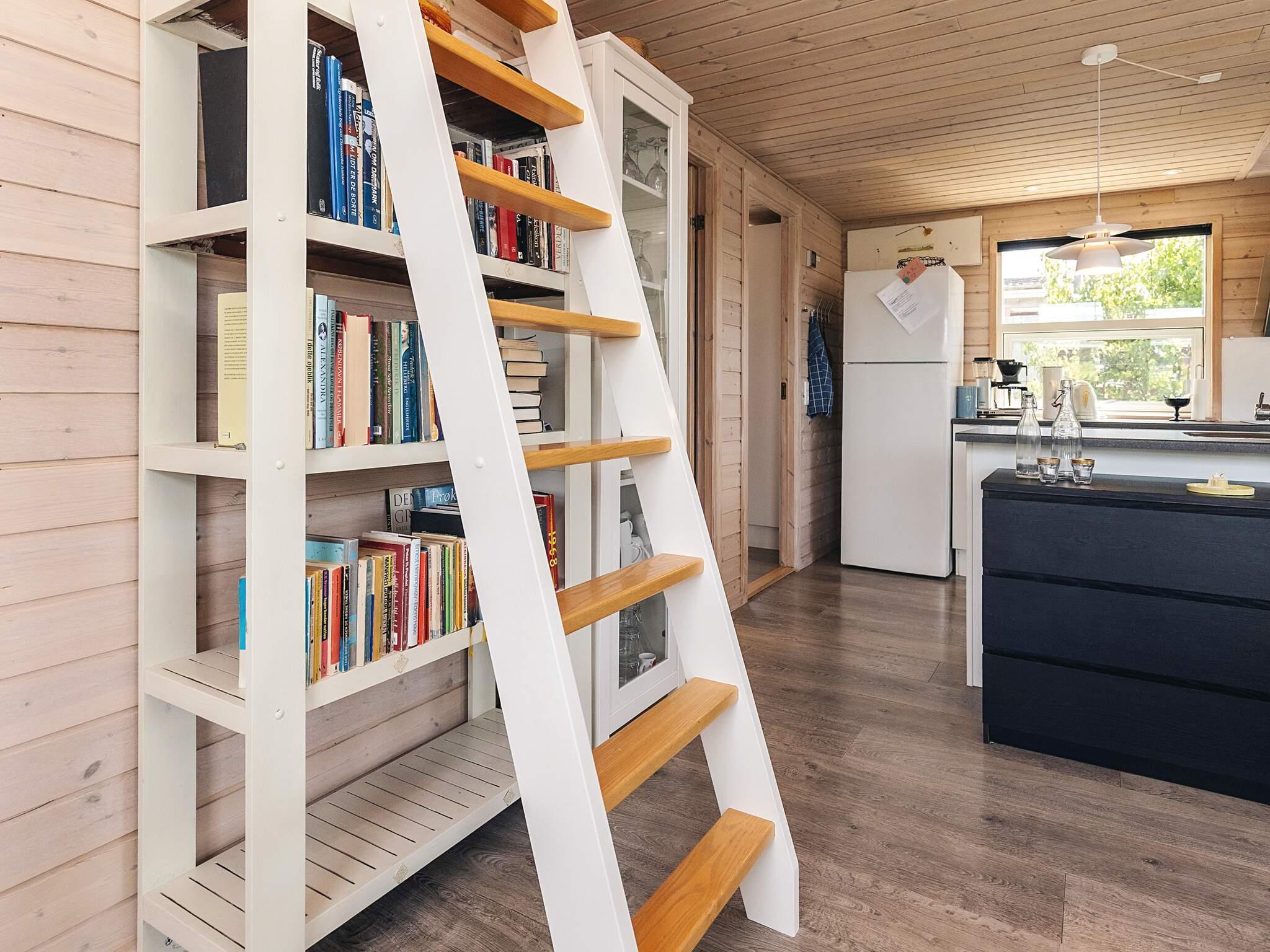 Der Eingangsbereich dient als Schlafzimmer mit einem bequemen Doppelbett (140 x 200 cm). Im Obergeschoss bietet ein geräumiger Dachboden mit voller Stehhöhe zwei Doppelschlafplätze mit 140 x 200 cm großen Matratzen – ideal für Kinder oder zusätzliche Gäste. Ein weiteres Schlafzimmer verfügt über Etagenbetten (70 x 160 cm und 90 x 180 cm), ideal für kleinere Kinder. Das Haus verfügt über ein helles, modernes Badezimmer mit Dusche, WC, Waschmaschine und Trockner für einen angenehmen Aufenthalt.