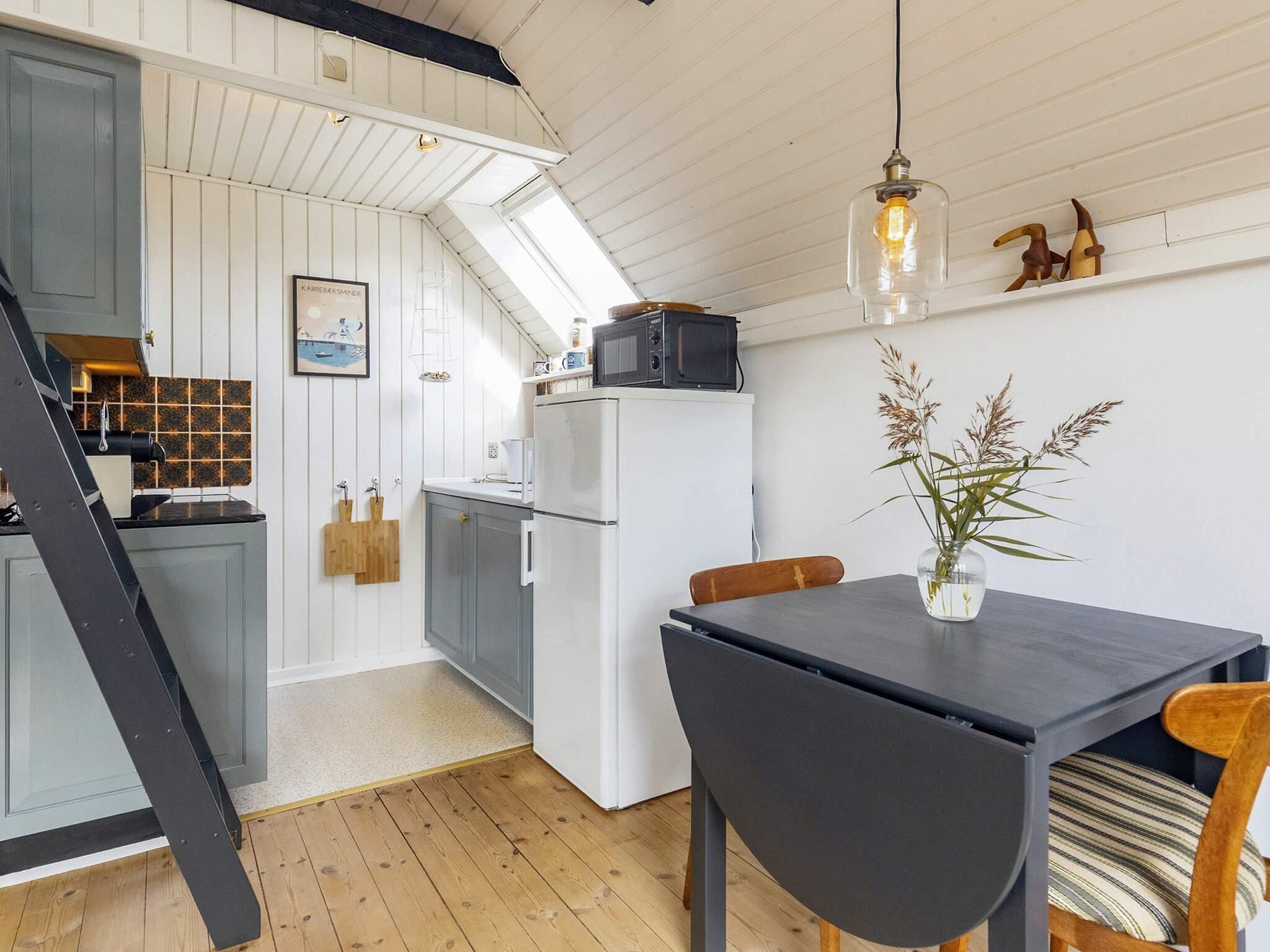 Dieses charmante Ferienhaus liegt auf der kleinen Insel Enø, unweit von Karrebæksminde und dem Karrebæk-Fjord. Die offene Küche und der Wohnbereich bilden einen hellen, einladenden Raum, der sich ideal zum gemeinsamen Kochen, Essen und Entspannen eignet. Vom Wohnzimmer aus gelangen Sie direkt auf die überdachte Terrasse, die sich ideal zum Frühstücken oder für ruhige Momente im Freien eignet. Das Haus verfügt über zwei Schlafzimmer: eines mit einem Doppelbett und das andere mit zwei Etagenbetten im Loft-Stil. Das Badezimmer ist funktional und verfügt über eine Dusche und ein WC.