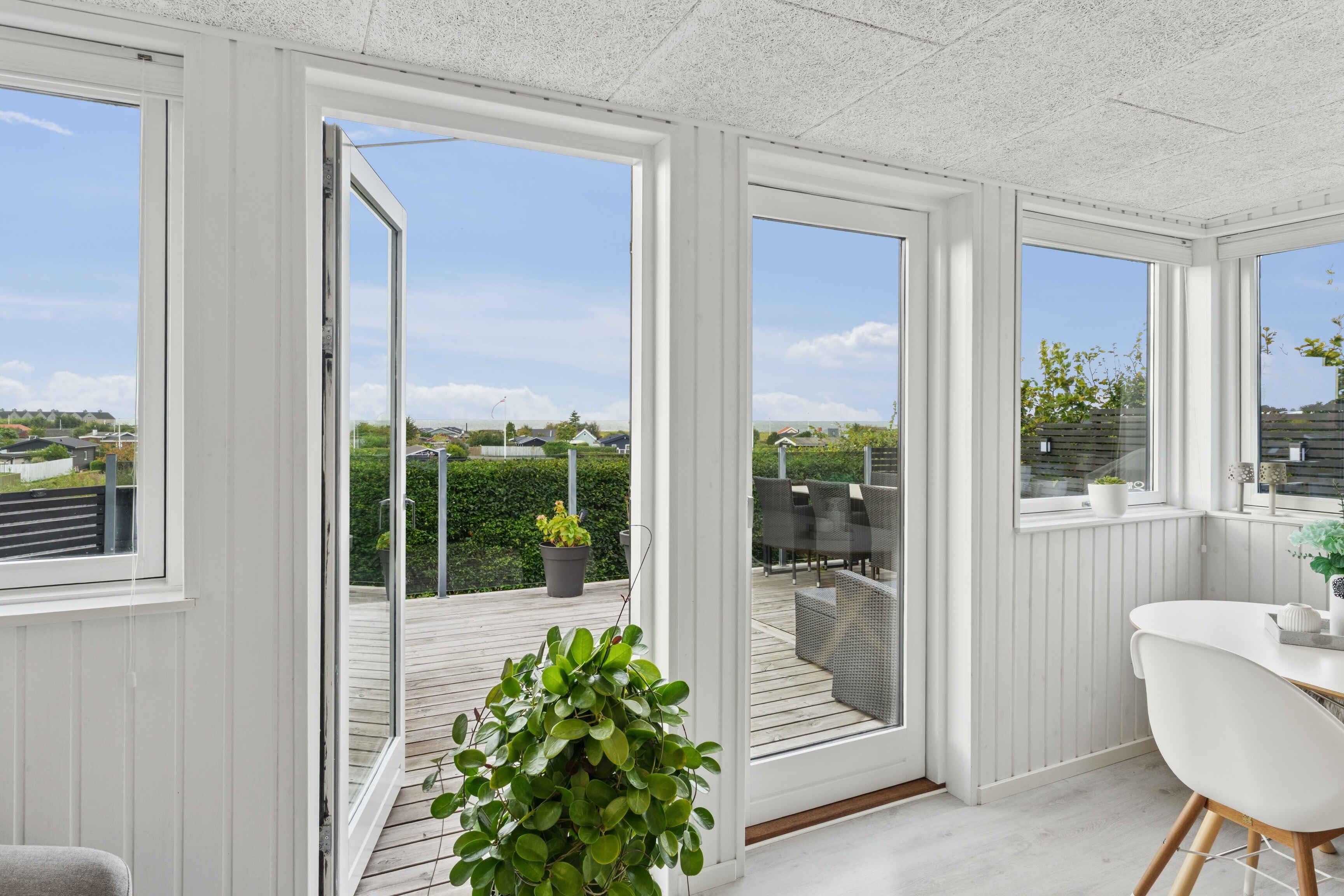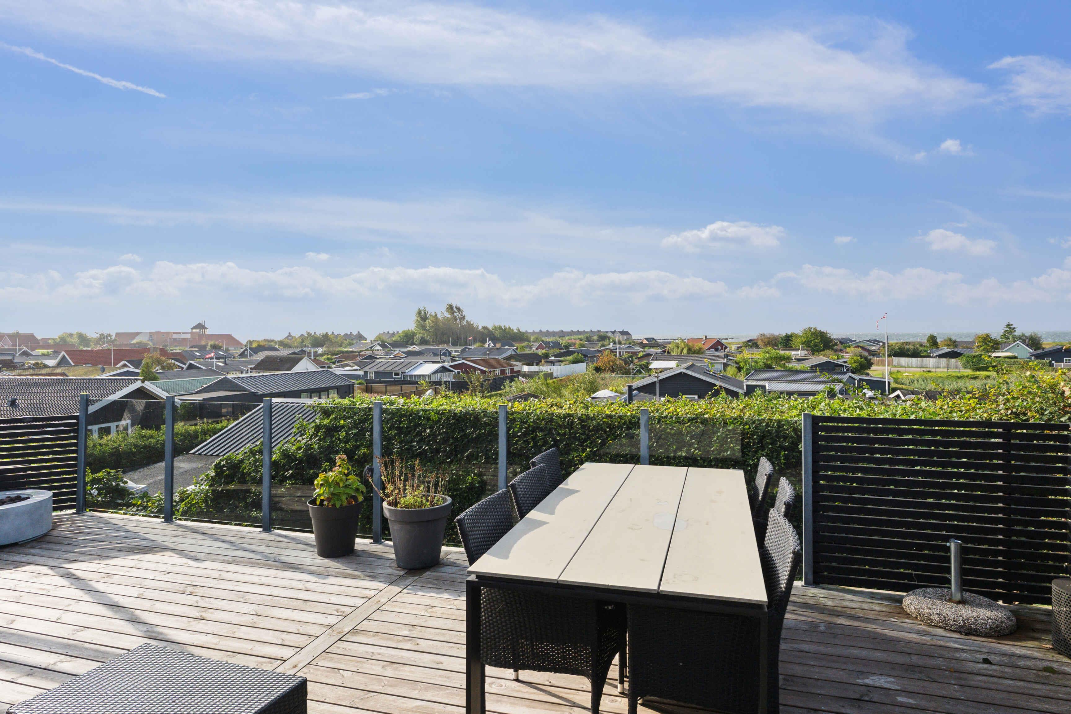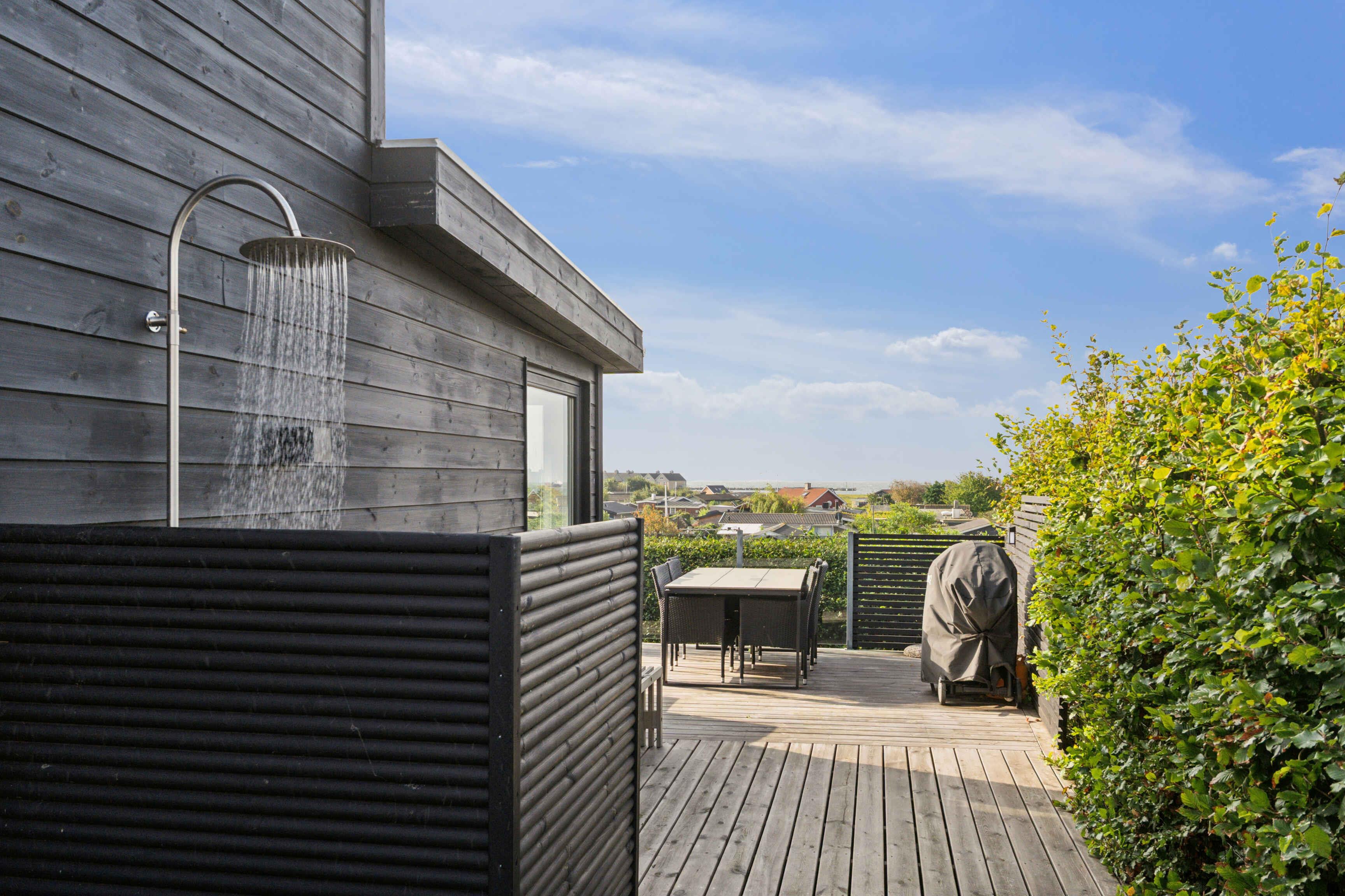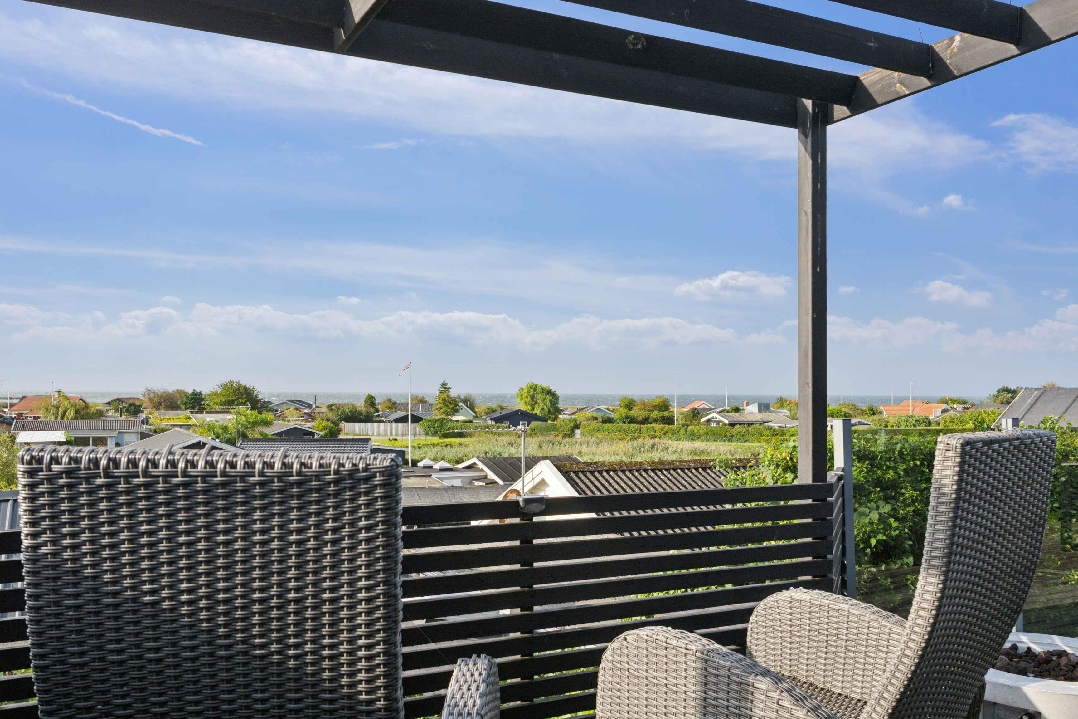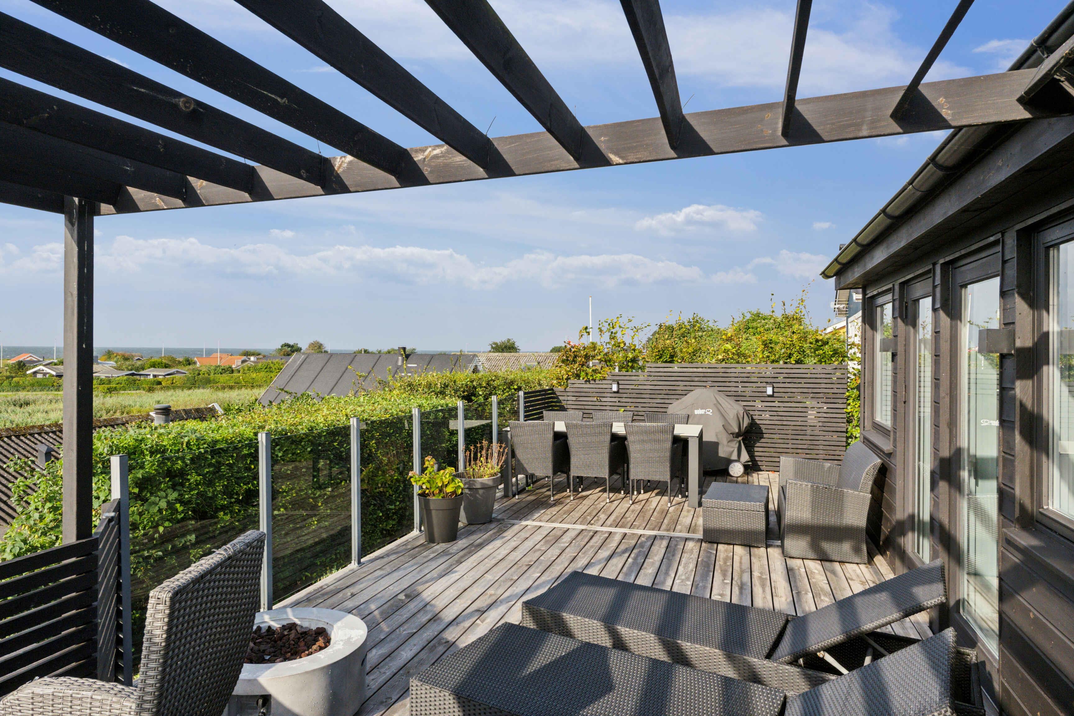 Helles Ferienhaus mit Meerblick, Wärmepumpe, Internet, Außendusche und einer fantastischen Terrasse mit Blick aufs Wasser.
