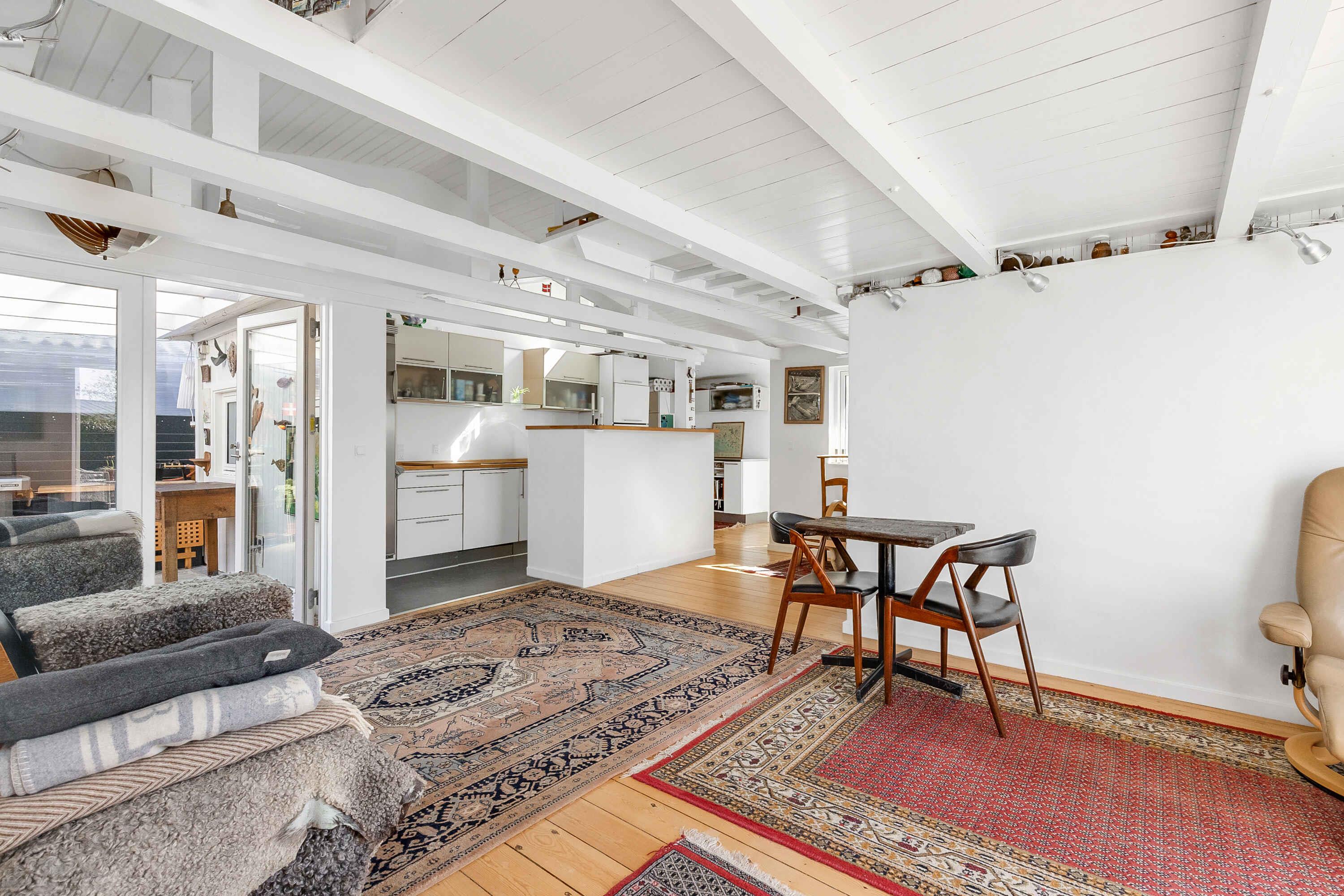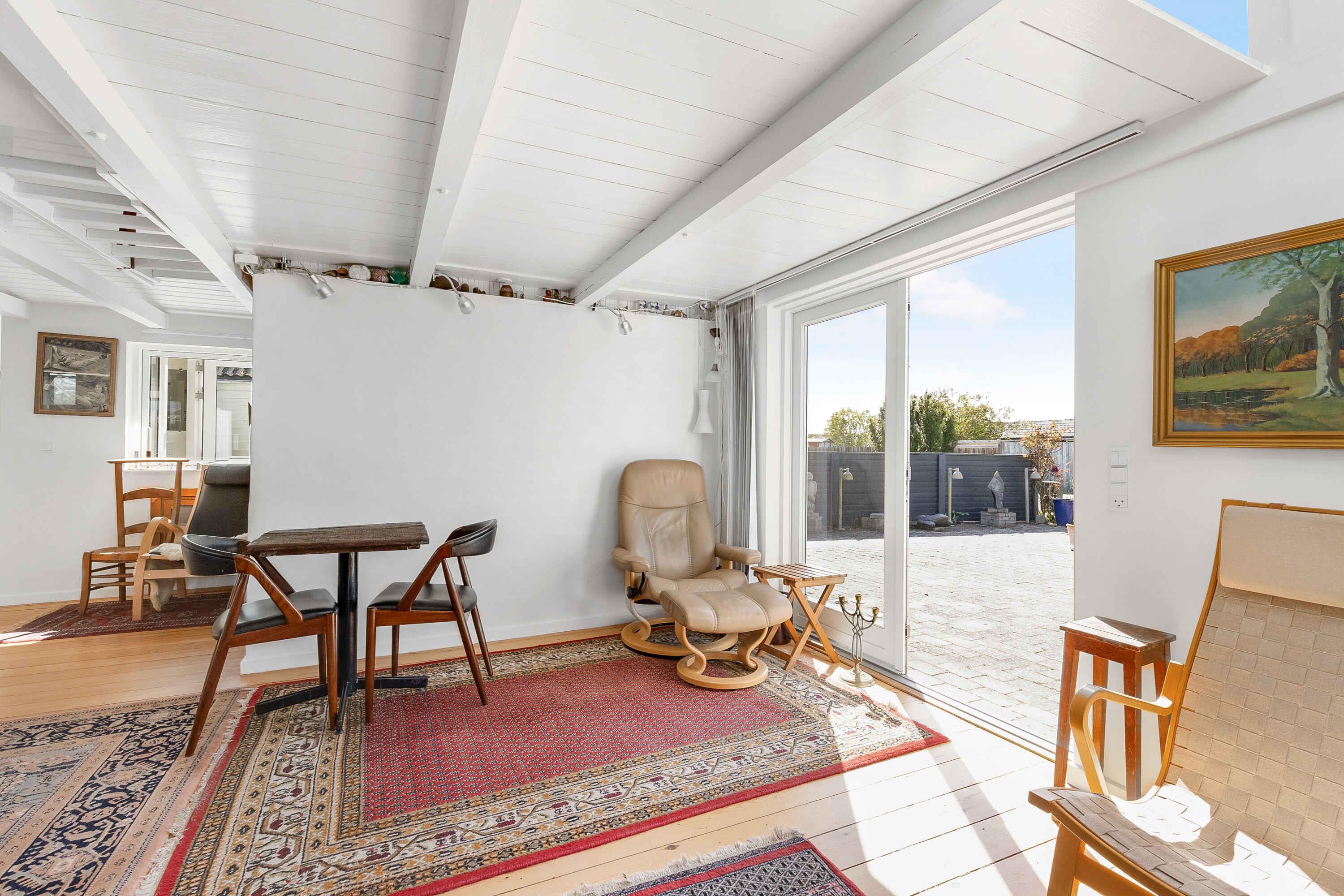 Dieses Ferienhaus ist schön und gemütlich. Wenn Sie im Haus ankommen, werden Sie von Kunst und Skulpturen begrüßt - es gibt insgesamt 25 Steinkunstwerke. Als nächstes fällt auf, dass das Haus auf einem Eckgrundstück mit Blick auf einen kleinen See und mit Blick auf eine ruhige Straße mit lebhaftem Verkehr von Badegästen entweder auf dem Weg zum Strand oder von dort nach Hause steht. Das Haus ist hell und freundlich, es gibt gemütliche Ecken und Liegestühle, eine geschlossene und private Terrasse sowie eine Innen- und Außenküche. Das Haus ist mit zwei Schlafzimmern mit je einem Doppelbett ausgestattet. Zusätzlich gibt es einen 5. Schlafplatz auf der Schlafsofa im Wohnzimmer. Eine Gesamtkapazität von 5 Personen. Die Innenküche ist mit modernen Elektrogeräten und Geräten für das tägliche Kochen ausgestattet. Die Outdoor-Küche ist ein Grill, wo man schnell und einfach gesunde Mahlzeiten zubereiten kann. Das Badezimmer ist neu renoviert und verfügt über einen 60-Liter-Warmwasserspeicher, damit Ihnen das heiße Wasser nicht ausgeht. Die Wärmequellen sind ein Holzofen und ein Heizlüfter, die einfach einzustellen sind. Die private Terrasse ist teilweise überdacht und kann bei kaltem Wetter komplett geschlossen werden. Der Strand ist 300 Meter vom Haus entfernt - weißer und kinderfreundlicher Strand mit einem kleinen Steg. Die Tiefe nimmt nur sehr langsam zu, sodass der Strand kinderfreundlich ist. Es gibt viel Platz und der Strand erstreckt sich über einen Kilometer. Zum nächsten Lebensmittelgeschäft mit allen Warengruppen des täglichen Bedarfs sind es 500 Meter. Auf Enø gibt es einen Bäcker, einen Metzger und 3 Fischhändler. Es gibt Steet food, die im Laufe der Saison variieren können. Zwischen Karrebæksminde und Enø gibt es eine Brücke - die Brücke heißt Græshoppebroen. Zwischen Næstved und Enø gibt es ein Linienboot „Friheden“ – eine absolut wunderbare Fahrt auf dem Susåkanal. Neben der Linienschifffahrt passieren täglich mehrere Frachtschiffe die Brücke. Es ist sehr schön. Es gibt 4 große Jachthäfen, in denen während der gesamten Saison viel Leben und Aktivität herrscht. Achtung: Wird nicht für gewerbliche Nutzung vermietet.