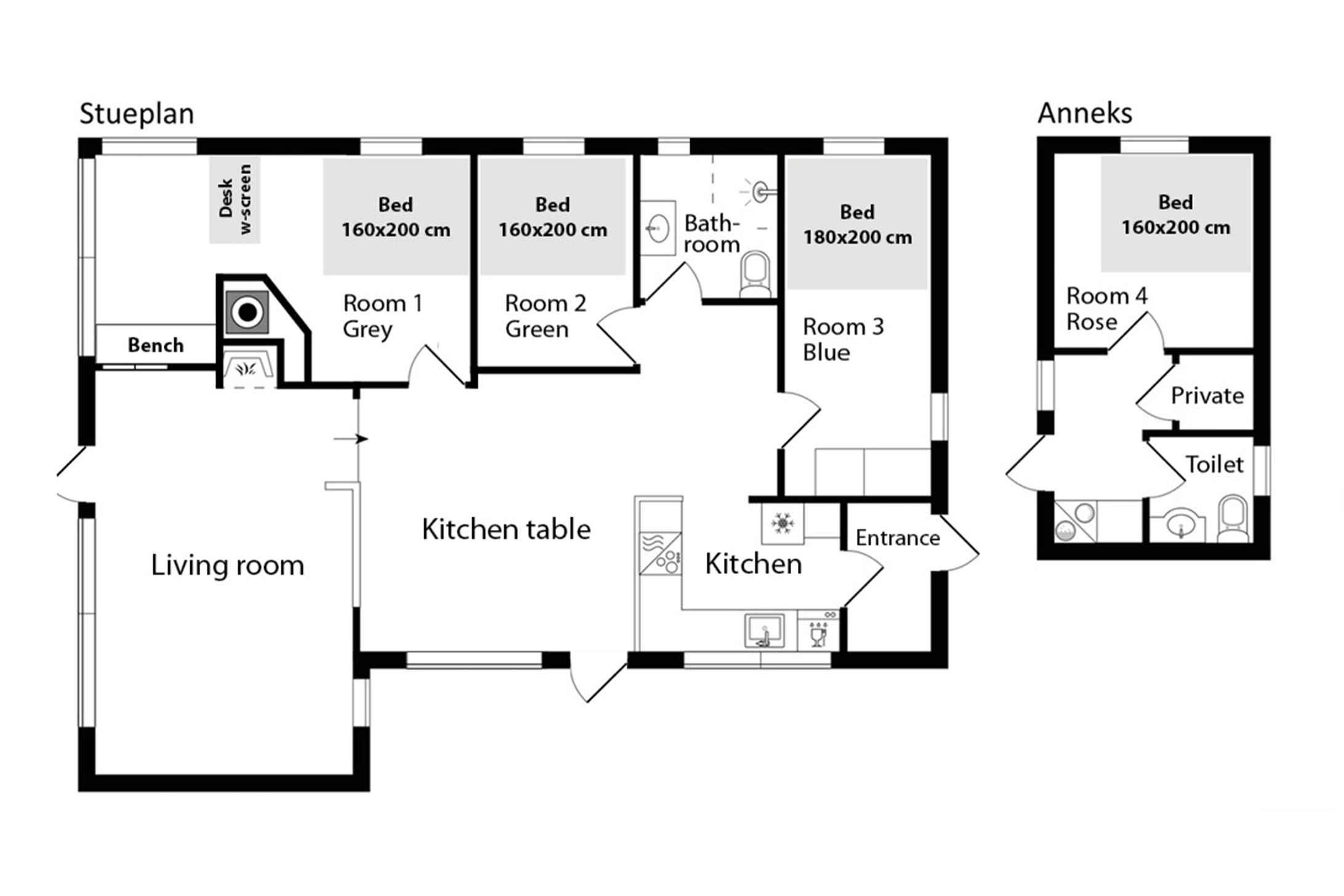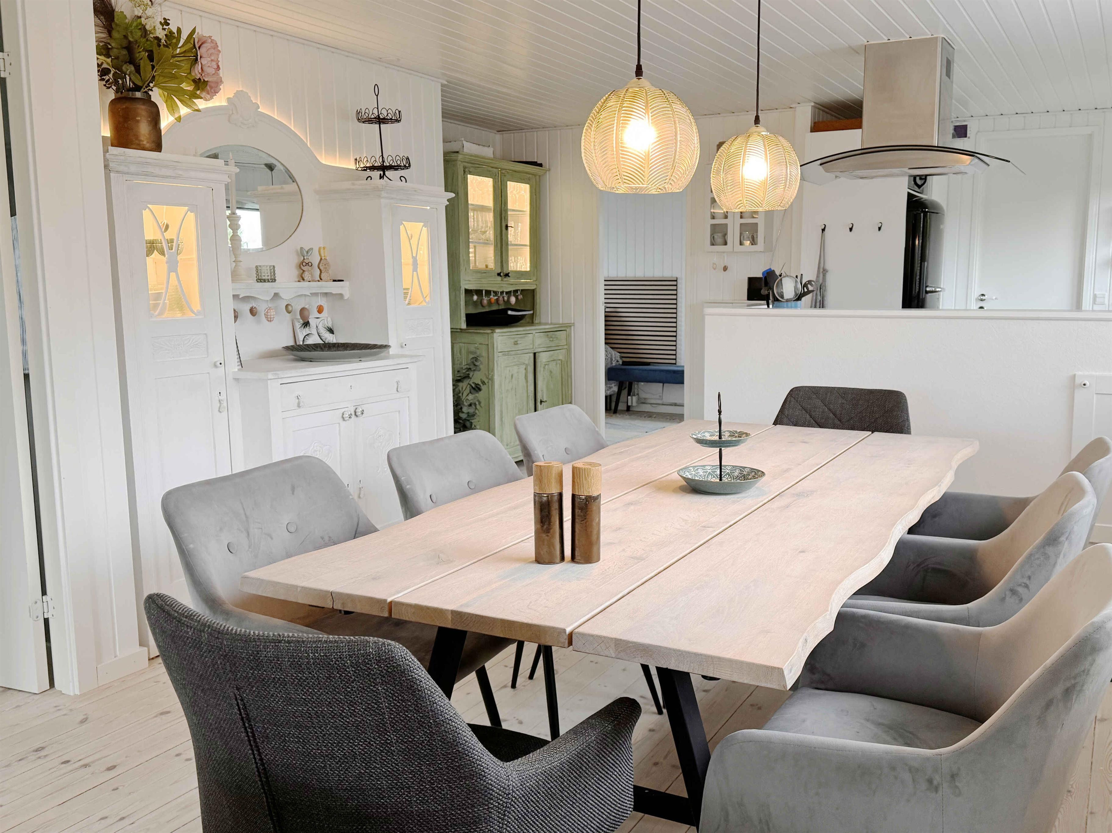 Dieses charmante Sommerhaus ist im hellen und freundlichen Stil eines Badehotels eingerichtet und befindet sich in einer ruhigen Gegend mit wenigen Nachbarn und direktem Zugang zu großen Grünflächen. Das Haus bietet Platz für 8 Personen mit vier Schlafplätzen: einem Doppelbett von 180x200 cm und drei Doppelbetten von 160x200 cm, verteilt auf drei Zimmer im Haupthaus und einem Zimmer im Anbau, der auch über eine eigene Toilette verfügt. Das Sommerhaus ist mit einer praktischen Waschsäule mit Wärmepumpentrockner und einem Badezimmer mit WC und Dusche ausgestattet. Im Anbau befindet sich ein zusätzliches separates WC. Die moderne Küche-Esszimmer verfügt über alle notwendigen Einrichtungen, darunter ein Induktionskochfeld, Backofen, Dunstabzugshaube, Kühl-Gefrierkombination, Mikrowelle und Geschirrspüler. Das Wohnzimmer ist mit einem Fernseher, einem Kamineinsatz und einer Wärmepumpe ausgestattet, während die anderen Räume neue elektrische Radiatoren haben. Für Familien mit kleinen Kindern stehen ein Kinderbett und ein Hochstuhl zur Verfügung. Außerdem gibt es ein Bügeleisen und ein Bügelbrett, um die Kleidung während des Aufenthalts ordentlich zu halten. Das Sommerhaus verfügt über zwei schöne Terrassen mit Platz für 8-10 Personen und ein Gewächshaus, das im Sommer als gemütliche Orangerie eingerichtet ist. Im Schuppen gibt es auch einen extra großen Kühlschrank mit Gefrierfach. Für diejenigen, die arbeiten müssen, wurde ein Arbeitsplatz mit einem großen externen Bildschirm und Glasfaser eingerichtet, was eine schnelle Internetverbindung gewährleistet. Das Sommerhaus ist auch praktisch mit einer Ladestation für Elektroautos in der Einfahrt, die Platz für bis zu 3 Autos innerhalb des Zauns bietet. Das gesamte Grundstück ist eingezäunt und es ist erlaubt, bis zu zwei Hunde mitzubringen. Bitte beachten Sie: Das Rauchen im Haus ist nicht gestattet und die Reinigung ist obligatorisch. Das Sommerhaus wird nicht an Jugendgruppen unter 25 Jahren vermietet. Achtung: Wird nicht für gewerbliche Nutzung vermietet.