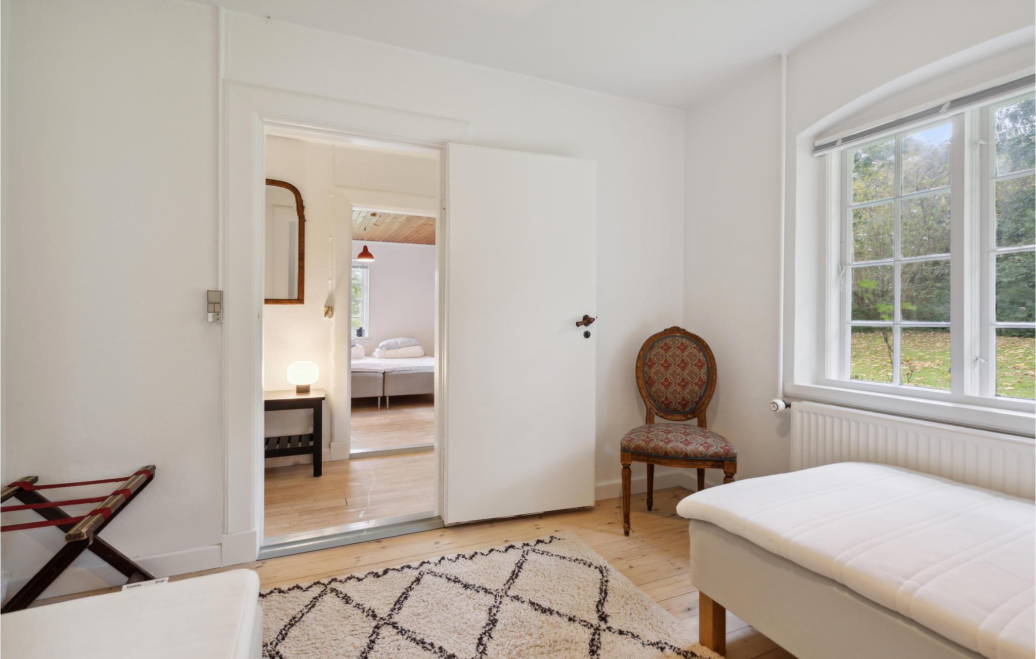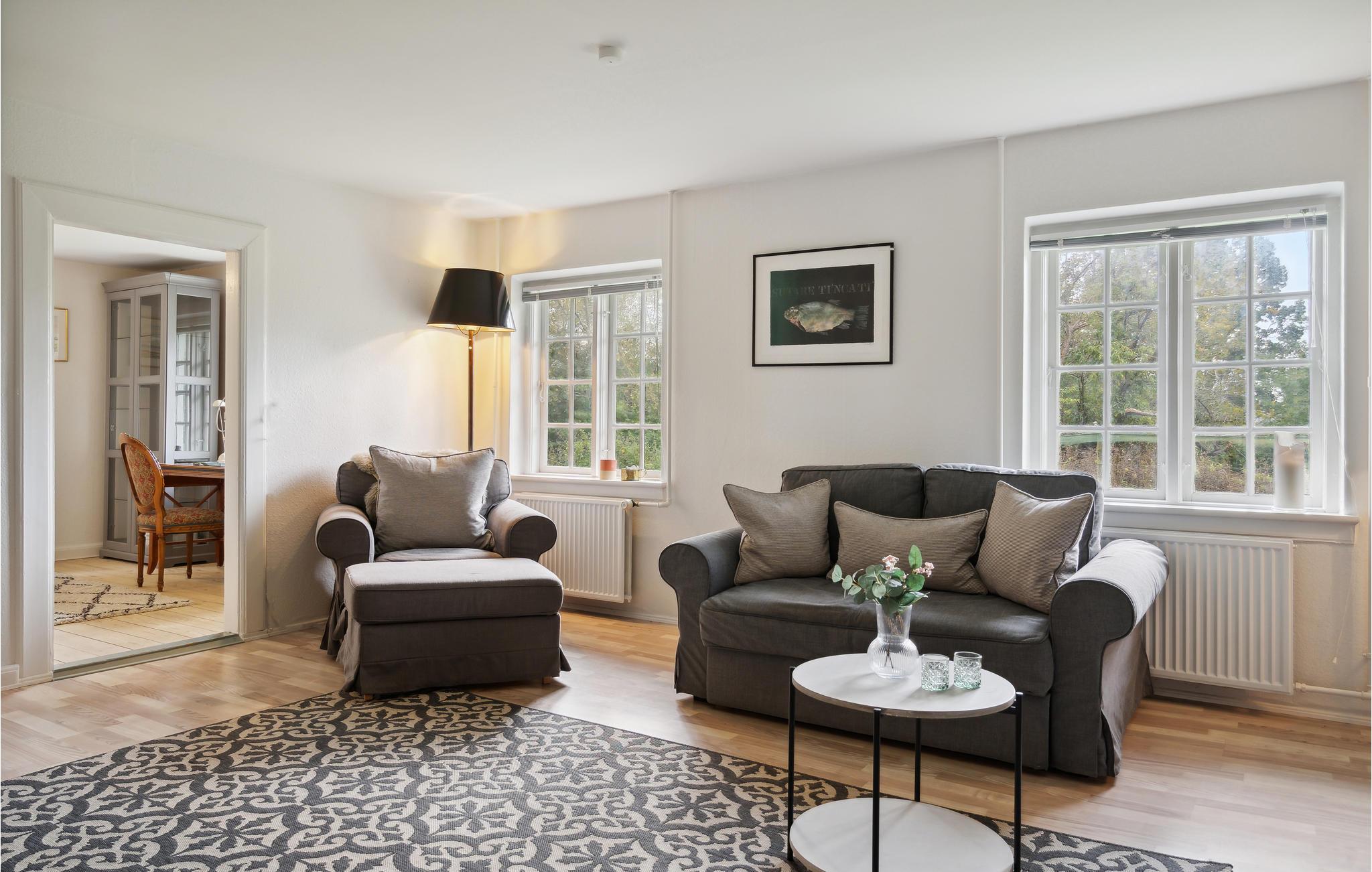 Verbringen Sie Ihren Urlaub in großartiger Lage im Schlosspark von Gavnø Schloss und genießen Ruhe und Erholung. Lassen Sie hier einfach die Seele baumeln und genießen das gemütliche und einladende Ambiente, dass Ihnen von allen Zimmern einen schönen Ausblick ins Grüne verspricht. Nach einem Spaziergang im Schlossgaren können Sie im Wohnzimmer zu Spielen und einem wärmenden Kaminfeuer zusammenkommen oder sich einfach mit einem Buch in das Sofa kuscheln.