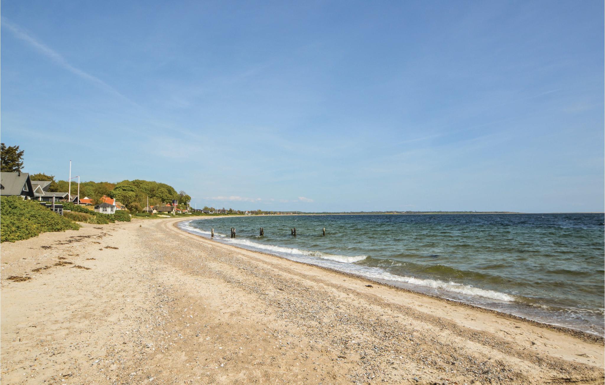 Die Ferienhaussiedlung beherbergt an einem ruhigen Weg dieses charmante Ferienhaus mit zwei Etagen. Es liegt sichtgeschützt und umgeben von einer phantastischen Natur sowie im Gehabstand zum Wasser. Aussicht auf das Meer haben Sie vom Garten und vom Haus. Die Einrichtung des Hauses unterstreicht respektvoll das Alter des Hauses. Im 1. Stock schlafen Sie in drei Schlafzimmern und in einem Bett auf dem Gang. Im Garten sind Sandkasten und Spielhaus vorhanden. Ein Fußweg führt vom Ferienhaus direkt zum Wassern.