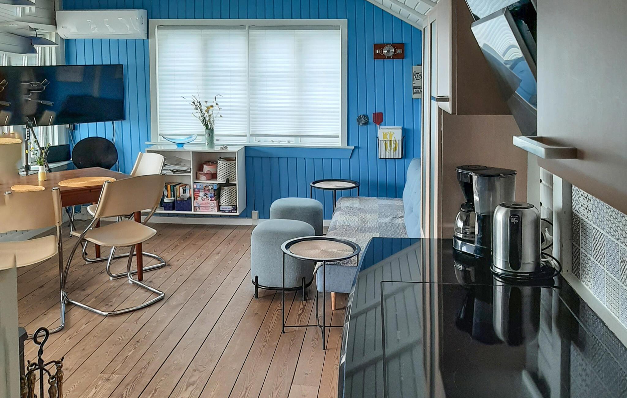 Hier haben Sie eine einzigartige Panoramaaussicht vom Ferienhaus und auch von der Terrasse. Eine ungewöhnliche Panoramaaussicht! Das Haus ist klein aber behaglich, besonders gut für zwei Personen geeignet. Das Badezimmer ist über das Schlafzimmer zu betreten. Das Haus eignet sich nicht für Kinder, denn die Steilküste am Ende des Grundstücks ist nicht gesichert. In der Nähe liegt die schöne Stadt Haderslev.