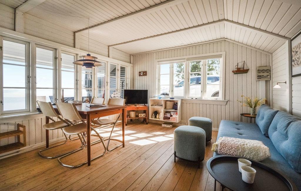 Gemütliches Ferienhaus mit einzigartigem Panoramablick direkt am Kelstrup Strand, ideal für Paare.